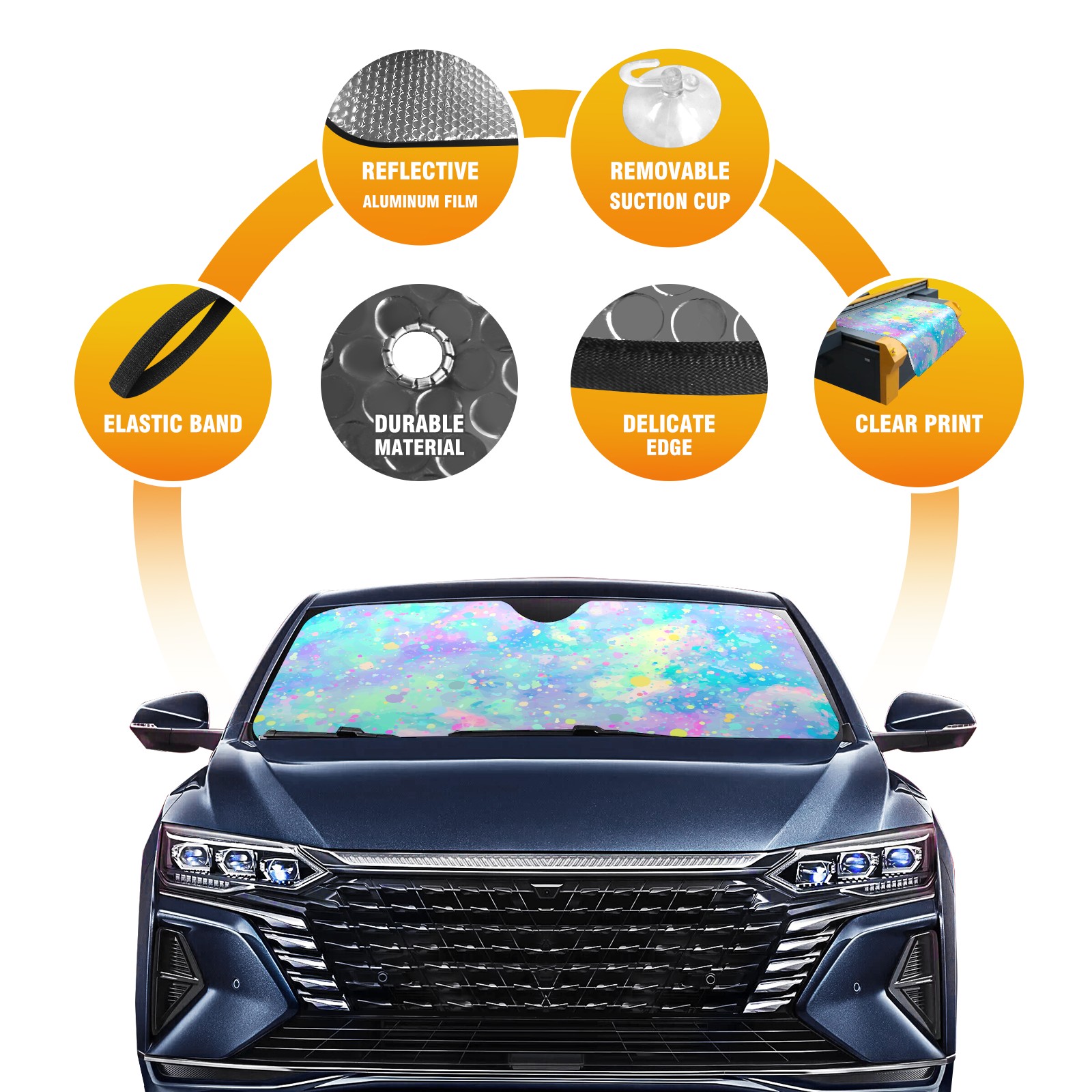 Car Windshield Sun Shade For Front Window Fantasy Rainbow Gradient Foldable Vehicle Windshield Car Sun Visor Covers Automotive Window Protector Car Camping Privacy Sun Blocker