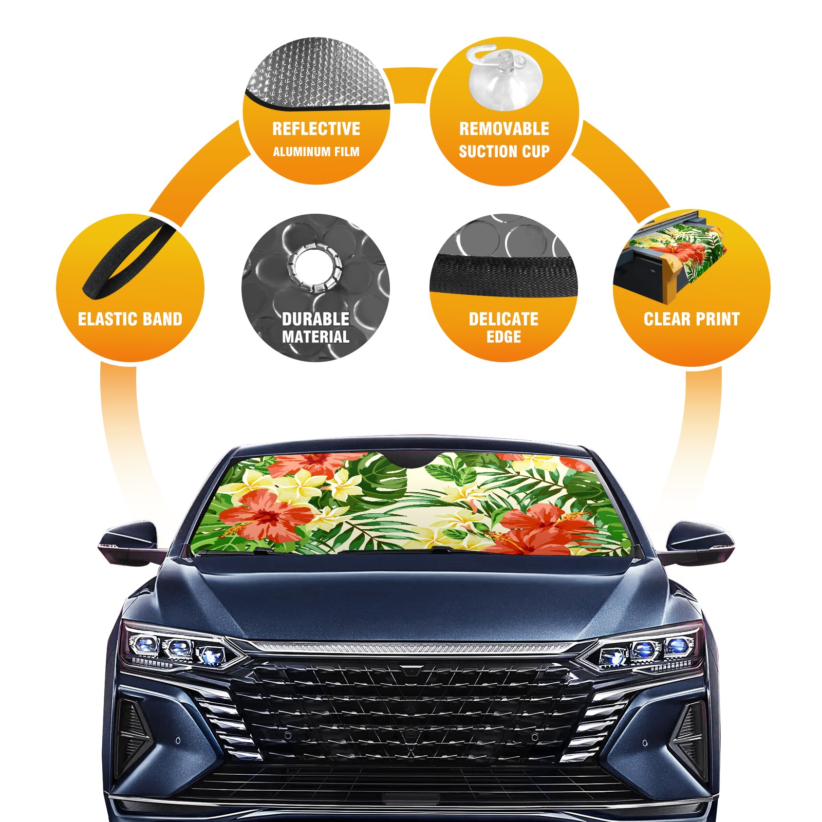 • Diameter /Size 63"L x 33.5"W Made from excellent materials which makes it sturdy and protects the car from the sun. Easy to use and pack. Makes the interior of the car cooler.You can easily stash the sunshade in the storage bag or store long term.It open and closes easy. Also the leather storage bag is durable and easy to put the umbrella back into.This windshield sunshade provides complete coverage and keeps your car interior cool under direct sun. It is easy to open and position under the windshield and around the rear-view mirror. Makes Your Car Easy To Identify, Perfect For Finding Your Car In Crowded Parking Lots And Garages.Great Choice: It Is A Great Gift For Dad, Boyfriend, Brother, Brother And Uncle, Friends, Classmates, Family And So On. Notice: Due To Difference Computer Monitors, The Color Maybe Slightly Different From Picture. As Different Measurement Methods, Measurement Data Will Float Within 2%.I Hope You Understand. If You Have Any Question About The Item Please Do Not Hesitate To Contact Us Immediately And We Will Give You A Satisfactory Reply Within 24 Hours.