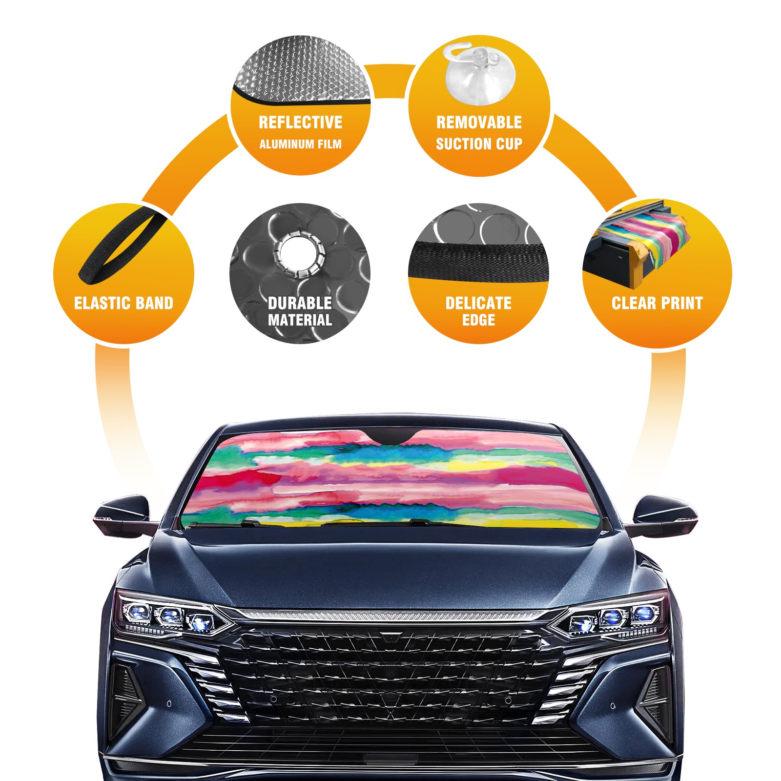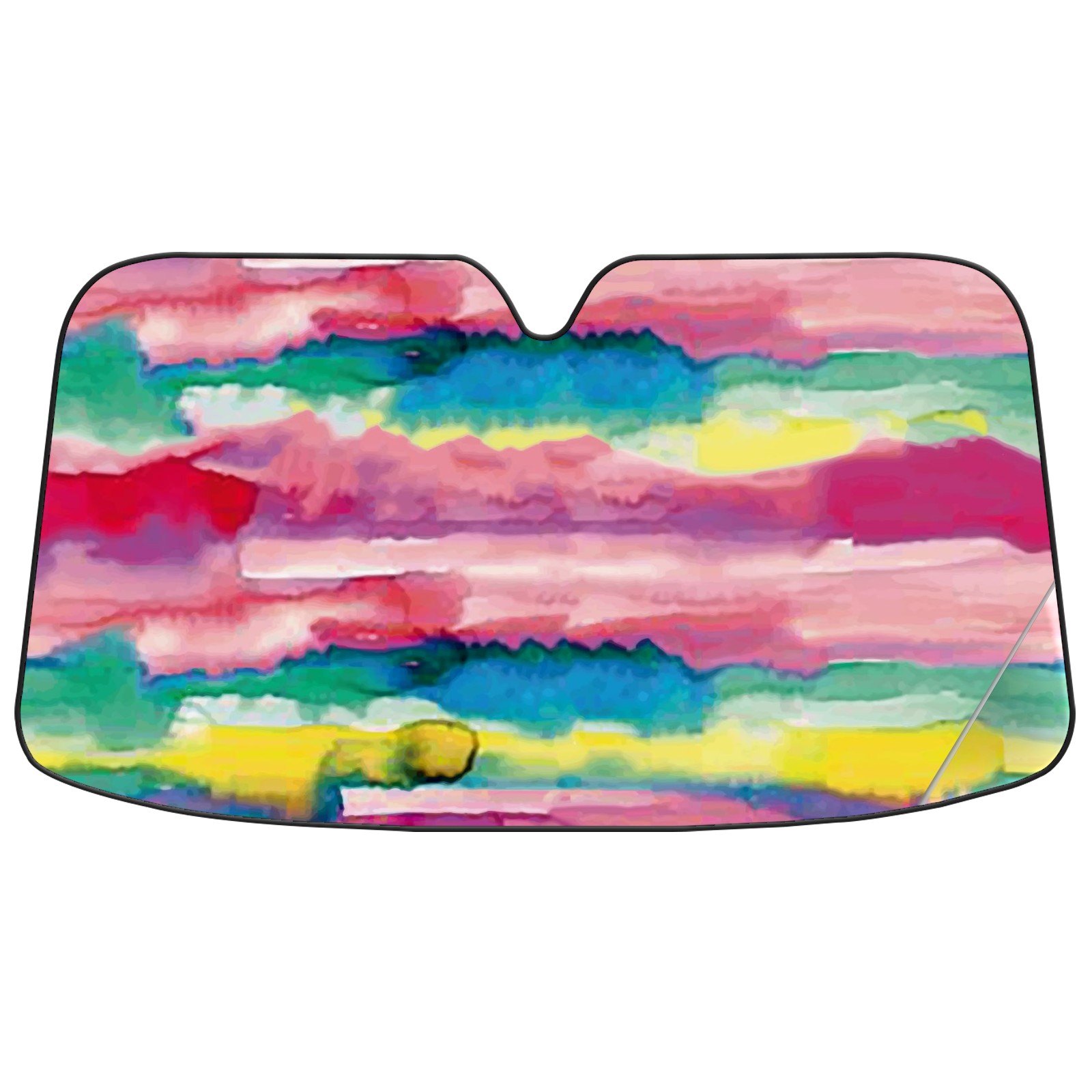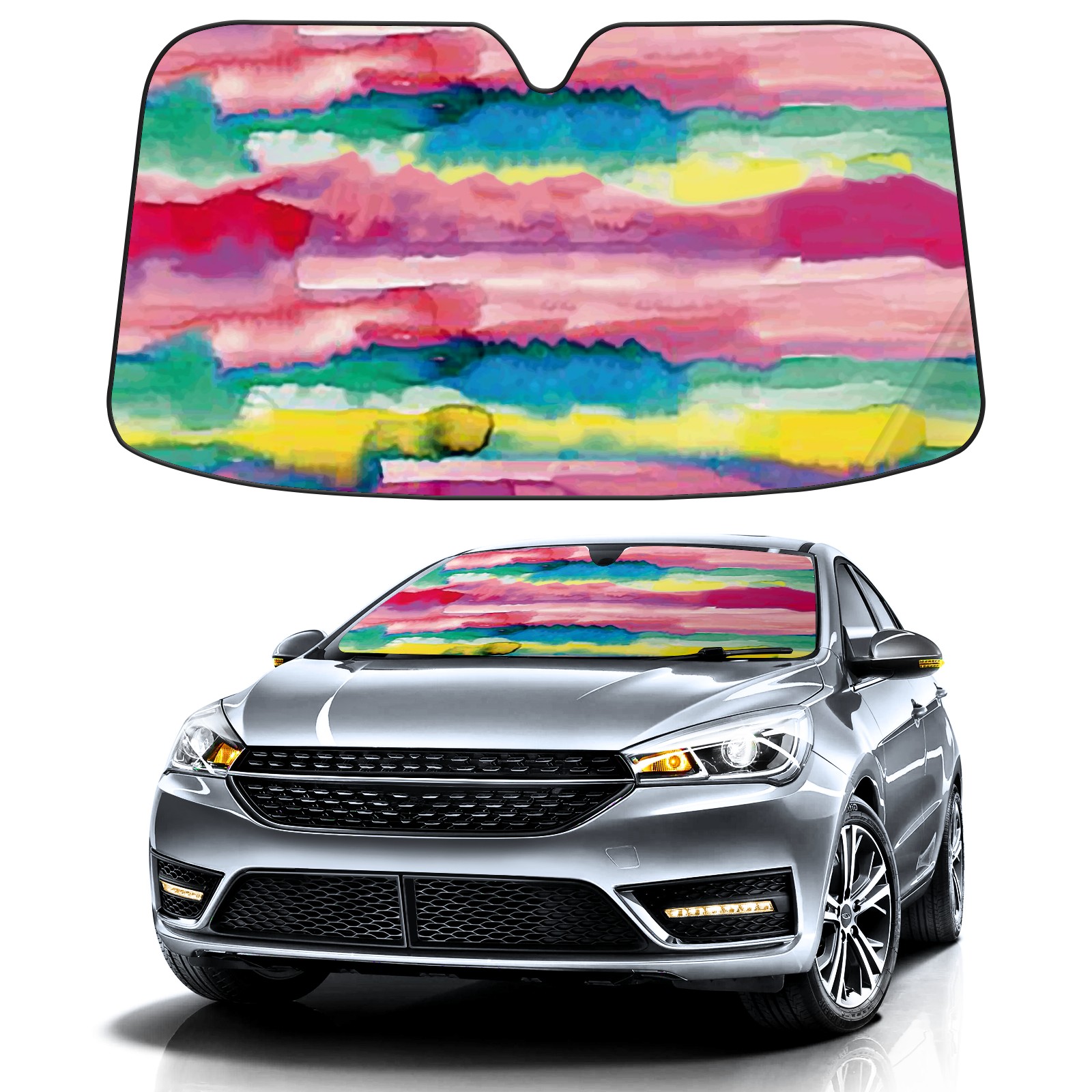 Car Windshield Sun Shade For Front Window Abstract Tie Dye Green Yellow Red Watercolor Foldable Vehicle Windshield Car Sun Visor Covers Automotive Window Protector Car Camping Privacy Sun Blocker