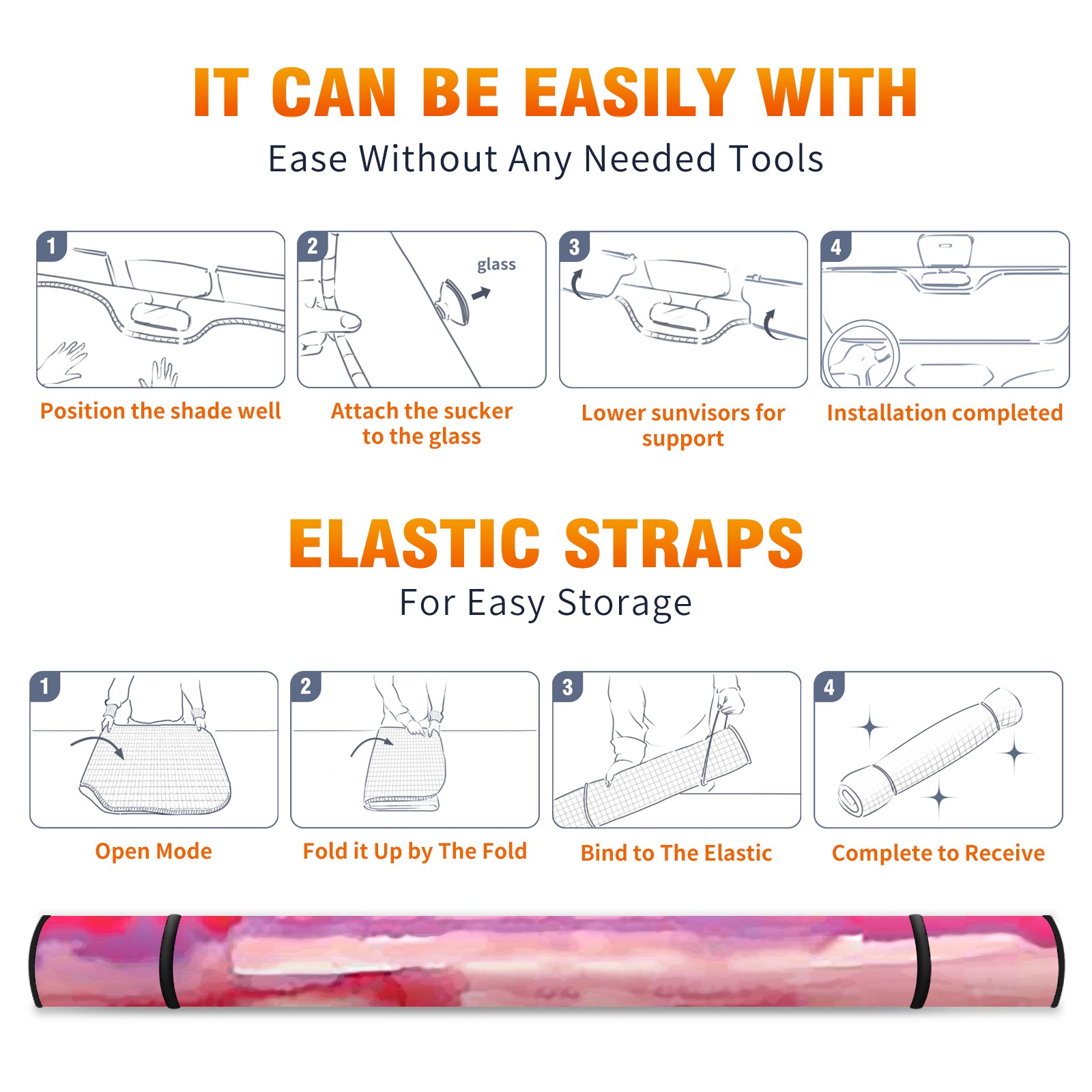• Diameter /Size 63"L x 33.5"W Made from excellent materials which makes it sturdy and protects the car from the sun. Easy to use and pack. Makes the interior of the car cooler.You can easily stash the sunshade in the storage bag or store long term.It open and closes easy. Also the leather storage bag is durable and easy to put the umbrella back into.This windshield sunshade provides complete coverage and keeps your car interior cool under direct sun. It is easy to open and position under the windshield and around the rear-view mirror. Makes Your Car Easy To Identify, Perfect For Finding Your Car In Crowded Parking Lots And Garages.Great Choice: It Is A Great Gift For Dad, Boyfriend, Brother, Brother And Uncle, Friends, Classmates, Family And So On. Notice: Due To Difference Computer Monitors, The Color Maybe Slightly Different From Picture. As Different Measurement Methods, Measurement Data Will Float Within 2%.I Hope You Understand. If You Have Any Question About The Item Please Do Not Hesitate To Contact Us Immediately And We Will Give You A Satisfactory Reply Within 24 Hours.