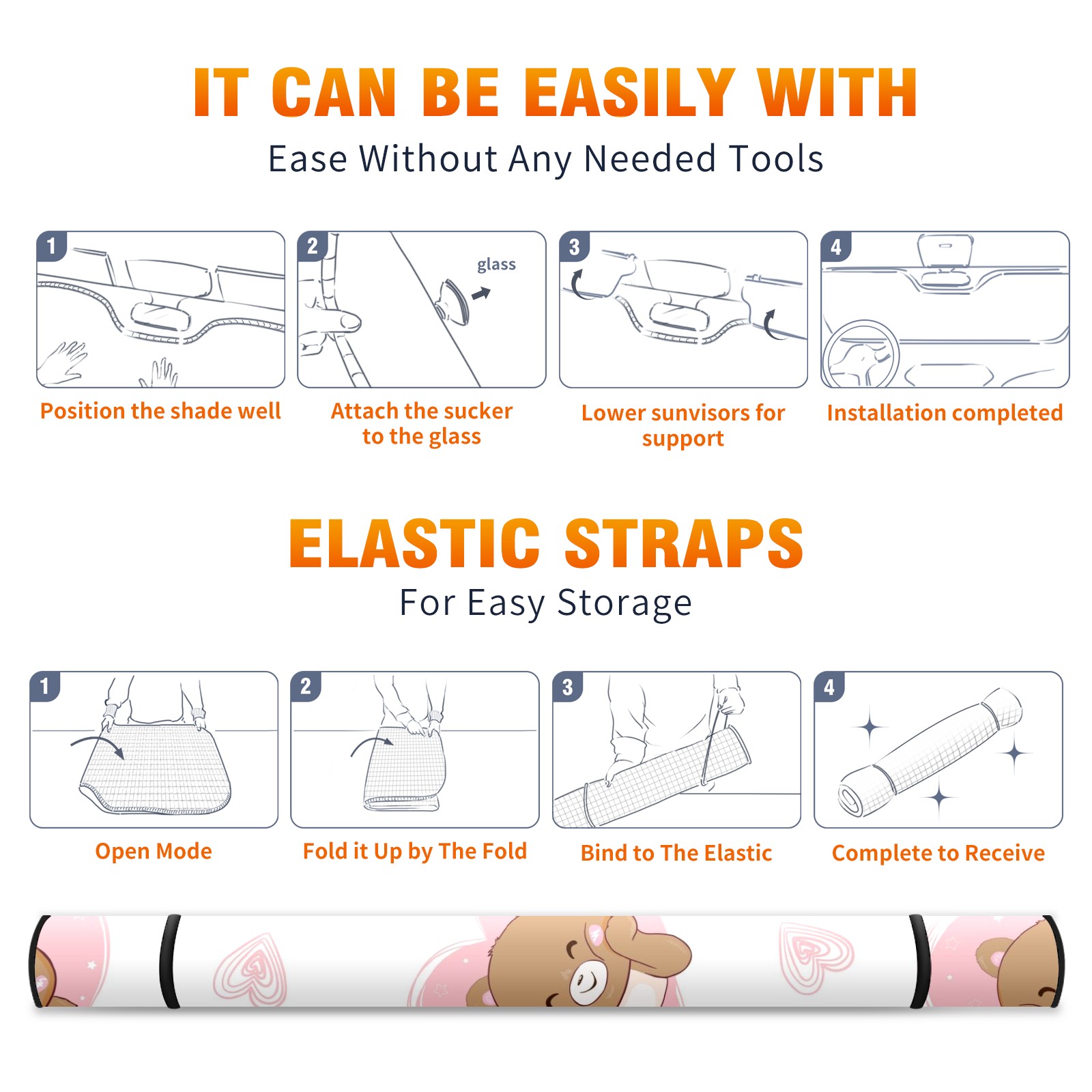 Car Windshield Sun Shade For Front Window Cute Teddy Bear Love Heart Foldable Vehicle Windshield Car Sun Visor Covers Automotive Window Protector Car Camping Privacy Sun Blocker