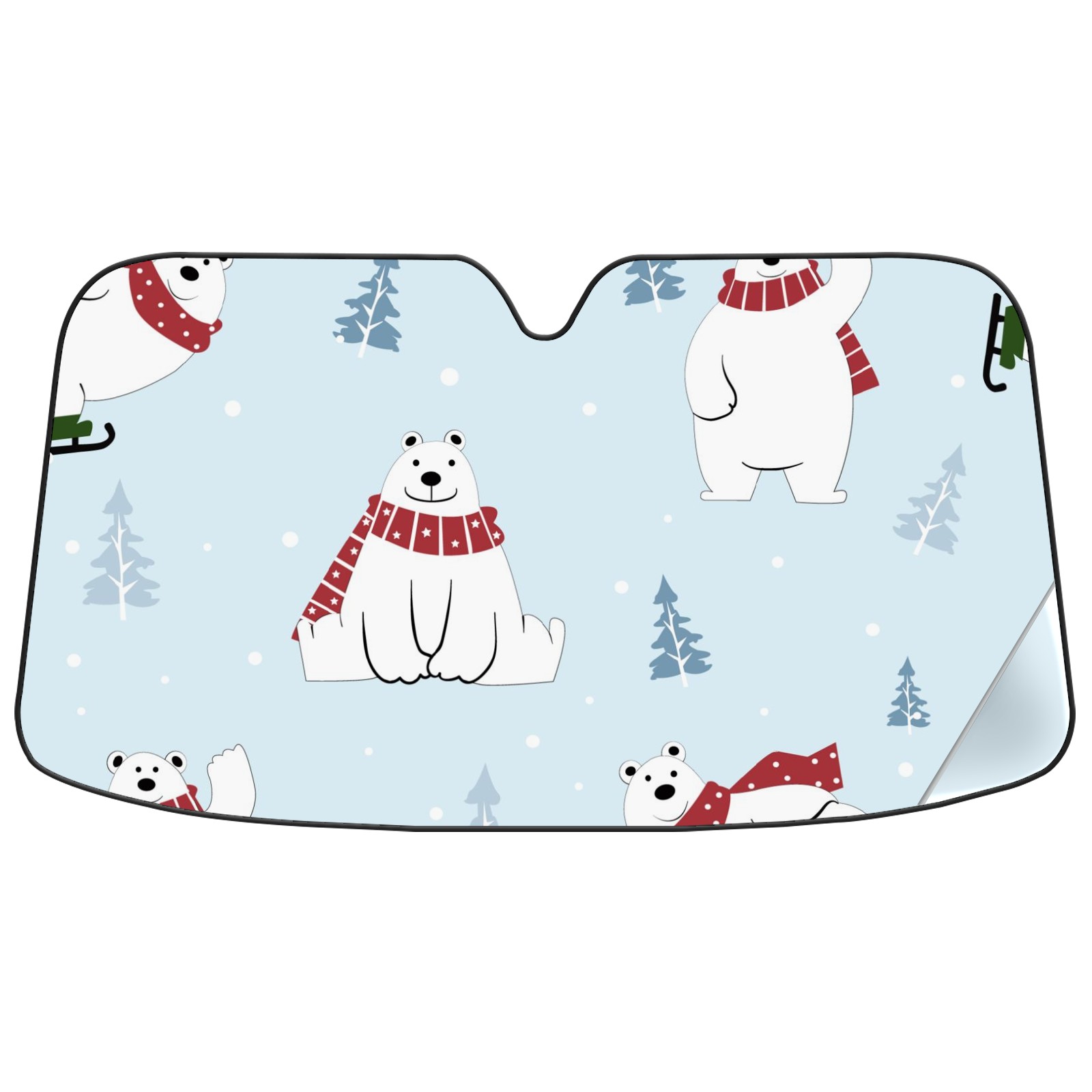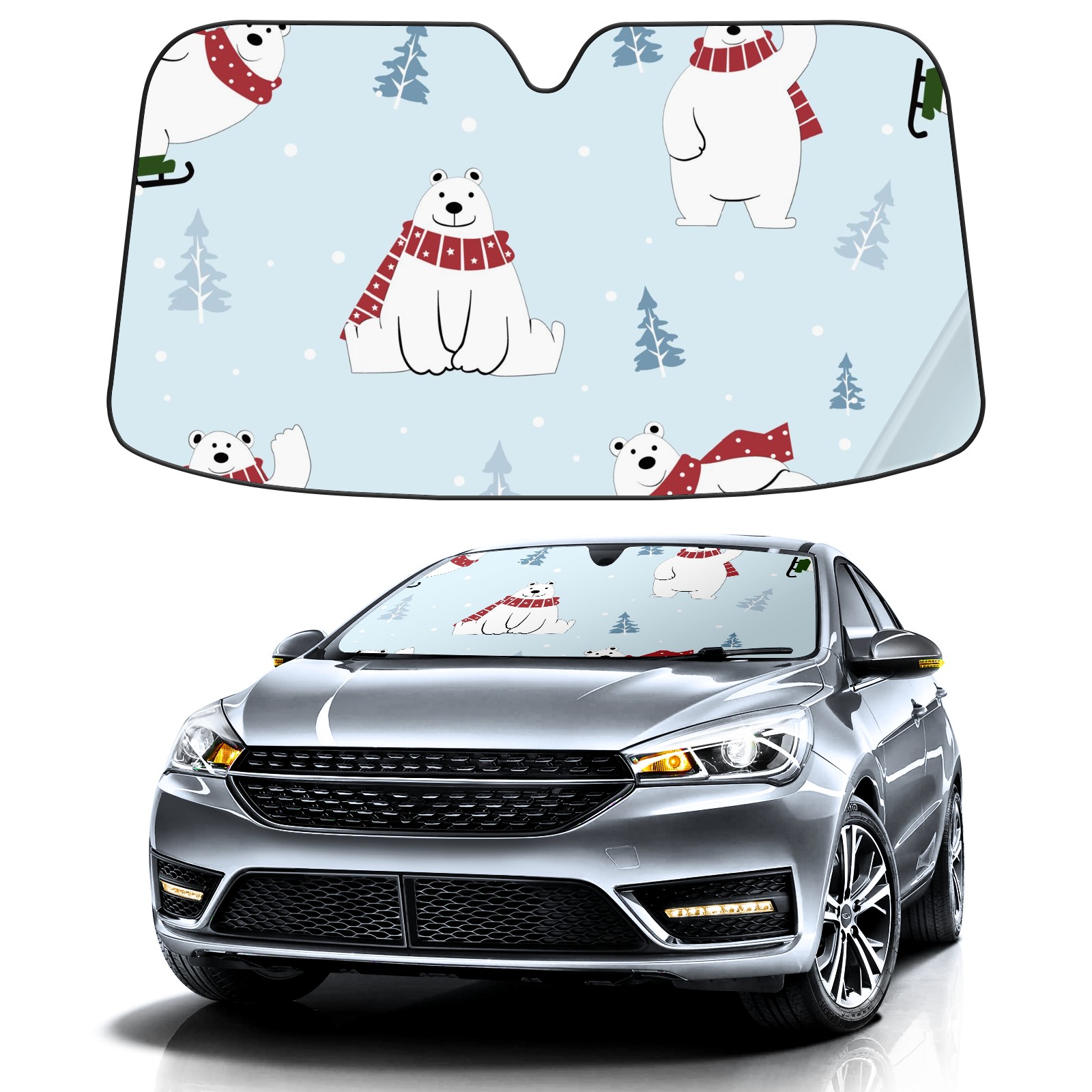 Car Windshield Sun Shade For Front Window Cute Polar Bear Christmas Tree And Snow Foldable Vehicle Windshield Car Sun Visor Covers Automotive Window Protector Car Camping Privacy Sun Blocker