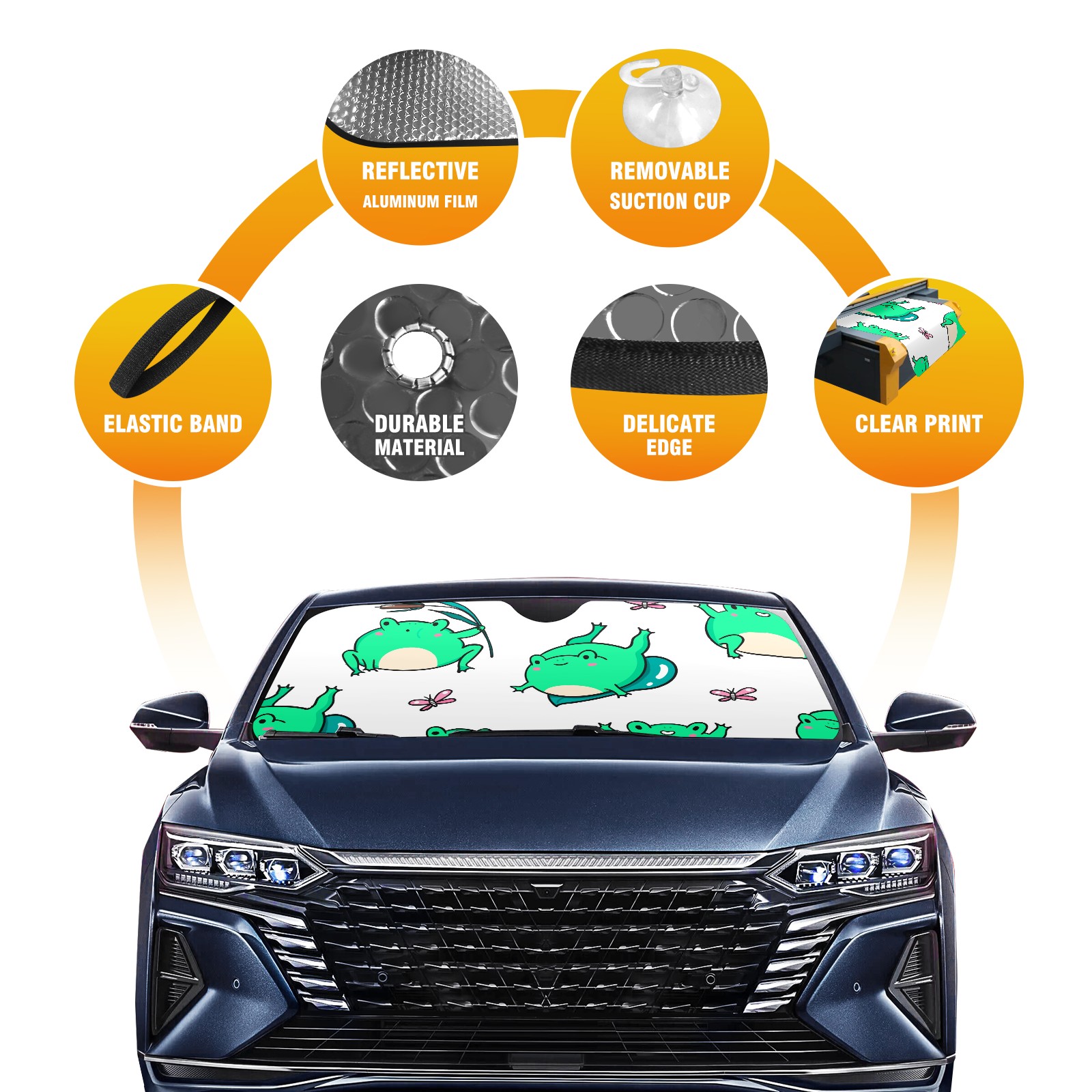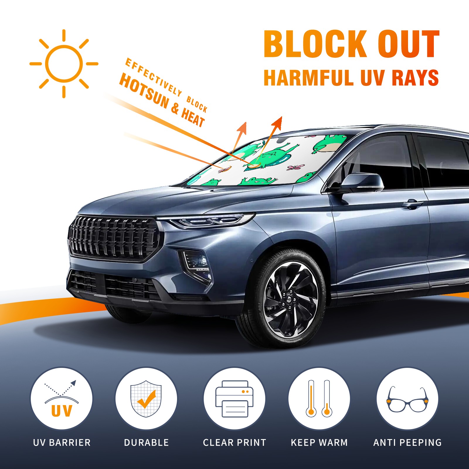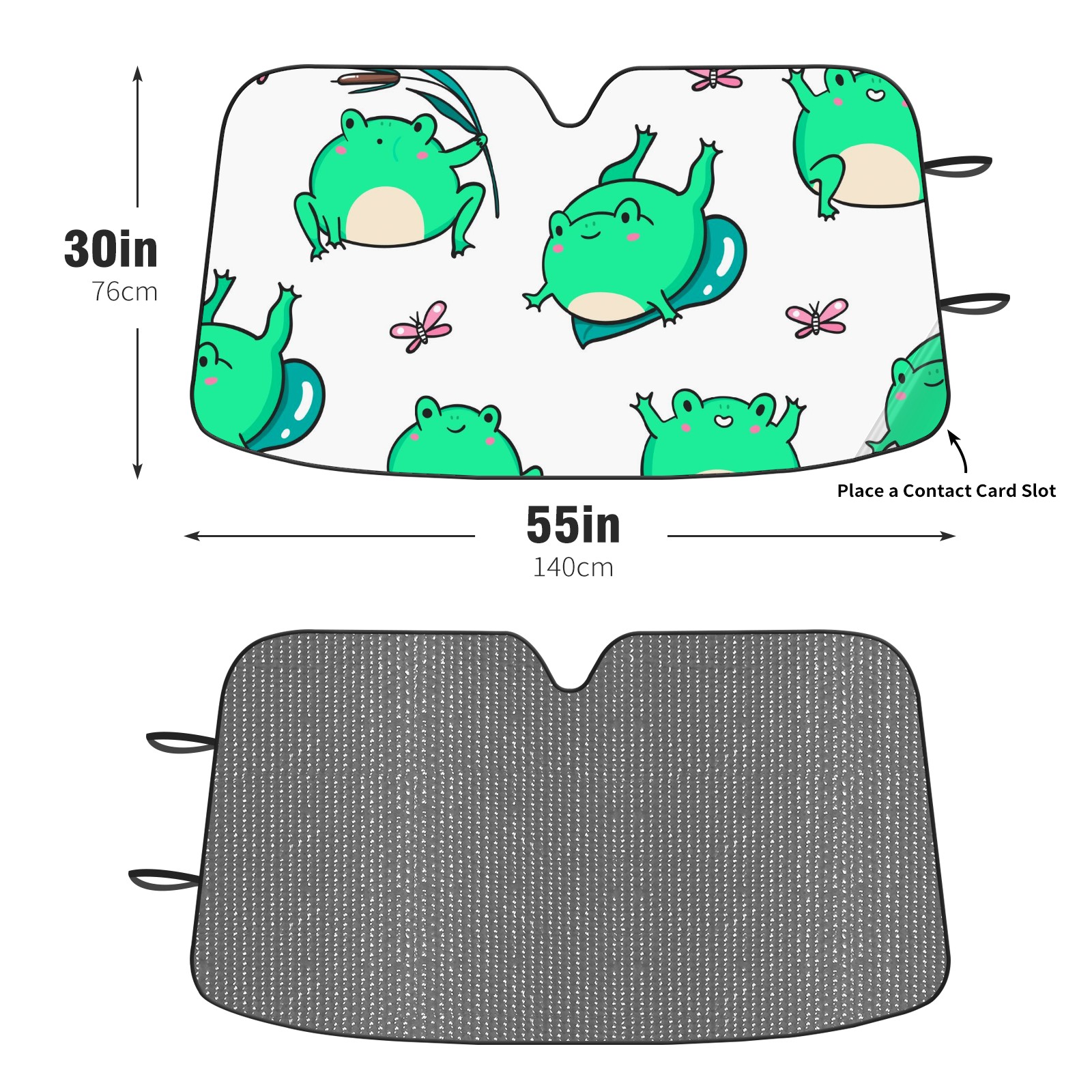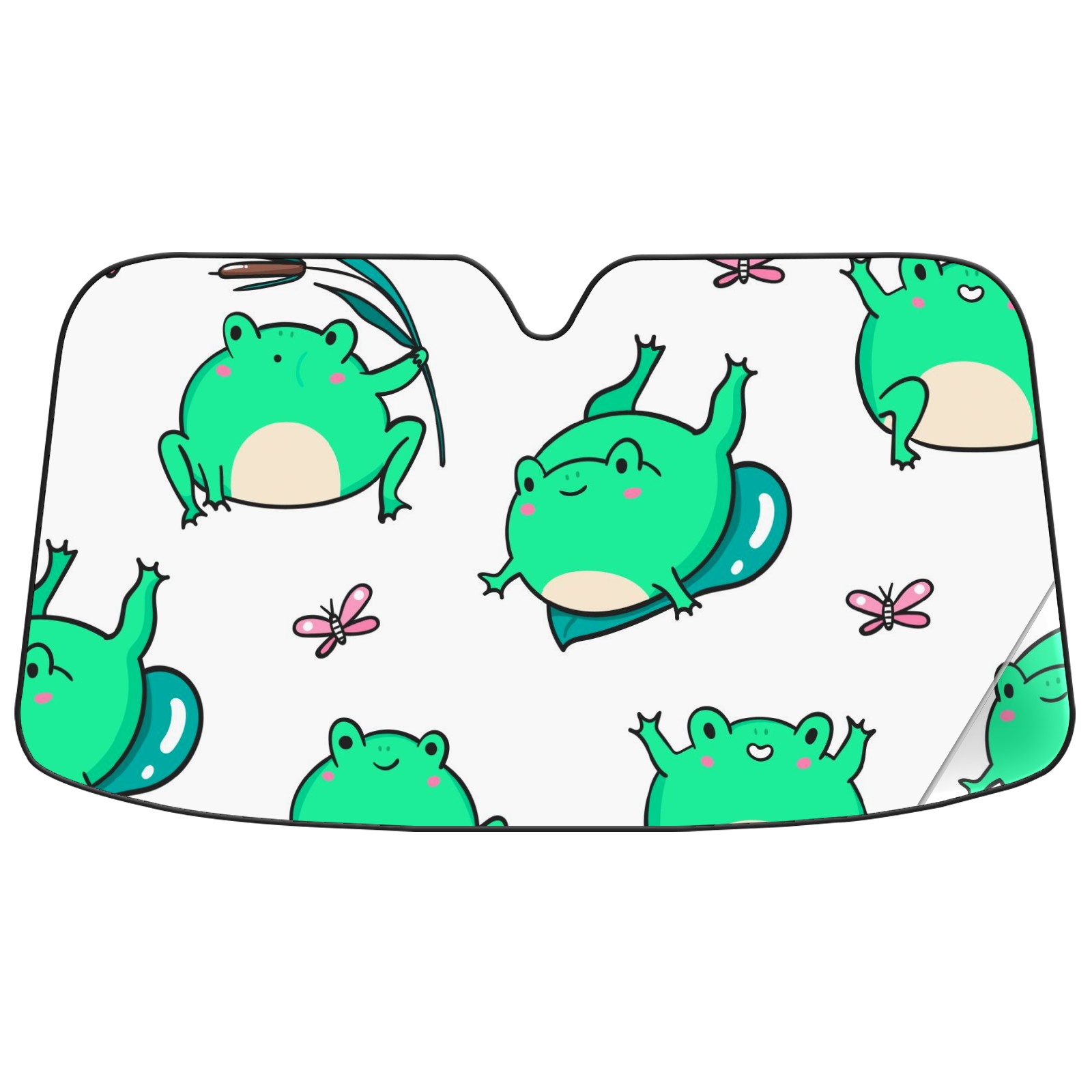 Car Windshield Sun Shade For Front Window Cute Kawaii Green Frog Foldable Vehicle Windshield Car Sun Visor Covers Automotive Window Protector Car Camping Privacy Sun Blocker