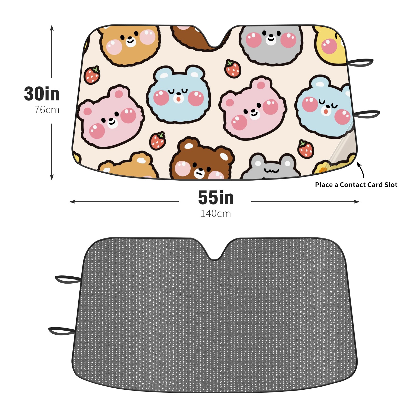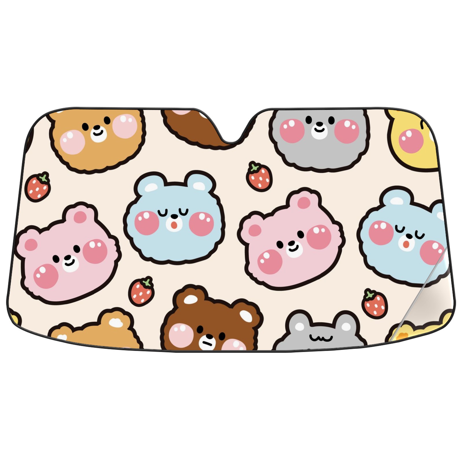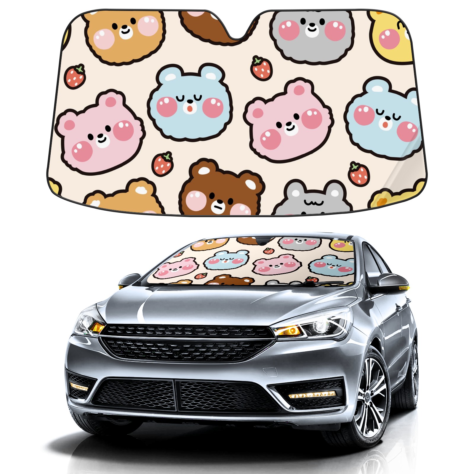 Car Windshield Sun Shade For Front Window Cute Face Bear With Strawberry Foldable Vehicle Windshield Car Sun Visor Covers Automotive Window Protector Car Camping Privacy Sun Blocker