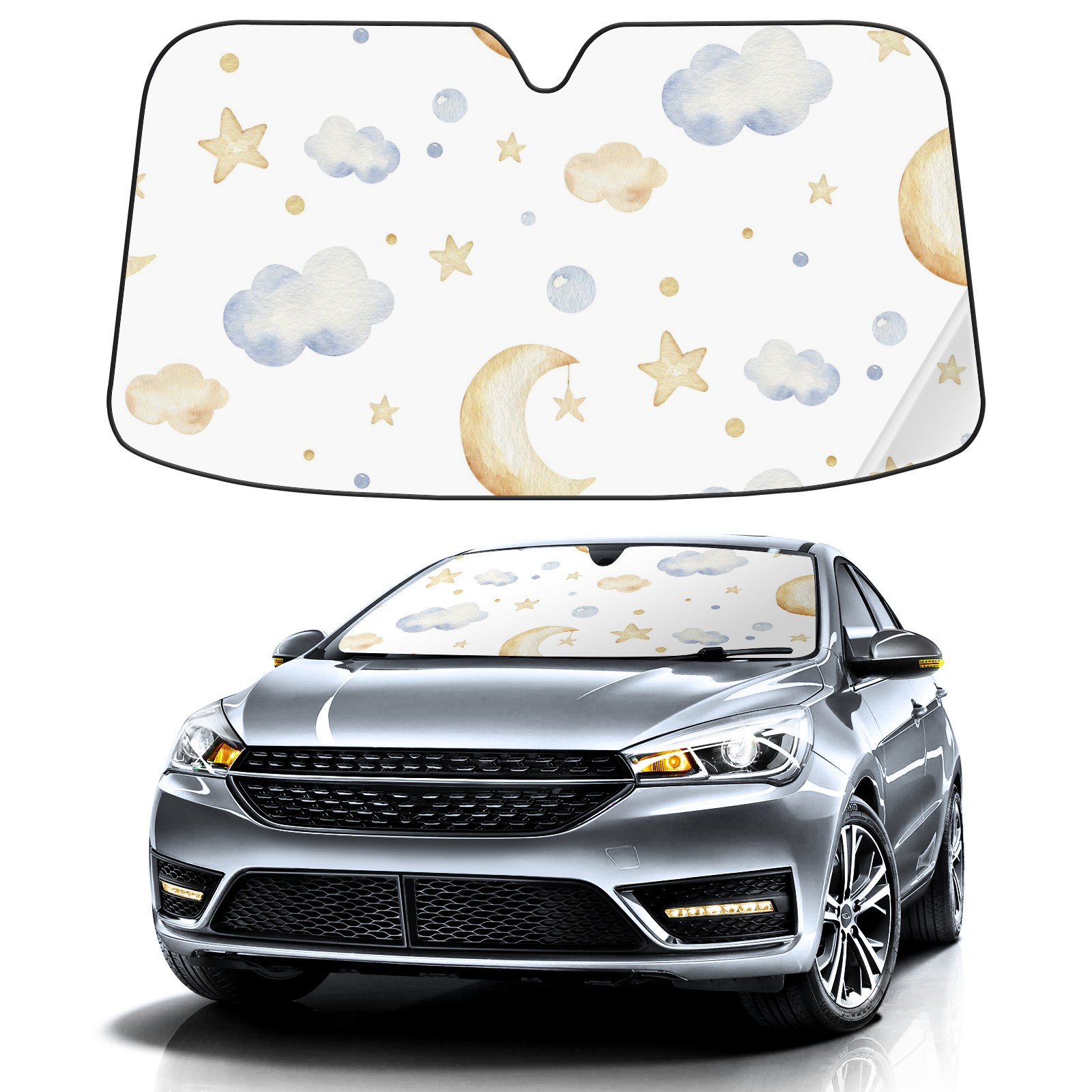 Car Windshield Sun Shade For Front Window Cute Cartoon Moon Cloud Star Foldable Vehicle Windshield Car Sun Visor Covers Automotive Window Protector Car Camping Privacy Sun Blocker