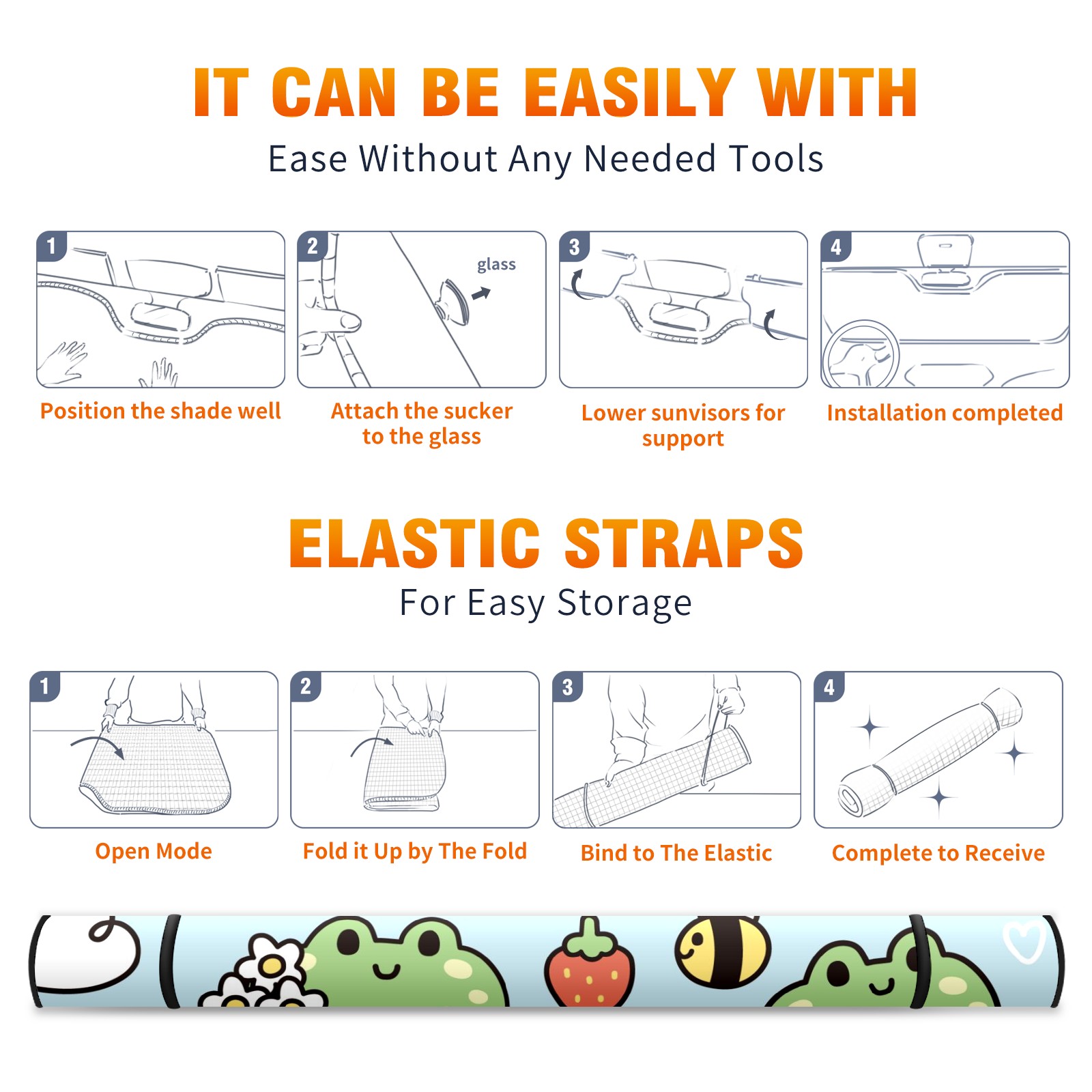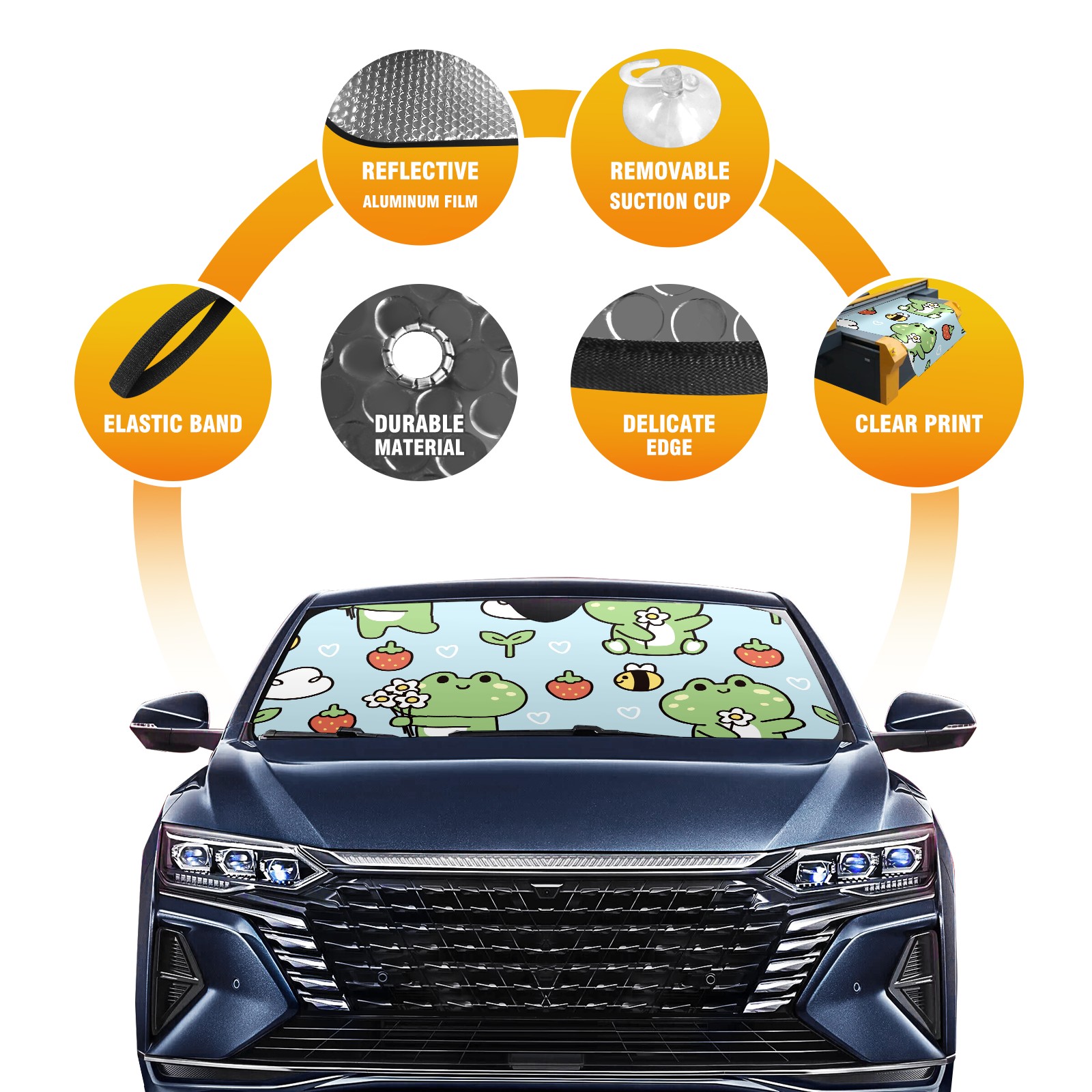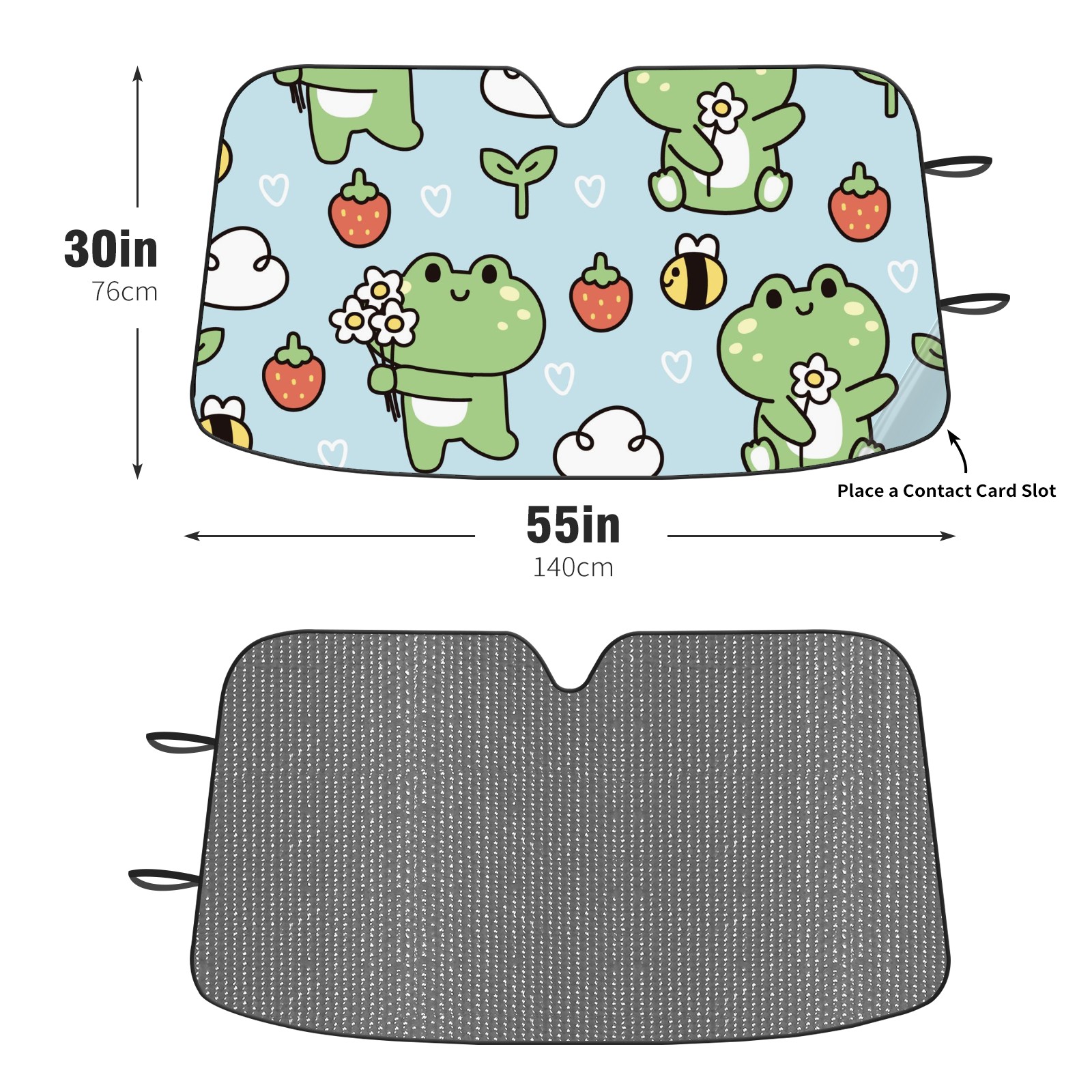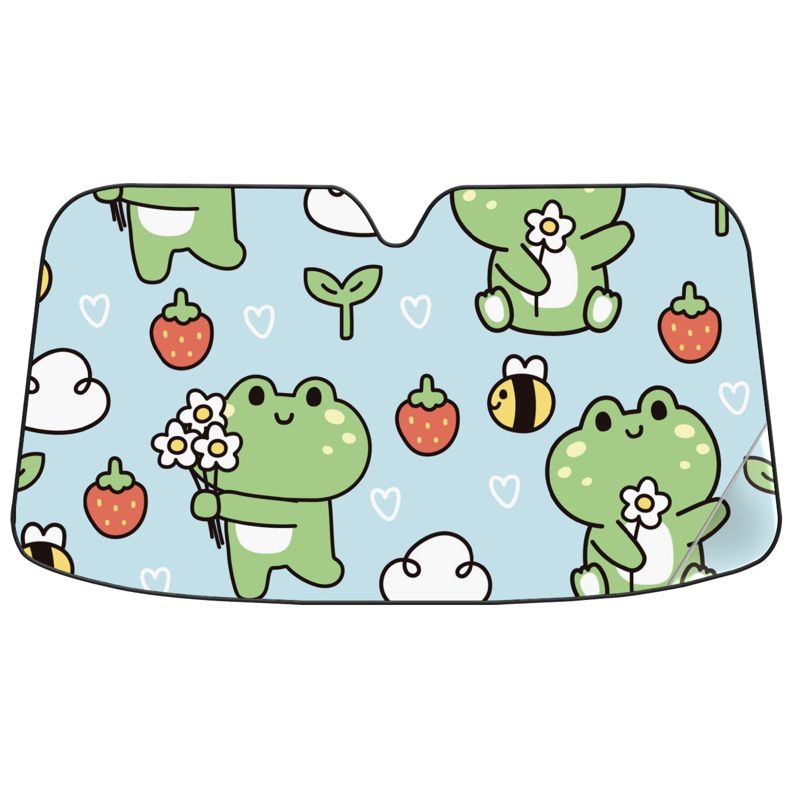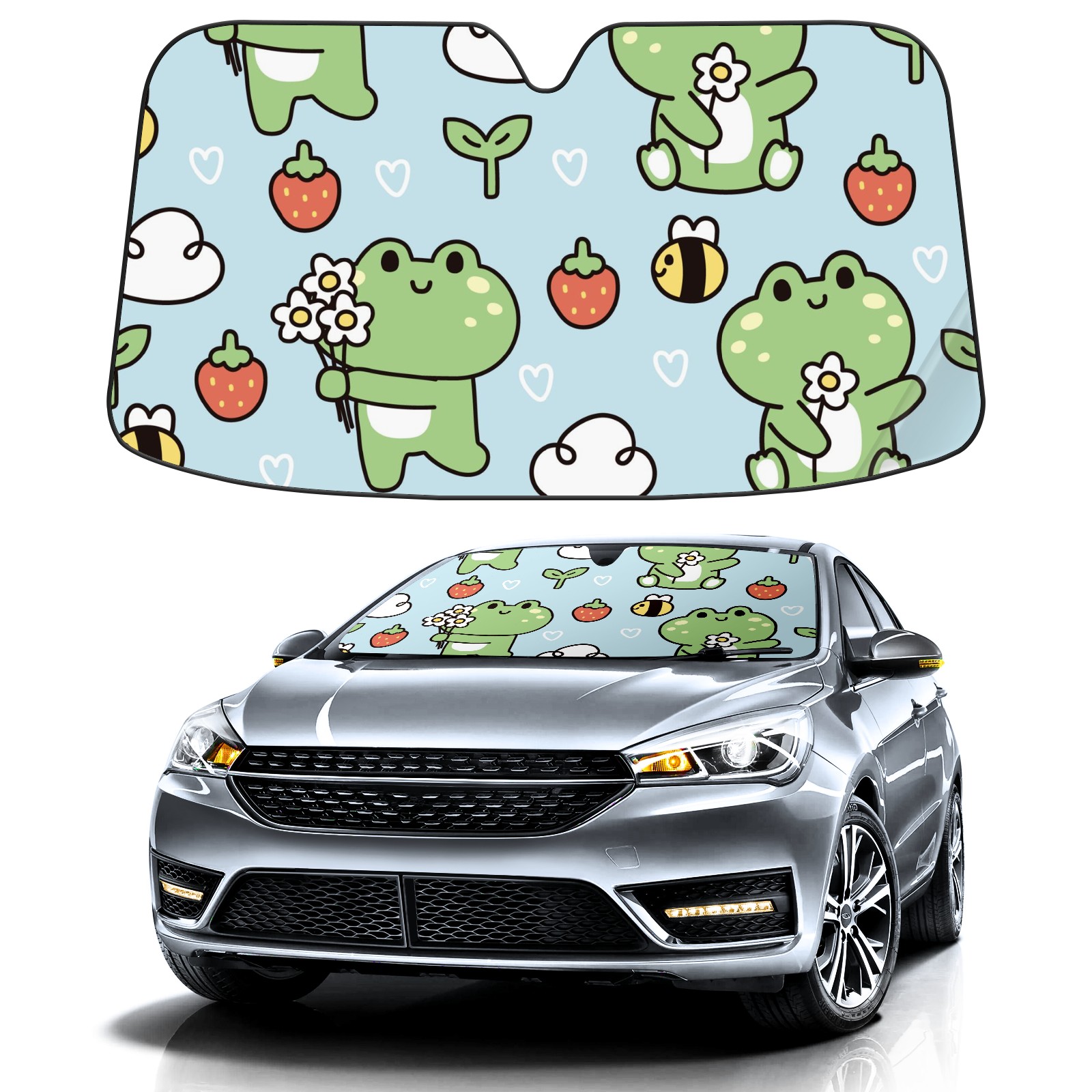 Car Windshield Sun Shade For Front Window Cute Frog Bee Leaf Strawberry Foldable Vehicle Windshield Car Sun Visor Covers Automotive Window Protector Car Camping Privacy Sun Blocker