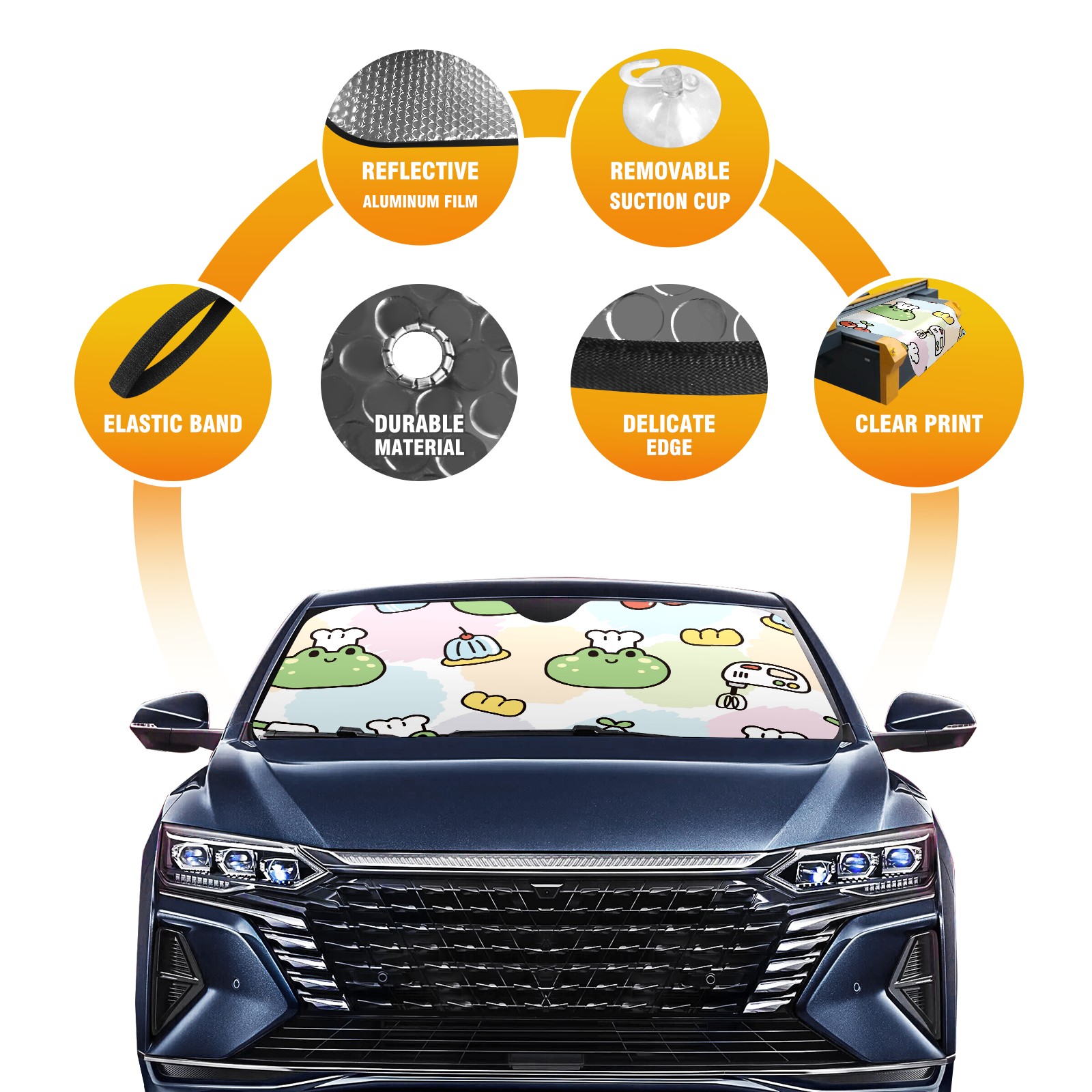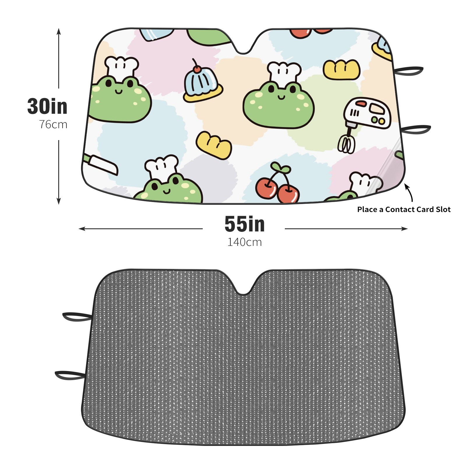 Car Windshield Sun Shade For Front Window Cute Face Frog Cake Cherry Foldable Vehicle Windshield Car Sun Visor Covers Automotive Window Protector Car Camping Privacy Sun Blocker