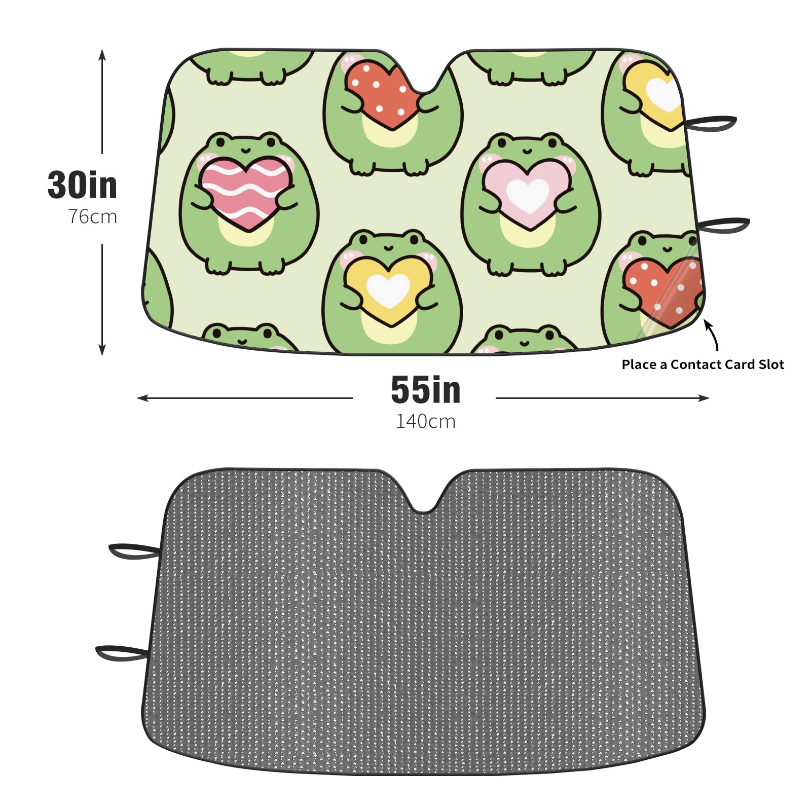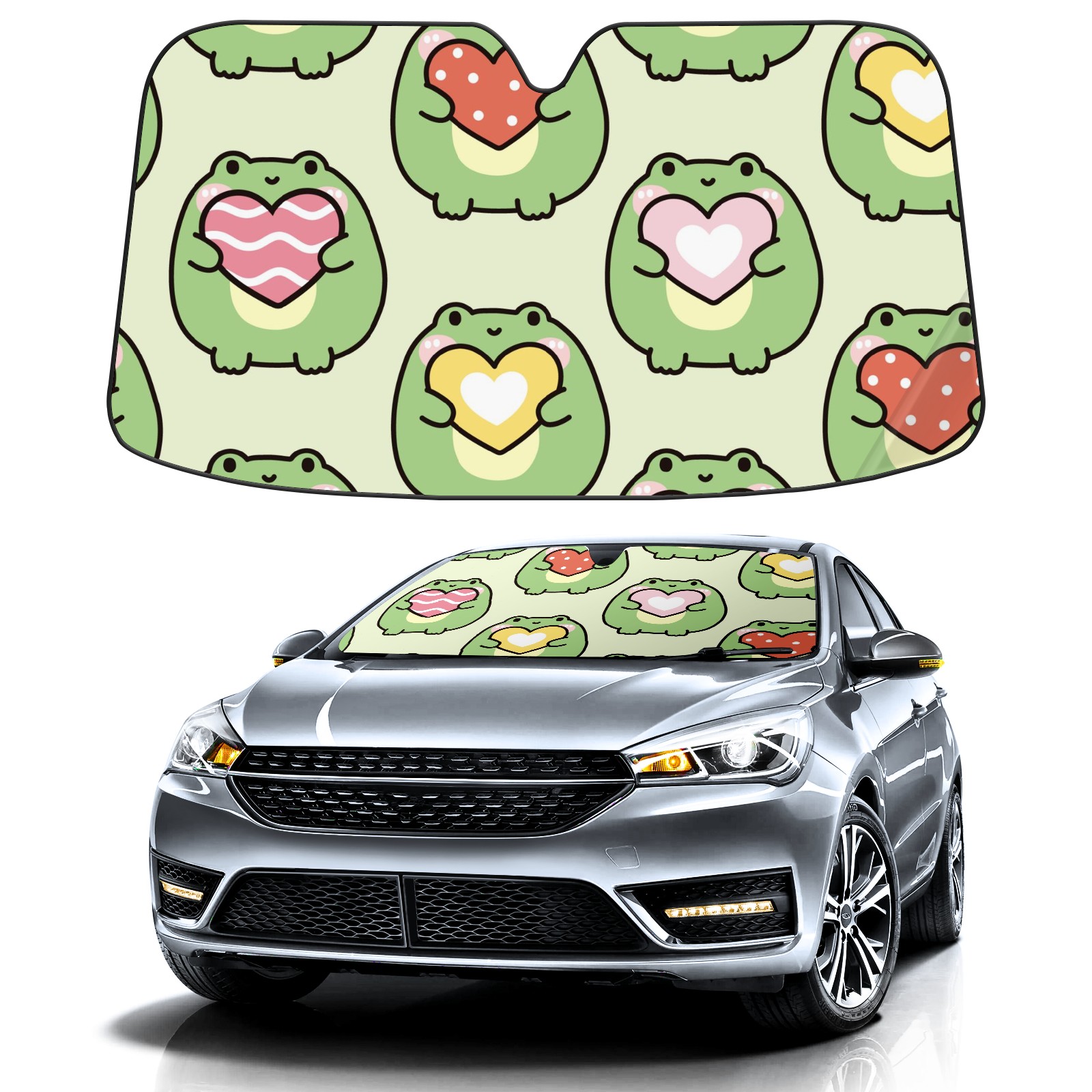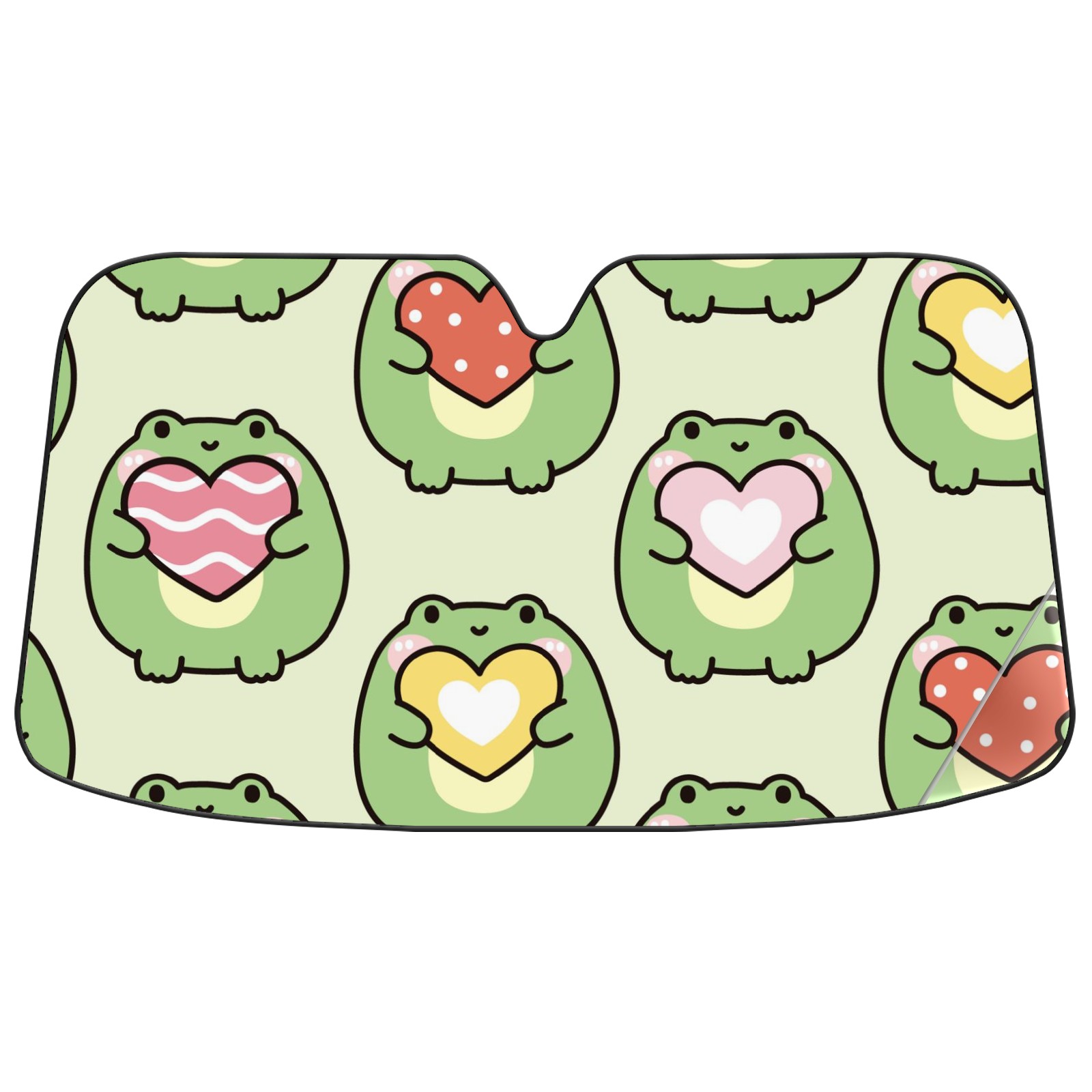 Car Windshield Sun Shade For Front Window Cute Chubby Frog Hold Heart On Green Background Foldable Vehicle Windshield Car Sun Visor Covers Automotive Window Protector Car Camping Privacy Sun Blocker