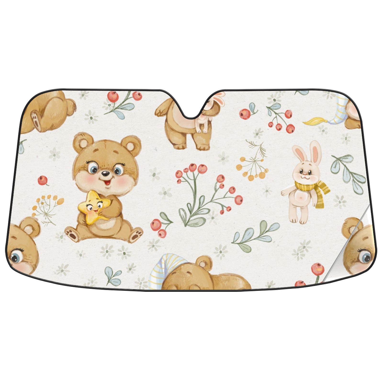 Car Windshield Sun Shade For Front Window Cute Baby Bear Sleep And Rabbit Toy Foldable Vehicle Windshield Car Sun Visor Covers Automotive Window Protector Car Camping Privacy Sun Blocker