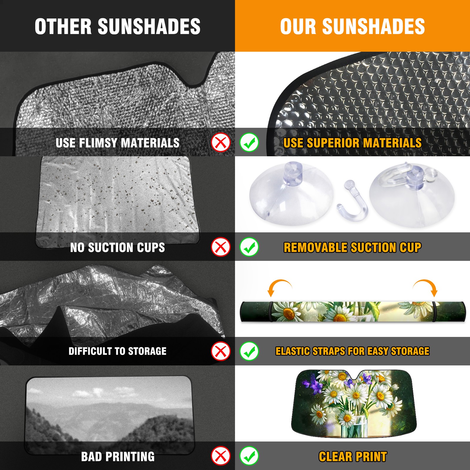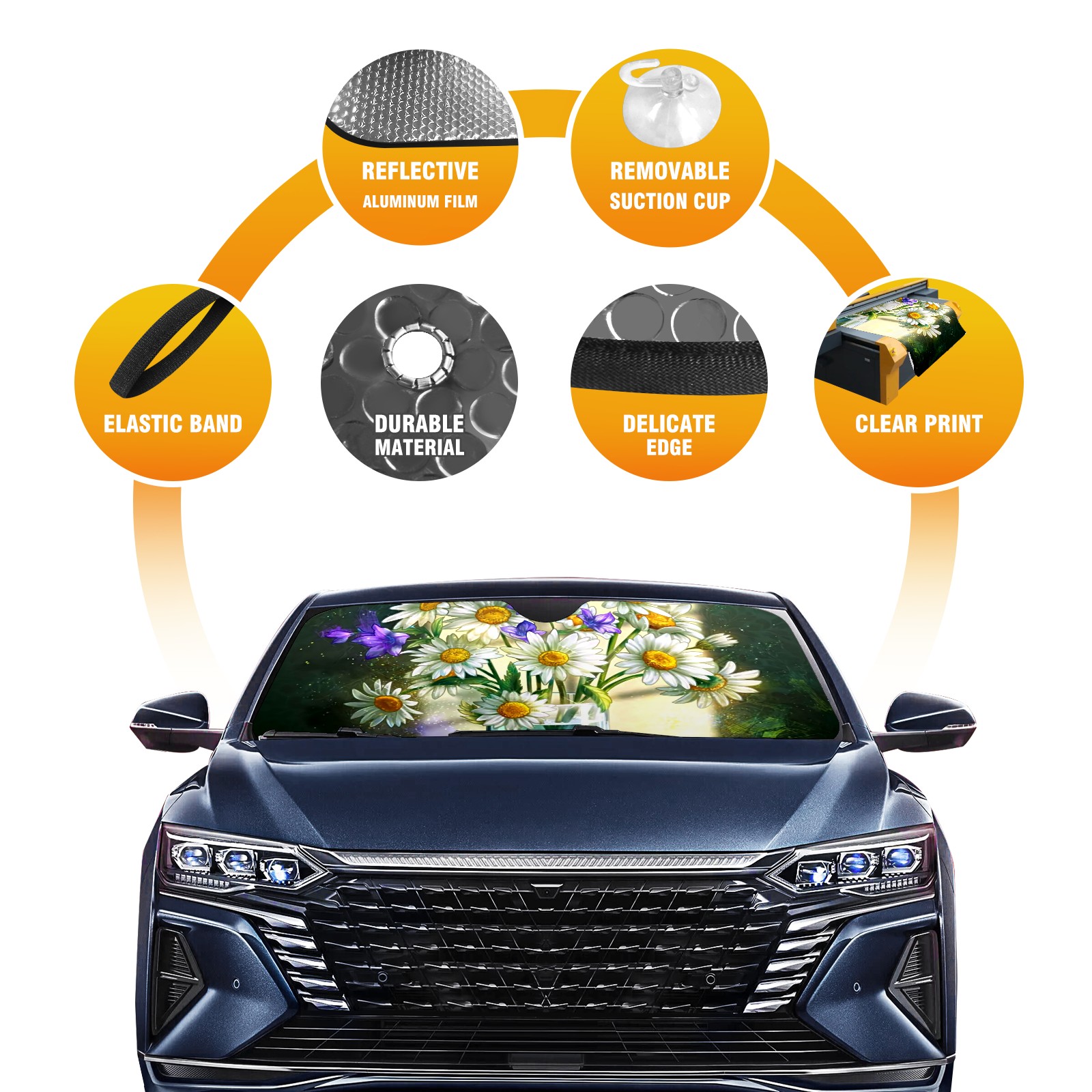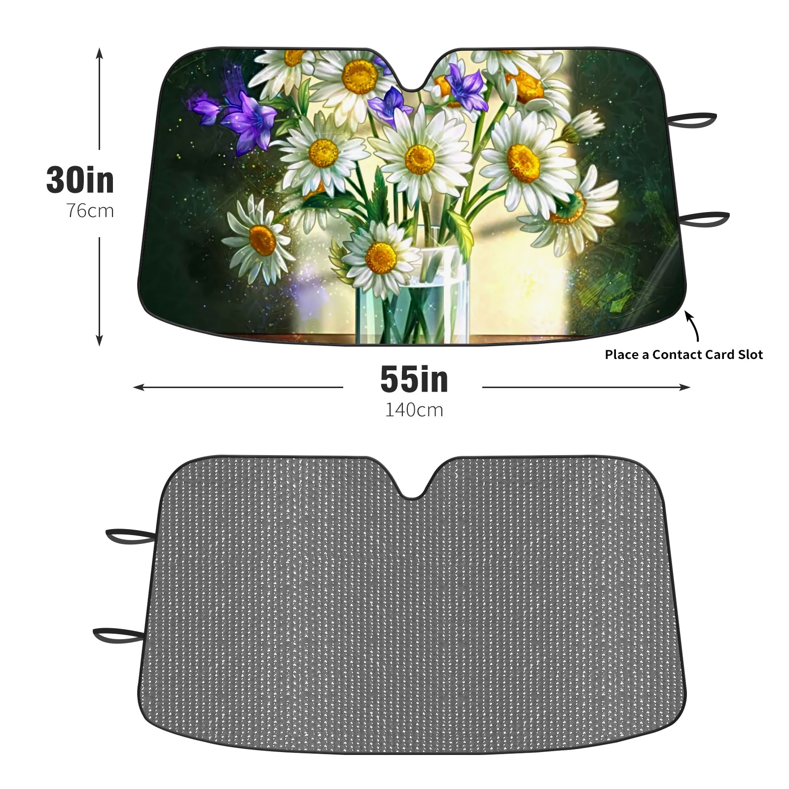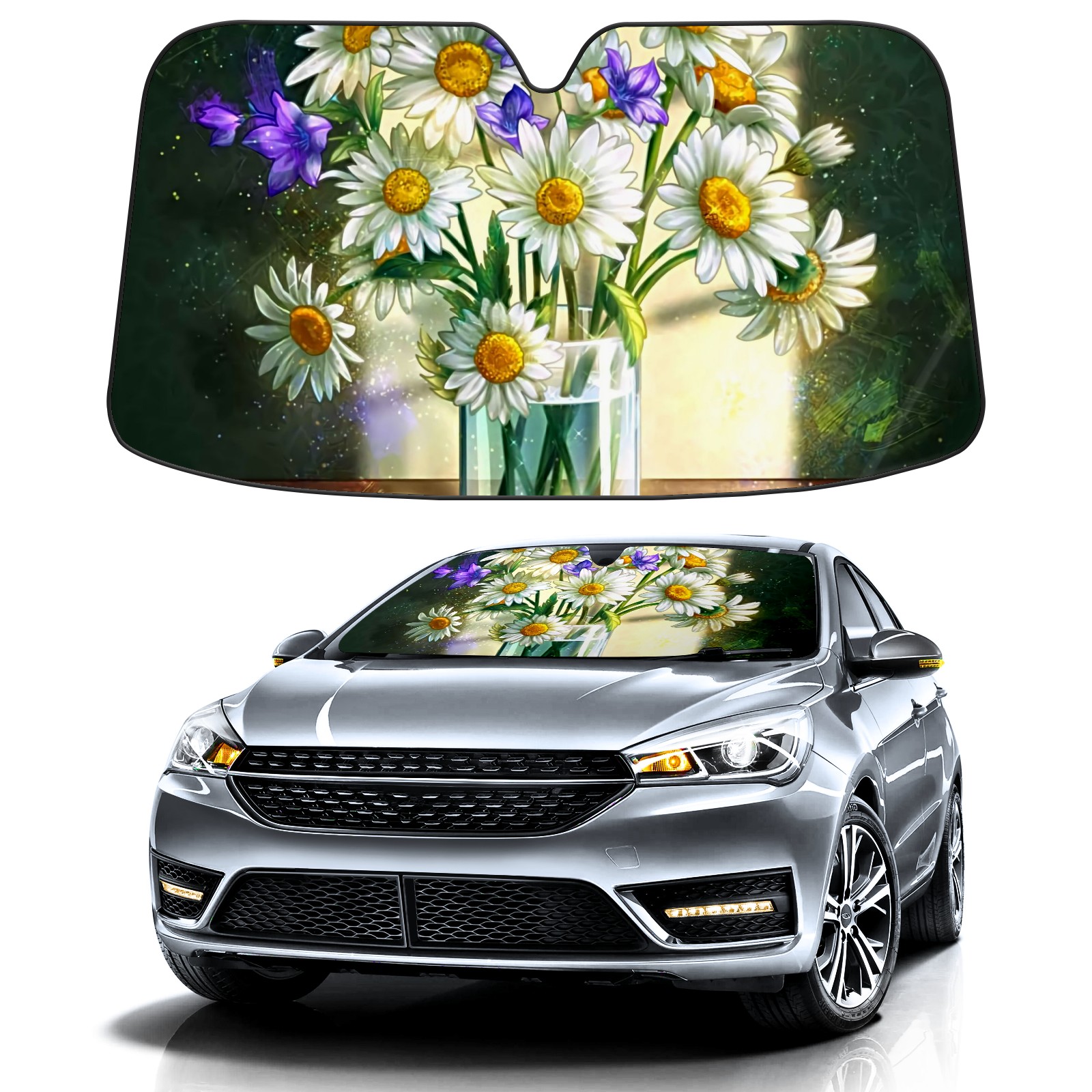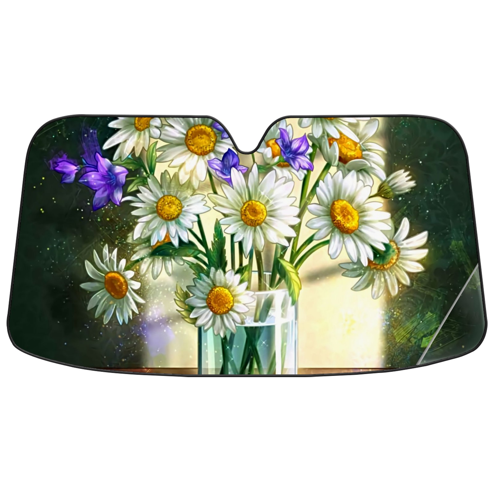 Car Windshield Sun Shade For Front Window White And Purple Flower Daisy Foldable Vehicle Windshield Car Sun Visor Covers Automotive Window Protector Car Camping Privacy Sun Blocker