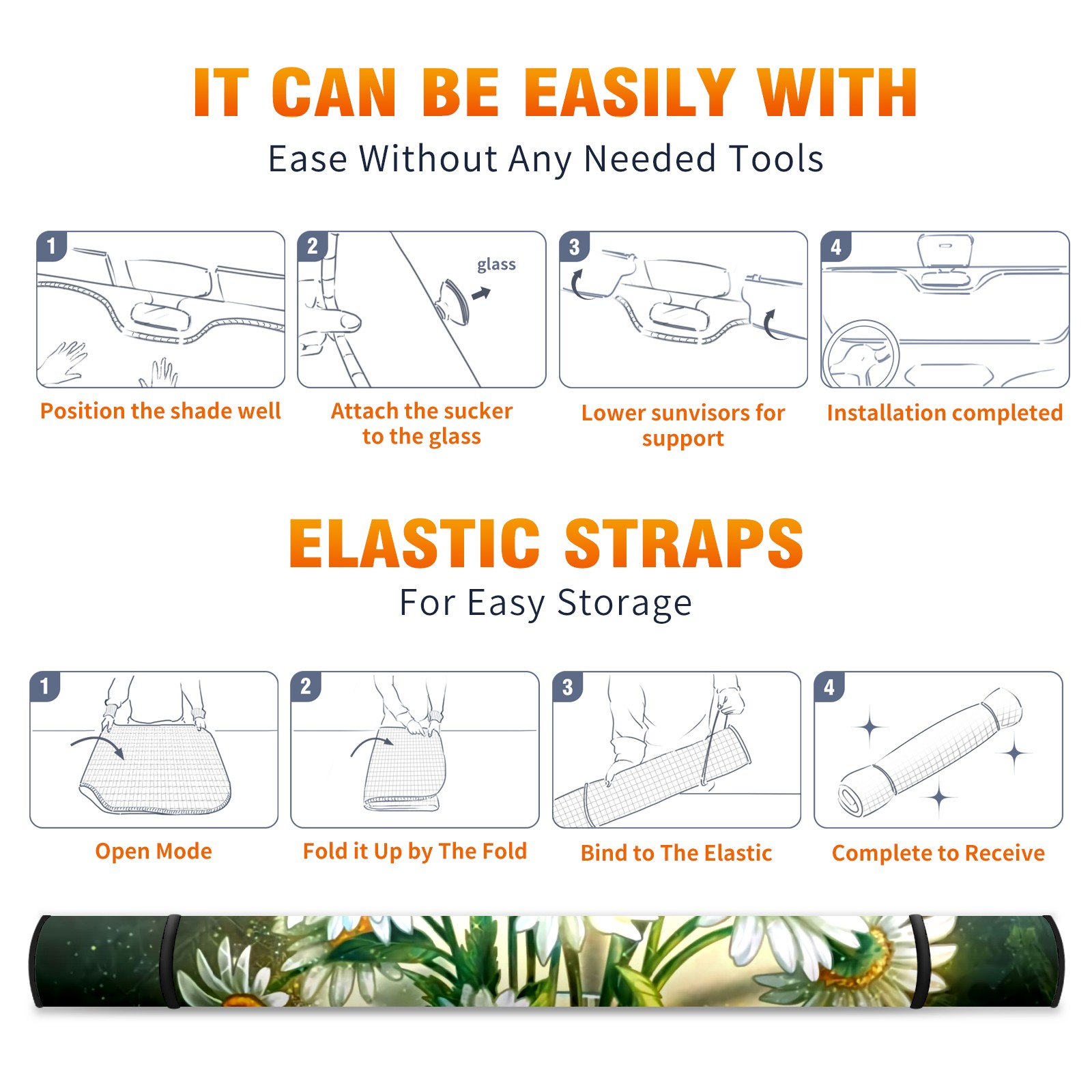 • Diameter /Size 63"L x 33.5"W Made from excellent materials which makes it sturdy and protects the car from the sun. Easy to use and pack. Makes the interior of the car cooler.You can easily stash the sunshade in the storage bag or store long term.It open and closes easy. Also the leather storage bag is durable and easy to put the umbrella back into.This windshield sunshade provides complete coverage and keeps your car interior cool under direct sun. It is easy to open and position under the windshield and around the rear-view mirror. Makes Your Car Easy To Identify, Perfect For Finding Your Car In Crowded Parking Lots And Garages.Great Choice: It Is A Great Gift For Dad, Boyfriend, Brother, Brother And Uncle, Friends, Classmates, Family And So On. Notice: Due To Difference Computer Monitors, The Color Maybe Slightly Different From Picture. As Different Measurement Methods, Measurement Data Will Float Within 2%.I Hope You Understand. If You Have Any Question About The Item Please Do Not Hesitate To Contact Us Immediately And We Will Give You A Satisfactory Reply Within 24 Hours.