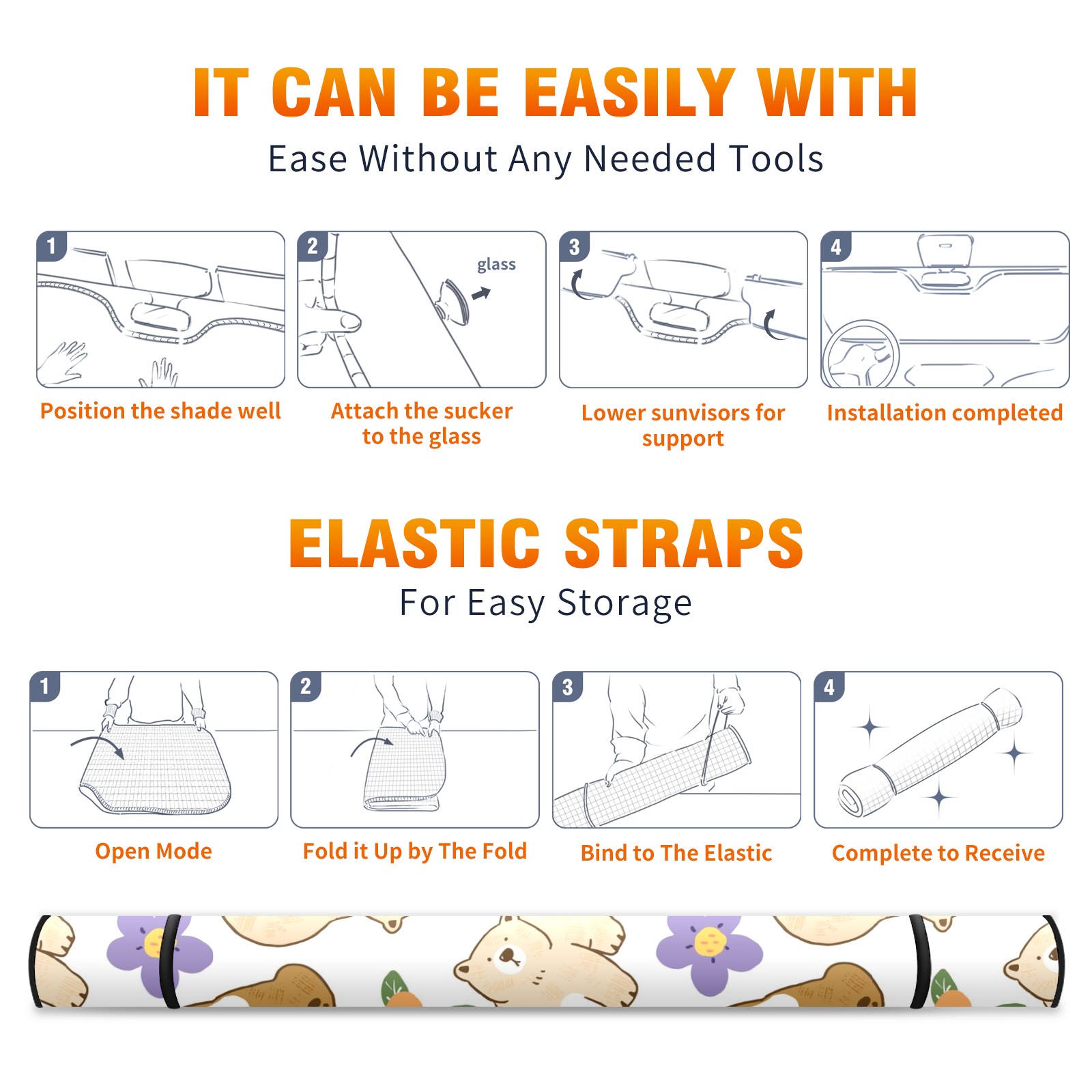 Car Windshield Sun Shade For Front Window Cute Bear And Flower Foldable Vehicle Windshield Car Sun Visor Covers Automotive Window Protector Car Camping Privacy Sun Blocker