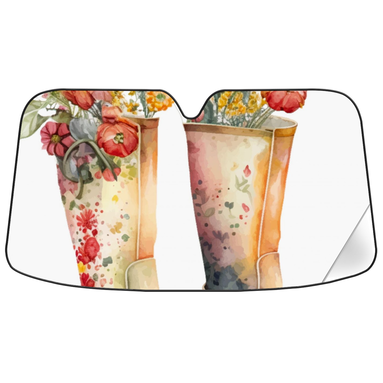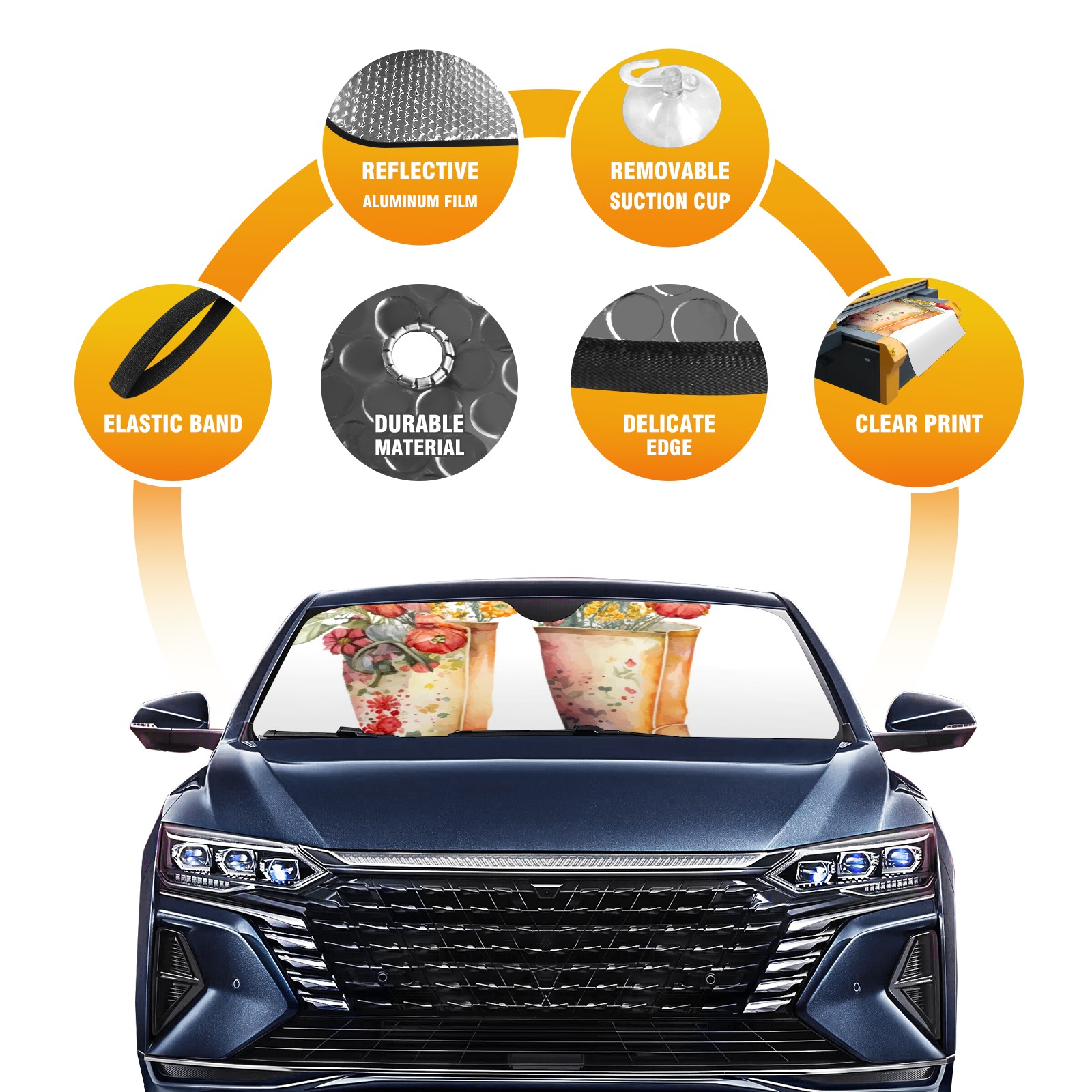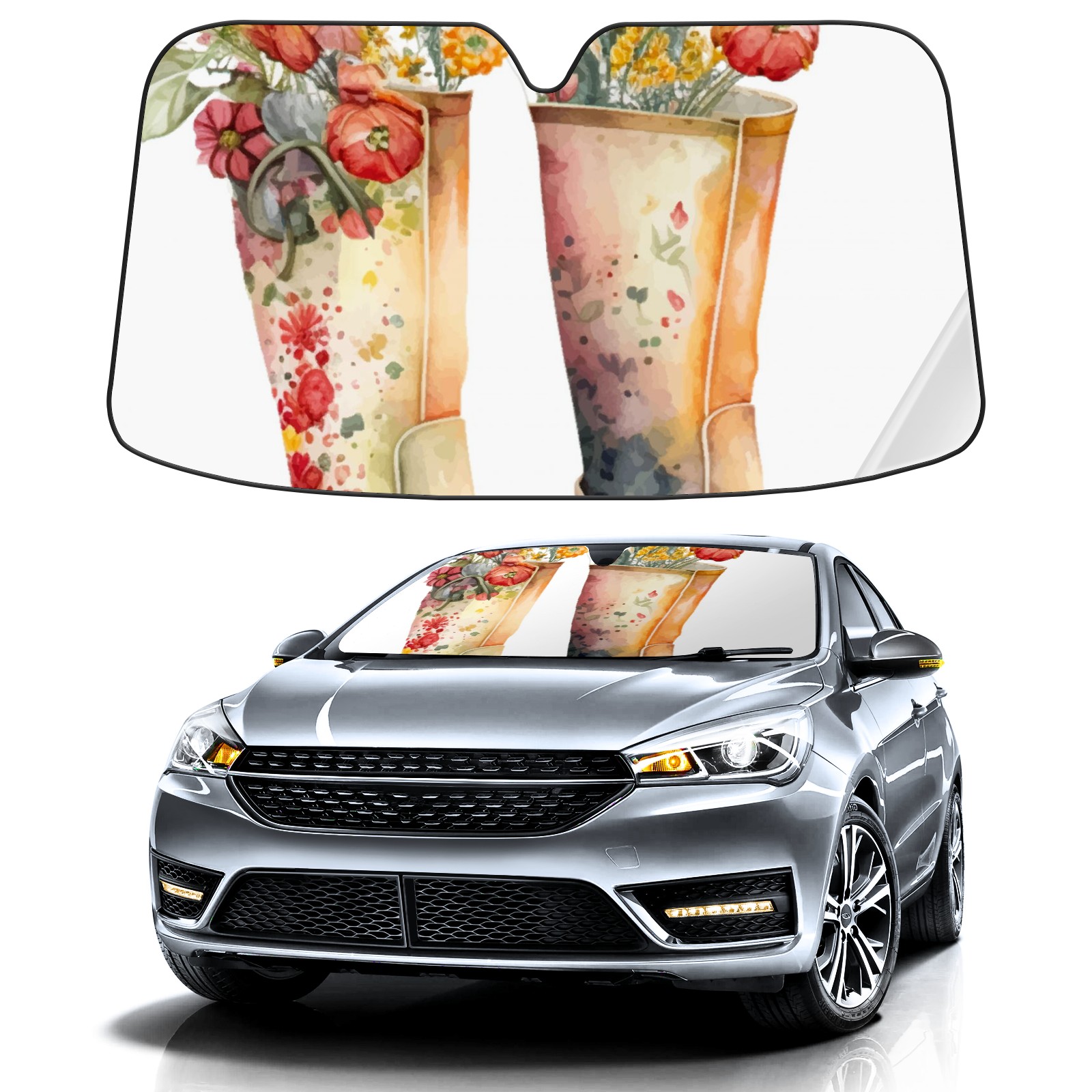 Car Windshield Sun Shade For Front Window Vintage Spring Flowers And Leaves Foldable Vehicle Windshield Car Sun Visor Covers Automotive Window Protector Car Camping Privacy Sun Blocker