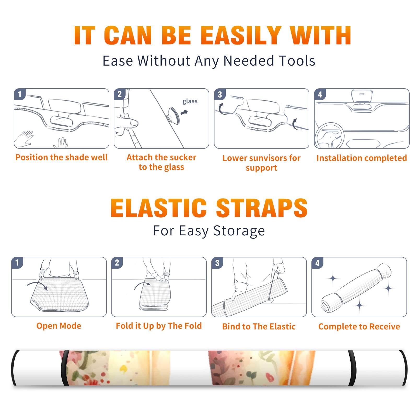 • Diameter /Size 63"L x 33.5"W Made from excellent materials which makes it sturdy and protects the car from the sun. Easy to use and pack. Makes the interior of the car cooler.You can easily stash the sunshade in the storage bag or store long term.It open and closes easy. Also the leather storage bag is durable and easy to put the umbrella back into.This windshield sunshade provides complete coverage and keeps your car interior cool under direct sun. It is easy to open and position under the windshield and around the rear-view mirror. Makes Your Car Easy To Identify, Perfect For Finding Your Car In Crowded Parking Lots And Garages.Great Choice: It Is A Great Gift For Dad, Boyfriend, Brother, Brother And Uncle, Friends, Classmates, Family And So On. Notice: Due To Difference Computer Monitors, The Color Maybe Slightly Different From Picture. As Different Measurement Methods, Measurement Data Will Float Within 2%.I Hope You Understand. If You Have Any Question About The Item Please Do Not Hesitate To Contact Us Immediately And We Will Give You A Satisfactory Reply Within 24 Hours.