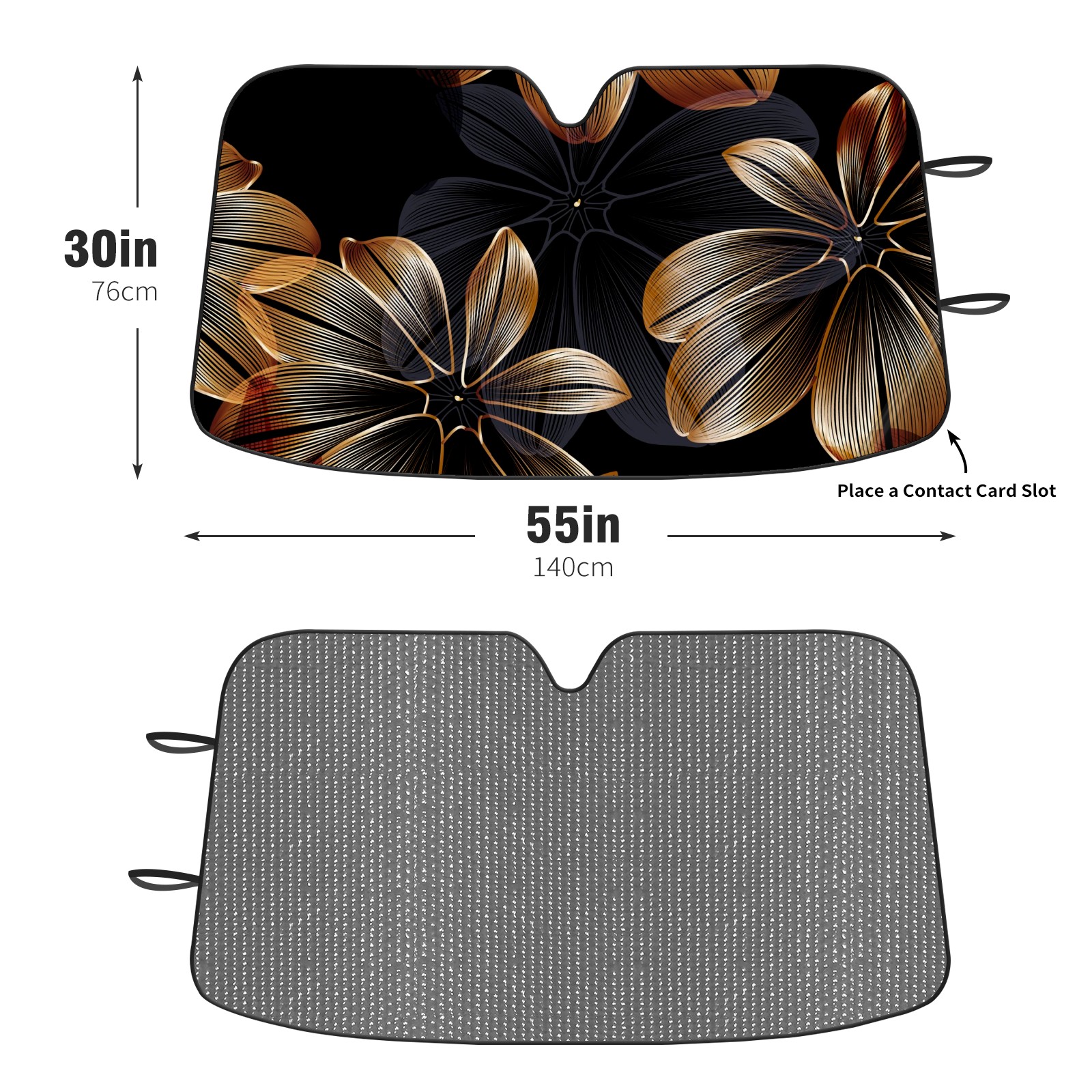 Diameter /Size 63"L x 33.5"W Made from excellent materials which makes it sturdy and protects the car from the sun. Easy to use and pack. Makes the interior of the car cooler.You can easily stash the sunshade in the storage bag or store long term.It open and closes easy. Also the leather storage bag is durable and easy to put the umbrella back into.This windshield sunshade provides complete coverage and keeps your car interior cool under direct sun. It is easy to open and position under the windshield and around the rear-view mirror. Makes Your Car Easy To Identify, Perfect For Finding Your Car In Crowded Parking Lots And Garages.Great Choice: It Is A Great Gift For Dad, Boyfriend, Brother, Brother And Uncle, Friends, Classmates, Family And So On. Notice: Due To Difference Computer Monitors, The Color Maybe Slightly Different From Picture. As Different Measurement Methods, Measurement Data Will Float Within 2%.I Hope You Understand. If You Have Any Question About The Item Please Do Not Hesitate To Contact Us Immediately And We Will Give You A Satisfactory Reply Within 24 Hours.