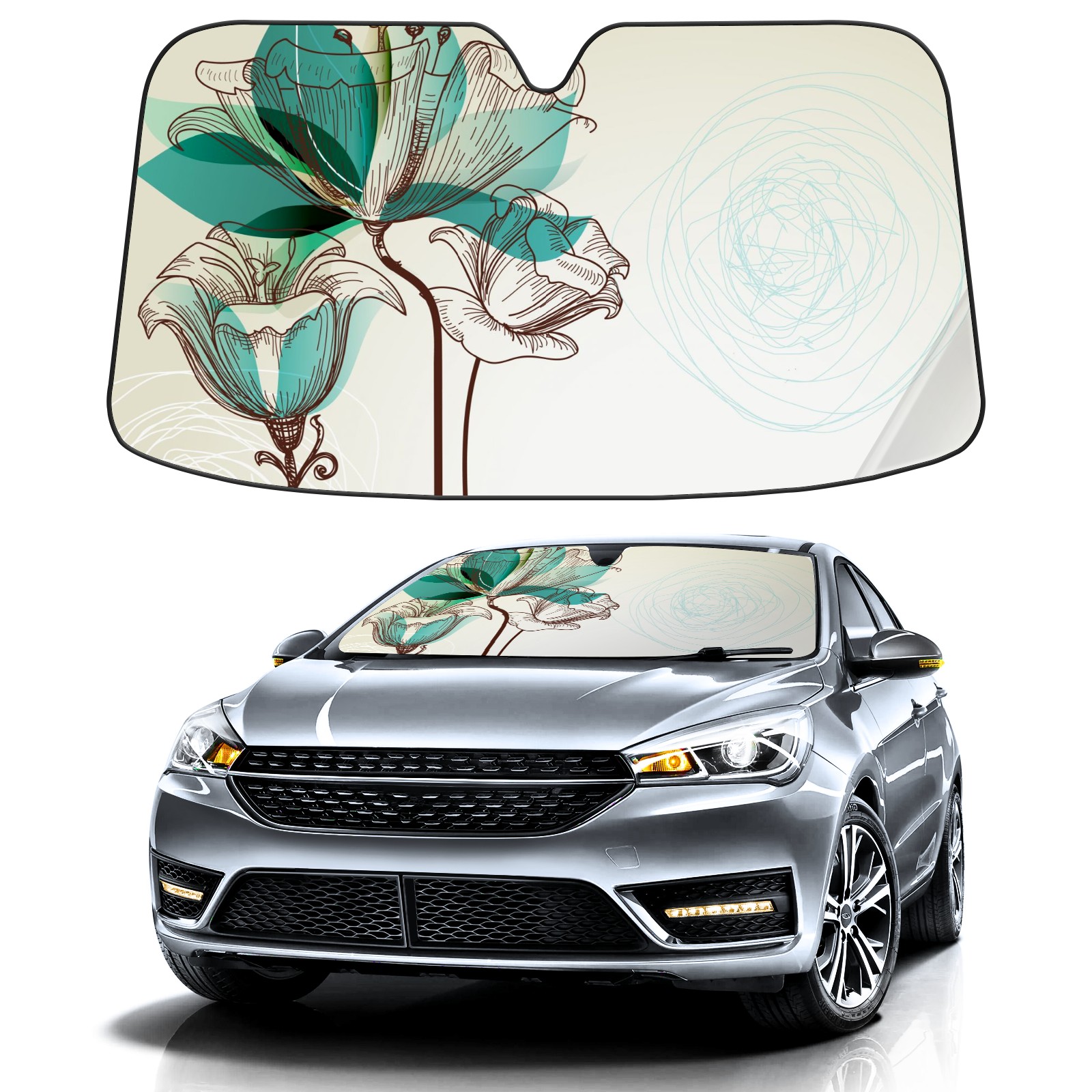 Car Windshield Sun Shade For Front Window Vintage Floral Background Foldable Vehicle Windshield Car Sun Visor Covers Automotive Window Protector Car Camping Privacy Sun Blocker