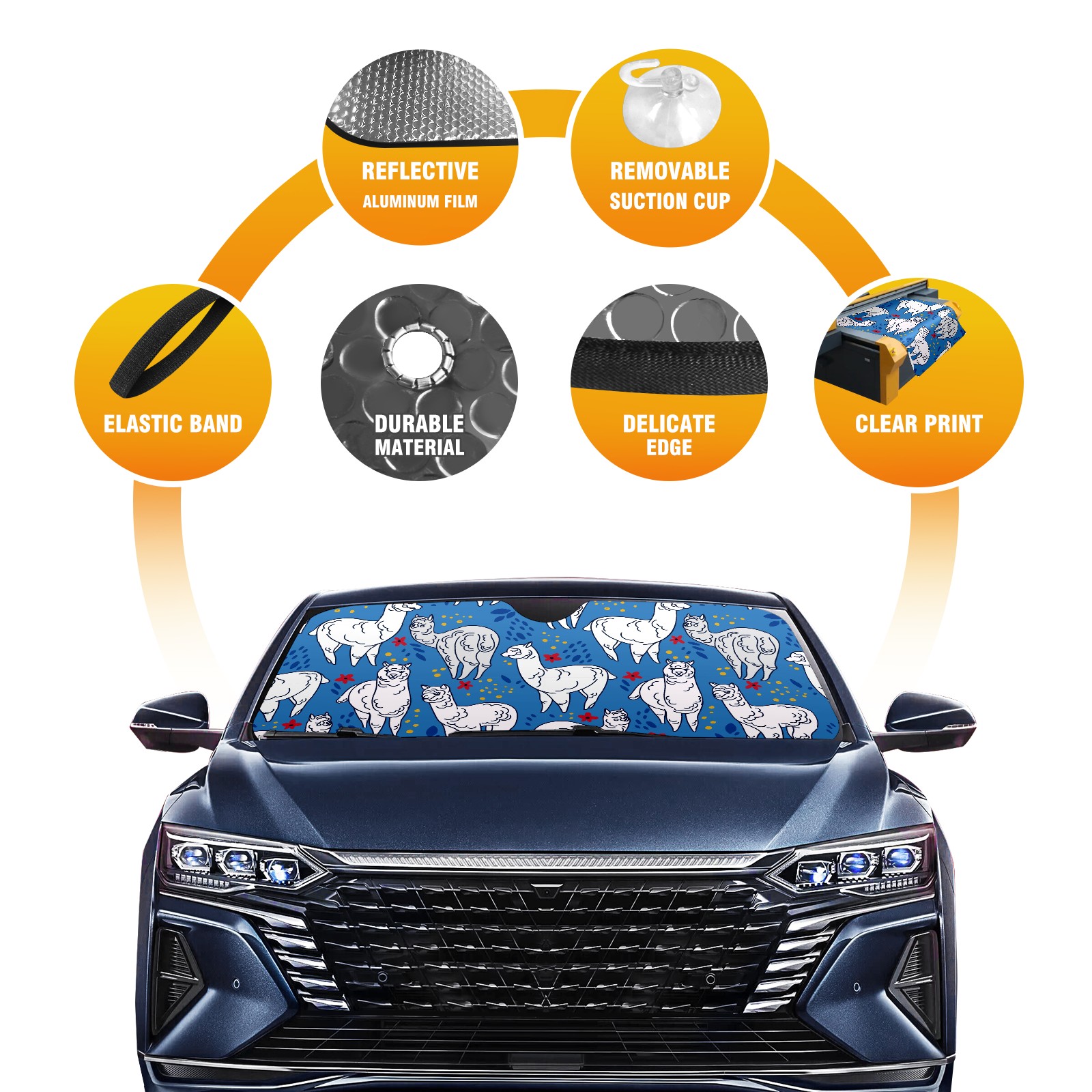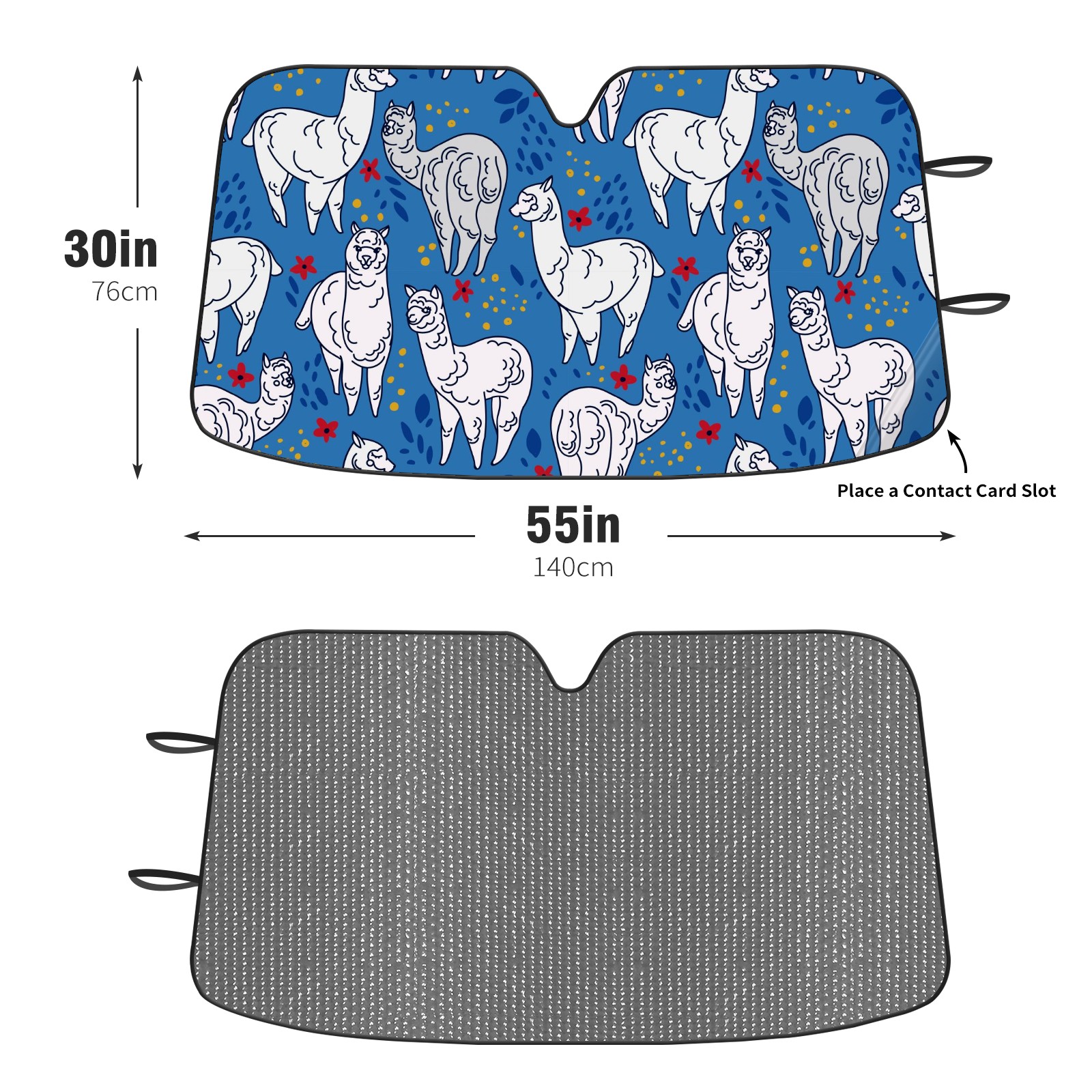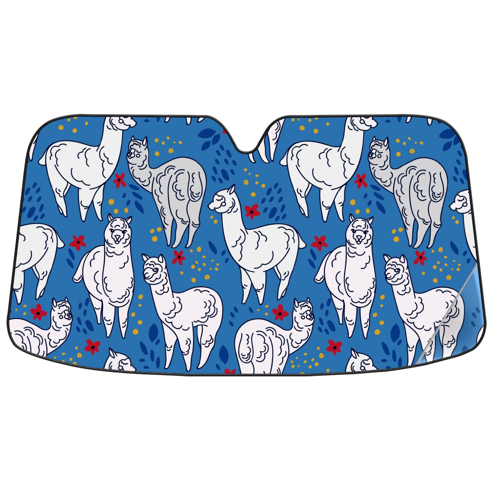 Car Windshield Sun Shade For Front Window Cute Doodle Alpaca And Flowers Foldable Vehicle Windshield Car Sun Visor Covers Automotive Window Protector Car Camping Privacy Sun Blocker
