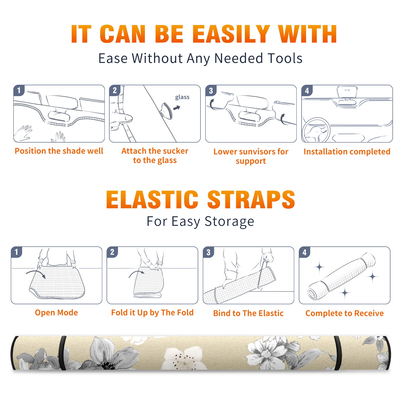 • Diameter /Size 63"L x 33.5"W Made from excellent materials which makes it sturdy and protects the car from the sun. Easy to use and pack. Makes the interior of the car cooler.You can easily stash the sunshade in the storage bag or store long term.It open and closes easy. Also the leather storage bag is durable and easy to put the umbrella back into.This windshield sunshade provides complete coverage and keeps your car interior cool under direct sun. It is easy to open and position under the windshield and around the rear-view mirror. Makes Your Car Easy To Identify, Perfect For Finding Your Car In Crowded Parking Lots And Garages.Great Choice: It Is A Great Gift For Dad, Boyfriend, Brother, Brother And Uncle, Friends, Classmates, Family And So On. Notice: Due To Difference Computer Monitors, The Color Maybe Slightly Different From Picture. As Different Measurement Methods, Measurement Data Will Float Within 2%.I Hope You Understand. If You Have Any Question About The Item Please Do Not Hesitate To Contact Us Immediately And We Will Give You A Satisfactory Reply Within 24 Hours.