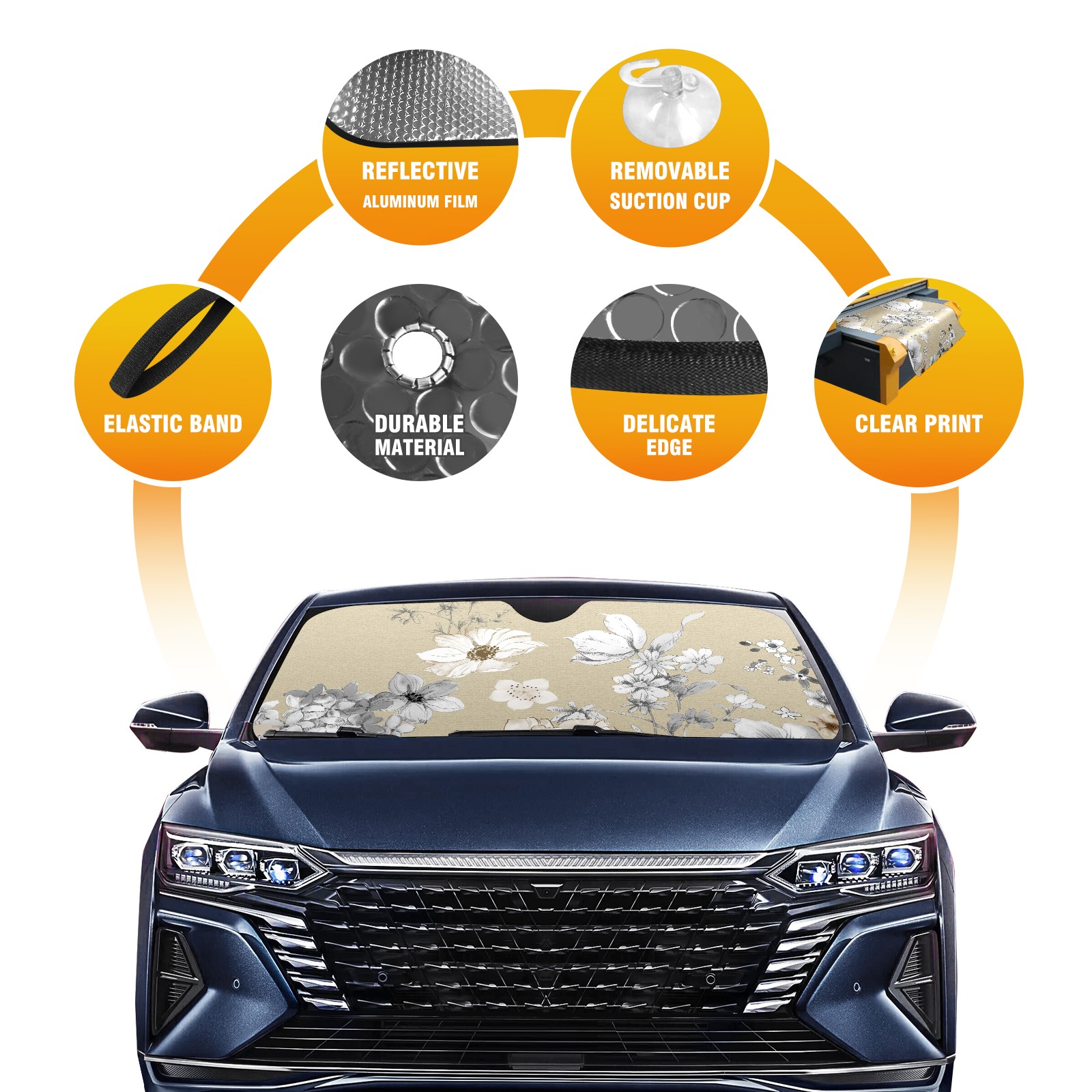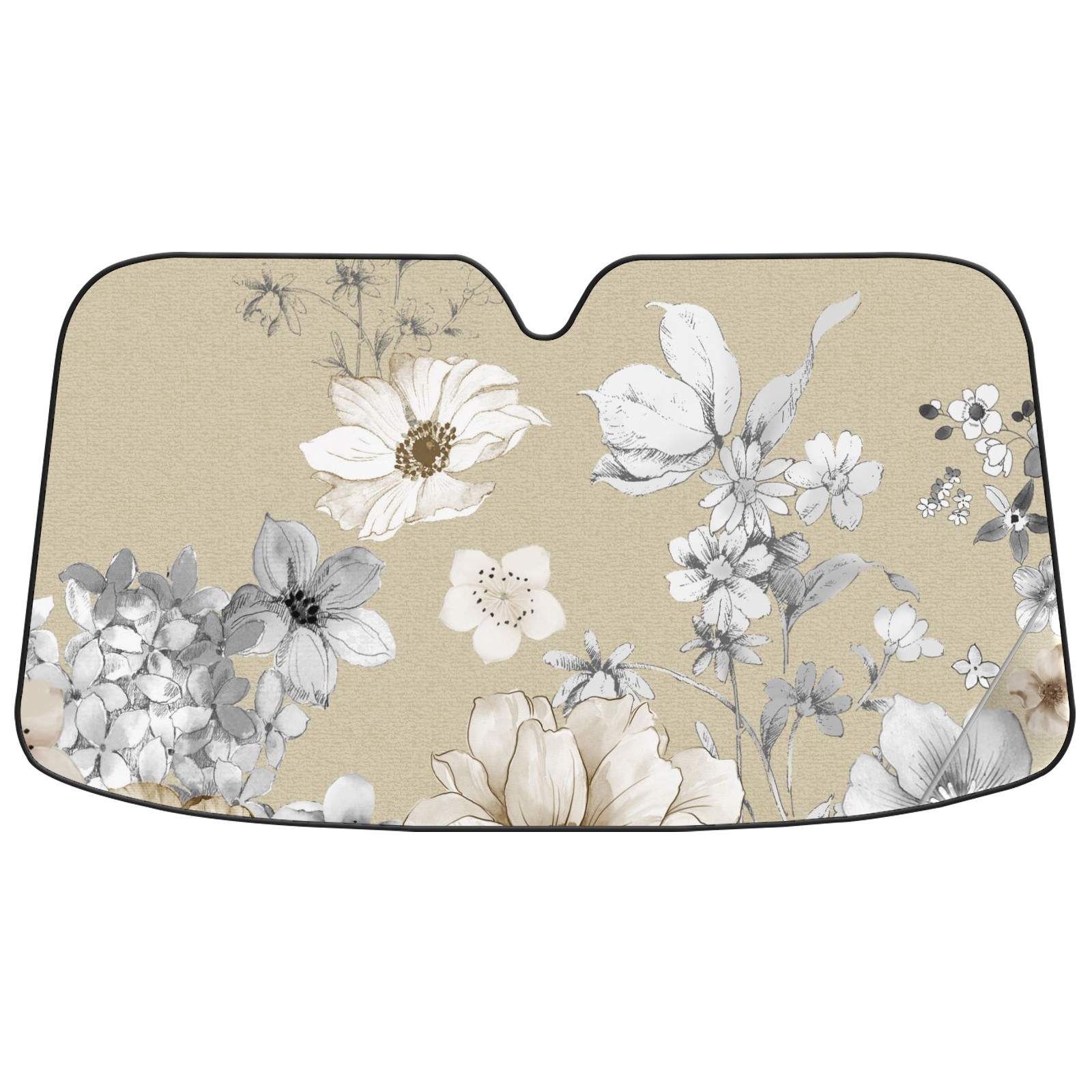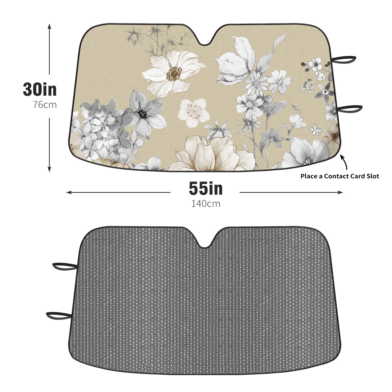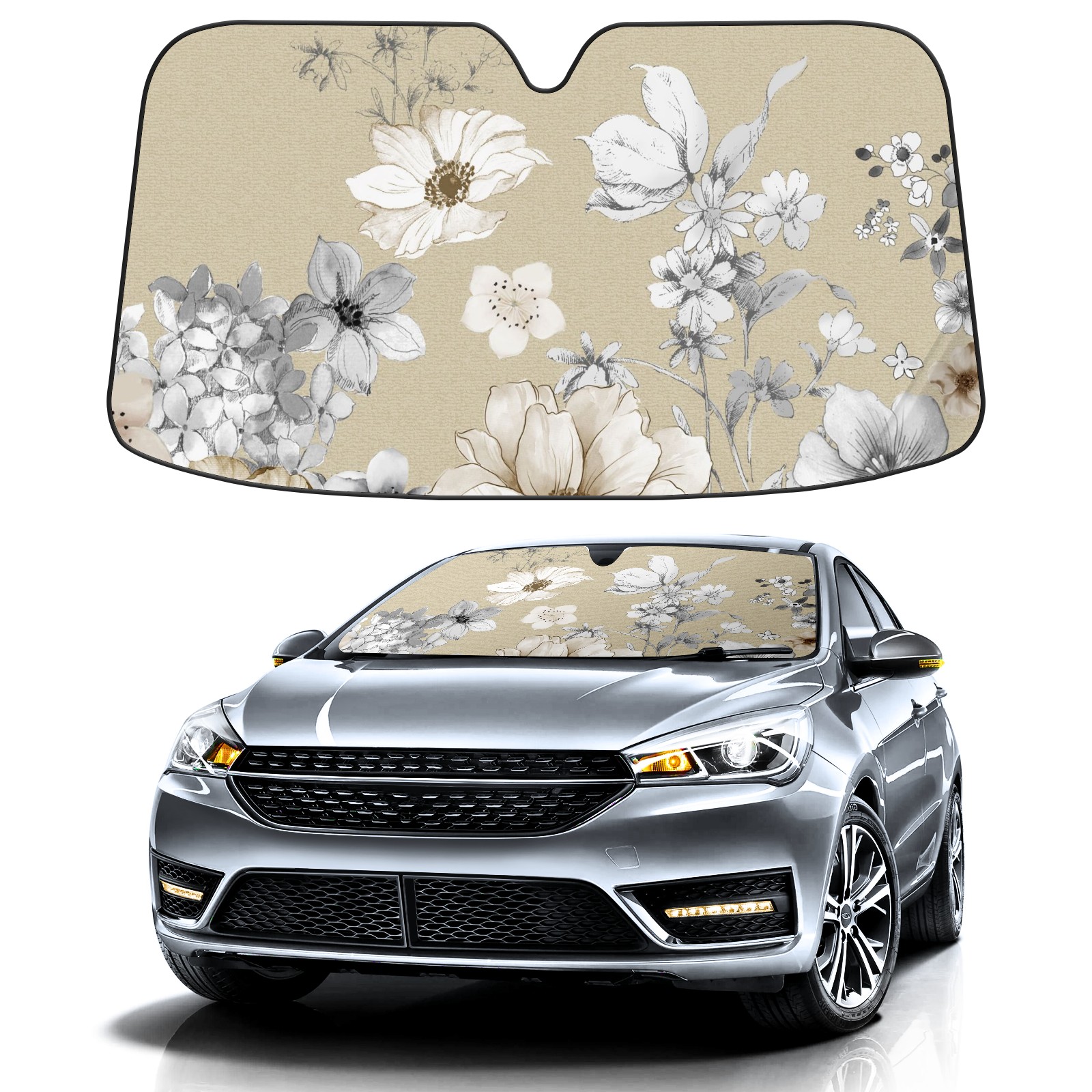 Car Windshield Sun Shade For Front Window Vintage Floral Butterfly 1 Foldable Vehicle Windshield Car Sun Visor Covers Automotive Window Protector Car Camping Privacy Sun Blocker