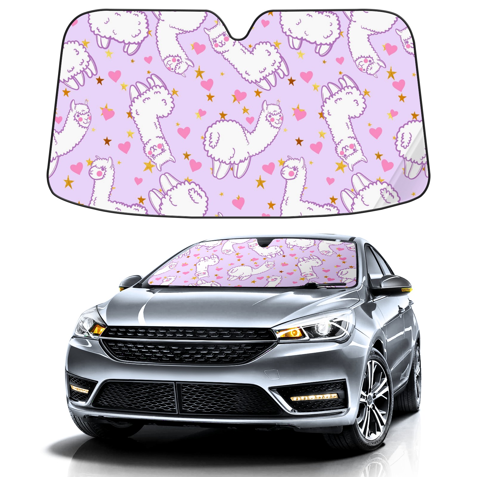 Car Windshield Sun Shade For Front Window Cute Alpacas Hearts Stars Foldable Vehicle Windshield Car Sun Visor Covers Automotive Window Protector Car Camping Privacy Sun Blocker