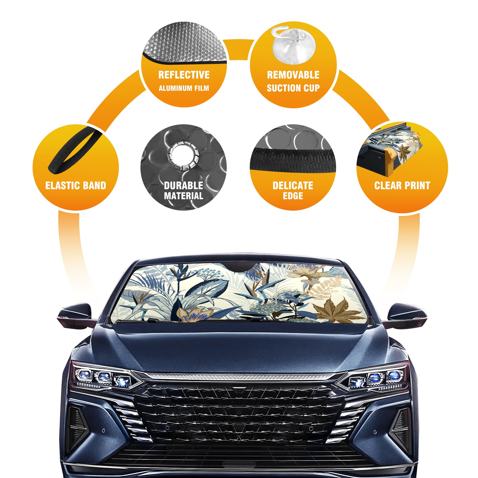 • Diameter /Size 63"L x 33.5"W Made from excellent materials which makes it sturdy and protects the car from the sun. Easy to use and pack. Makes the interior of the car cooler.You can easily stash the sunshade in the storage bag or store long term.It open and closes easy. Also the leather storage bag is durable and easy to put the umbrella back into.This windshield sunshade provides complete coverage and keeps your car interior cool under direct sun. It is easy to open and position under the windshield and around the rear-view mirror. Makes Your Car Easy To Identify, Perfect For Finding Your Car In Crowded Parking Lots And Garages.Great Choice: It Is A Great Gift For Dad, Boyfriend, Brother, Brother And Uncle, Friends, Classmates, Family And So On. Notice: Due To Difference Computer Monitors, The Color Maybe Slightly Different From Picture. As Different Measurement Methods, Measurement Data Will Float Within 2%.I Hope You Understand. If You Have Any Question About The Item Please Do Not Hesitate To Contact Us Immediately And We Will Give You A Satisfactory Reply Within 24 Hours.