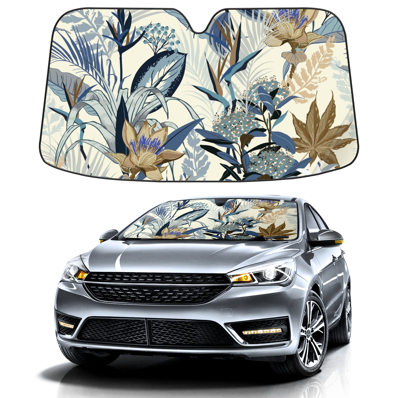 Car Windshield Sun Shade For Front Window Summer Blue Wild Forest Flowers Foldable Vehicle Windshield Car Sun Visor Covers Automotive Window Protector Car Camping Privacy Sun Blocker