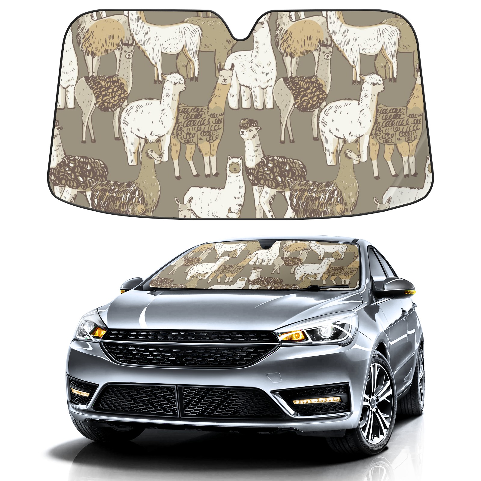 Car Windshield Sun Shade For Front Window Cute Apaca On Brown Background Foldable Vehicle Windshield Car Sun Visor Covers Automotive Window Protector Car Camping Privacy Sun Blocker