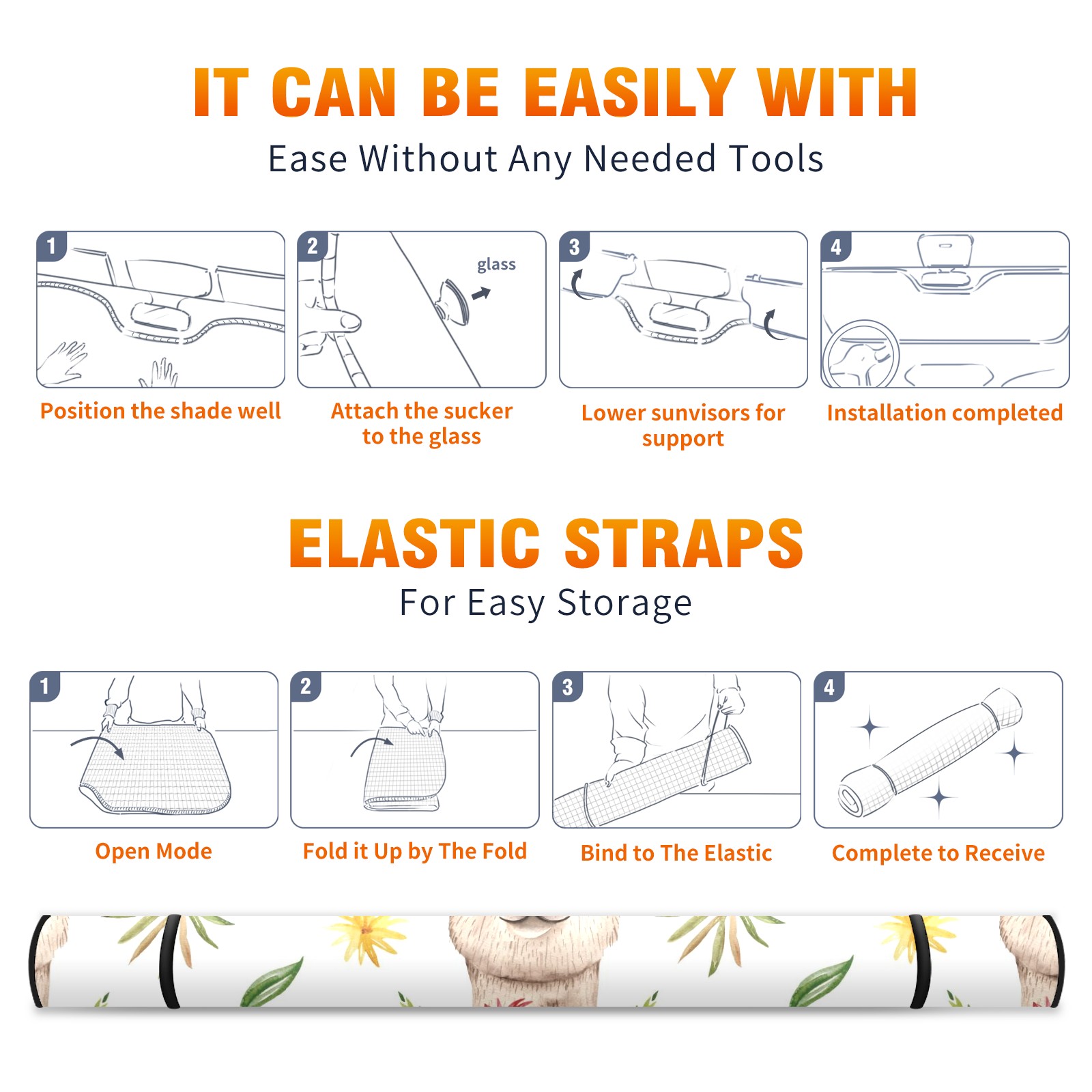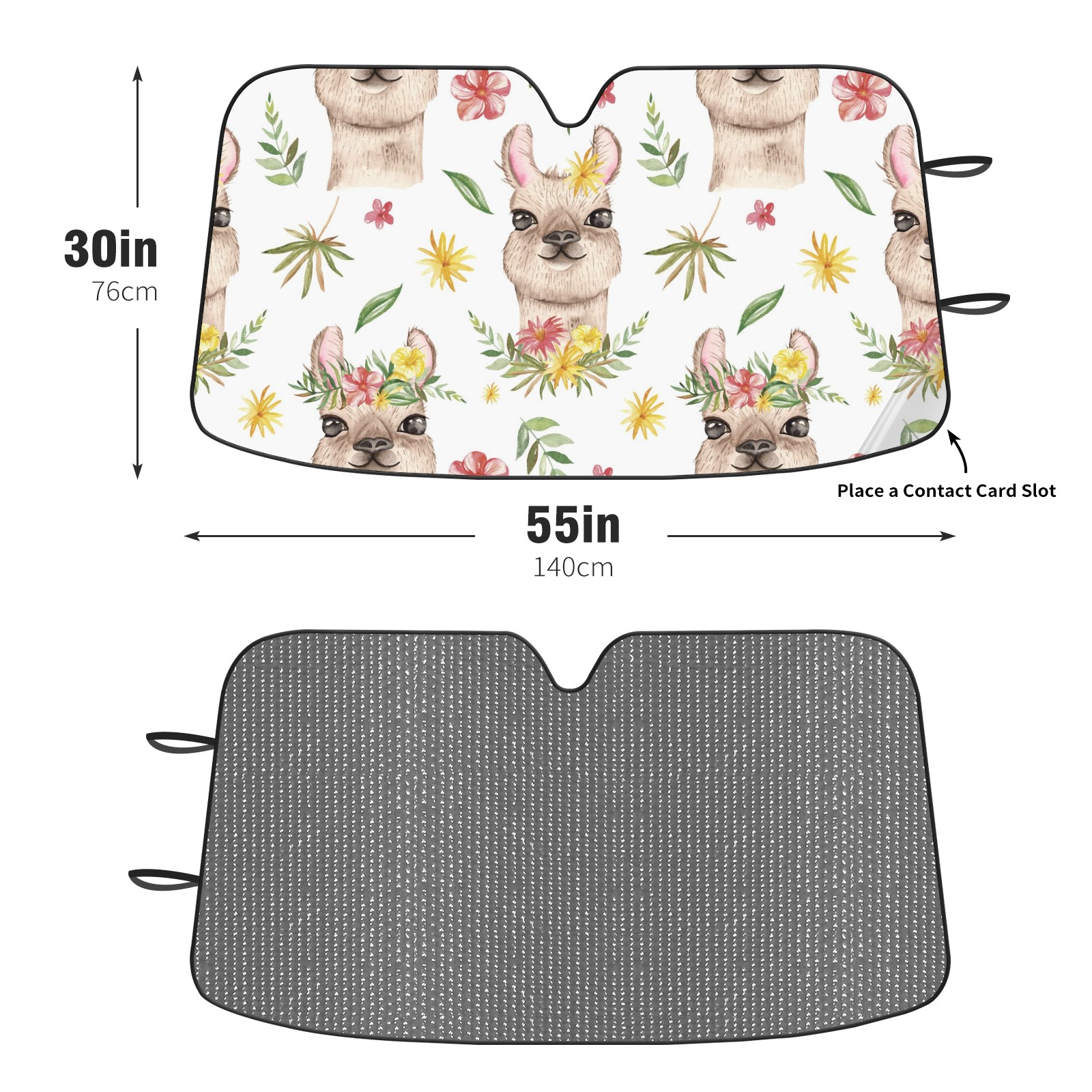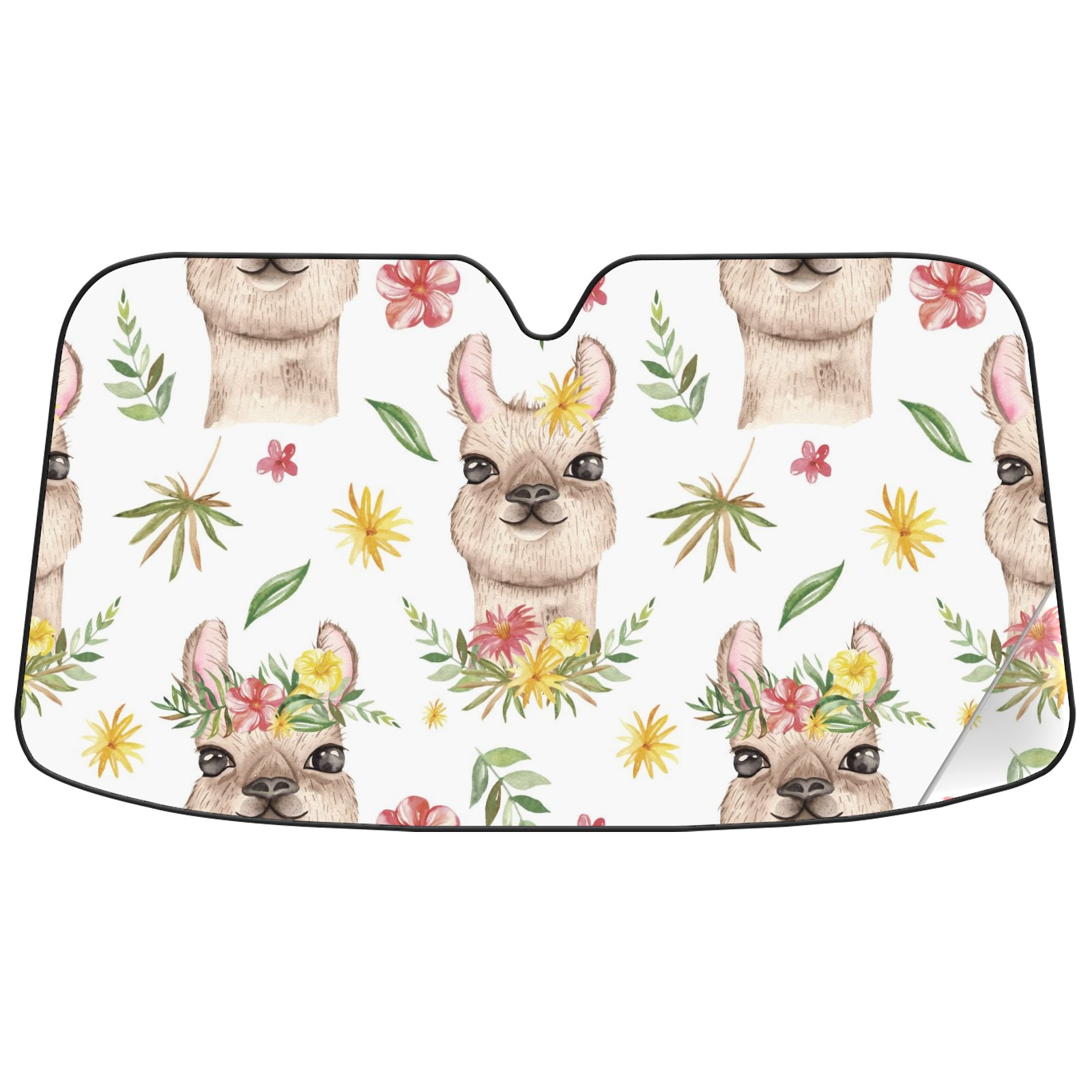 Car Windshield Sun Shade For Front Window Cute Alpaca Flowers Foldable Vehicle Windshield Car Sun Visor Covers Automotive Window Protector Car Camping Privacy Sun Blocker