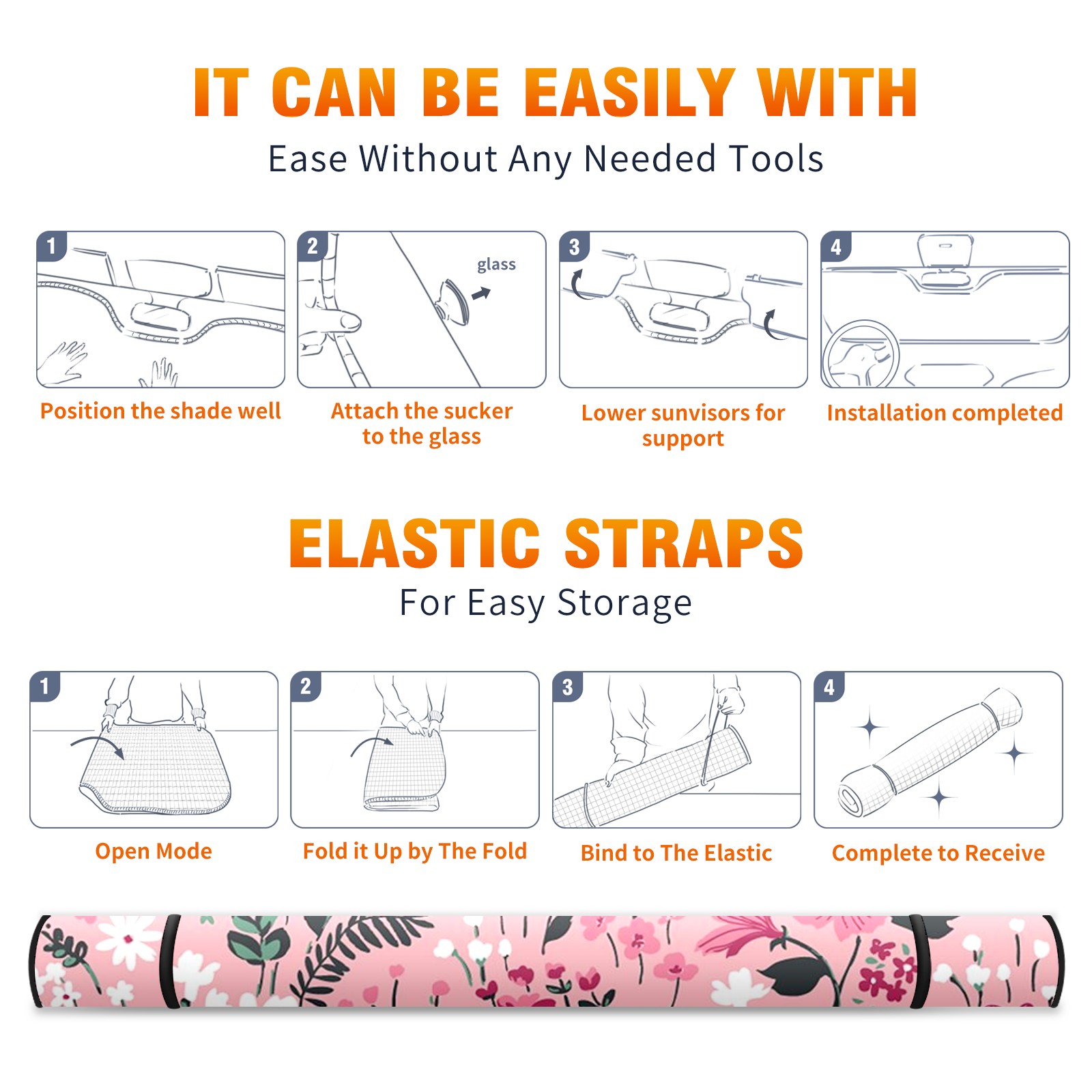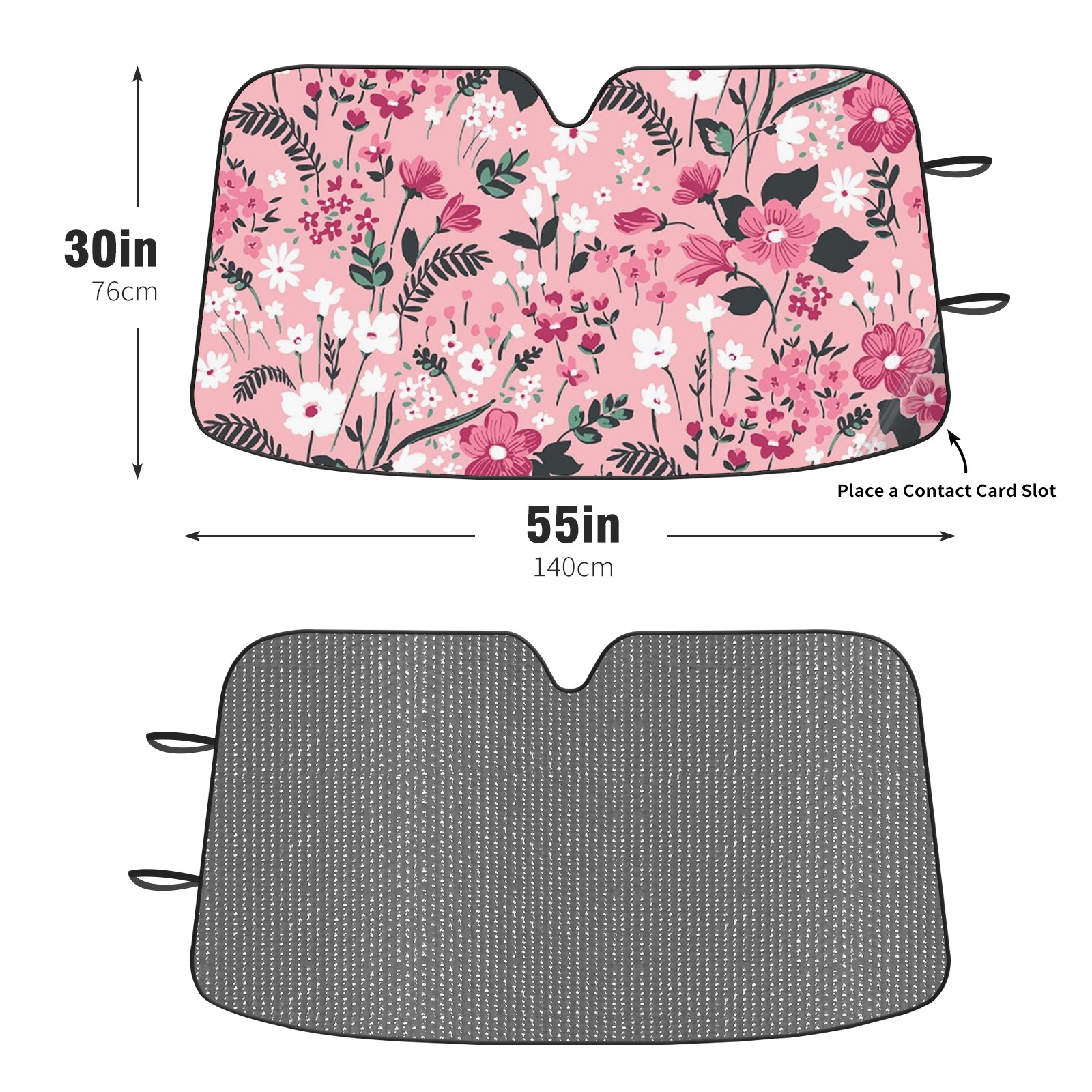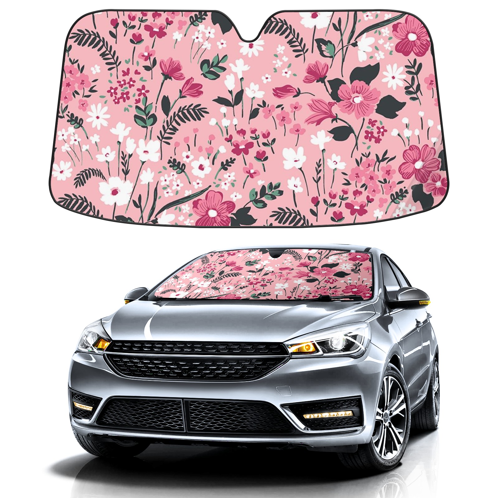 Car Windshield Sun Shade For Front Window Pink Flower Pattern Foldable Vehicle Windshield Car Sun Visor Covers Automotive Window Protector Car Camping Privacy Sun Blocker