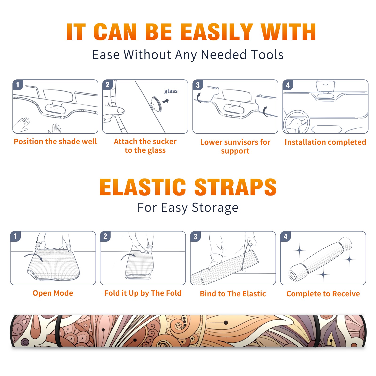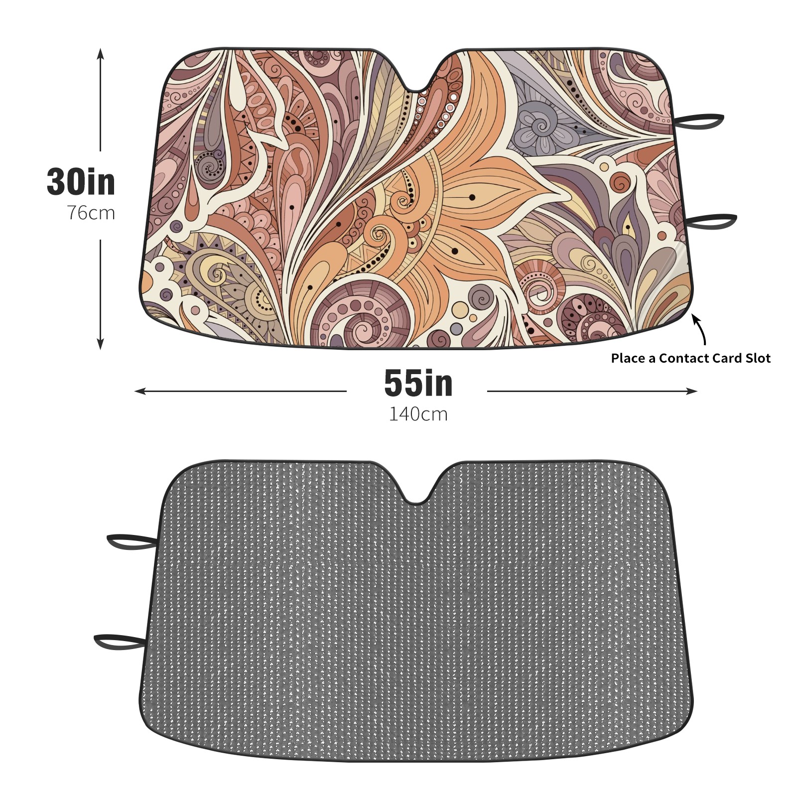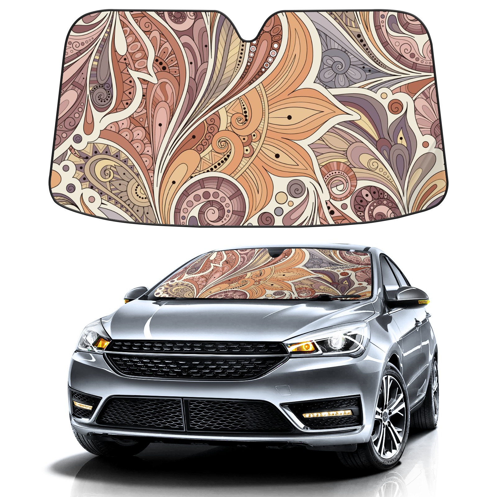 Car Windshield Sun Shade For Front Window Paisley Flower Texture Foldable Vehicle Windshield Car Sun Visor Covers Automotive Window Protector Car Camping Privacy Sun Blocker