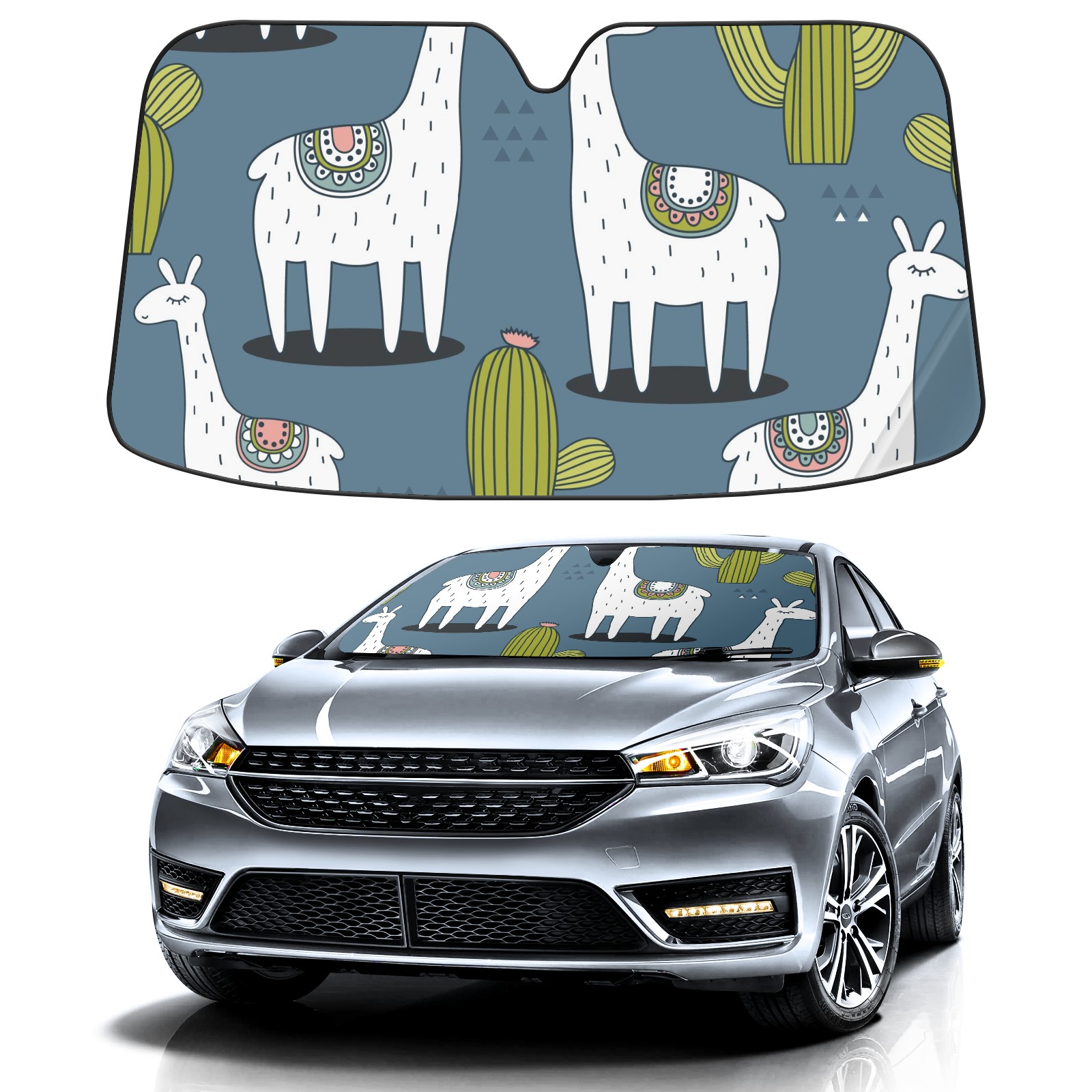 Car Windshield Sun Shade For Front Window Cute Alpaca Cactus 1 Foldable Vehicle Windshield Car Sun Visor Covers Automotive Window Protector Car Camping Privacy Sun Blocker