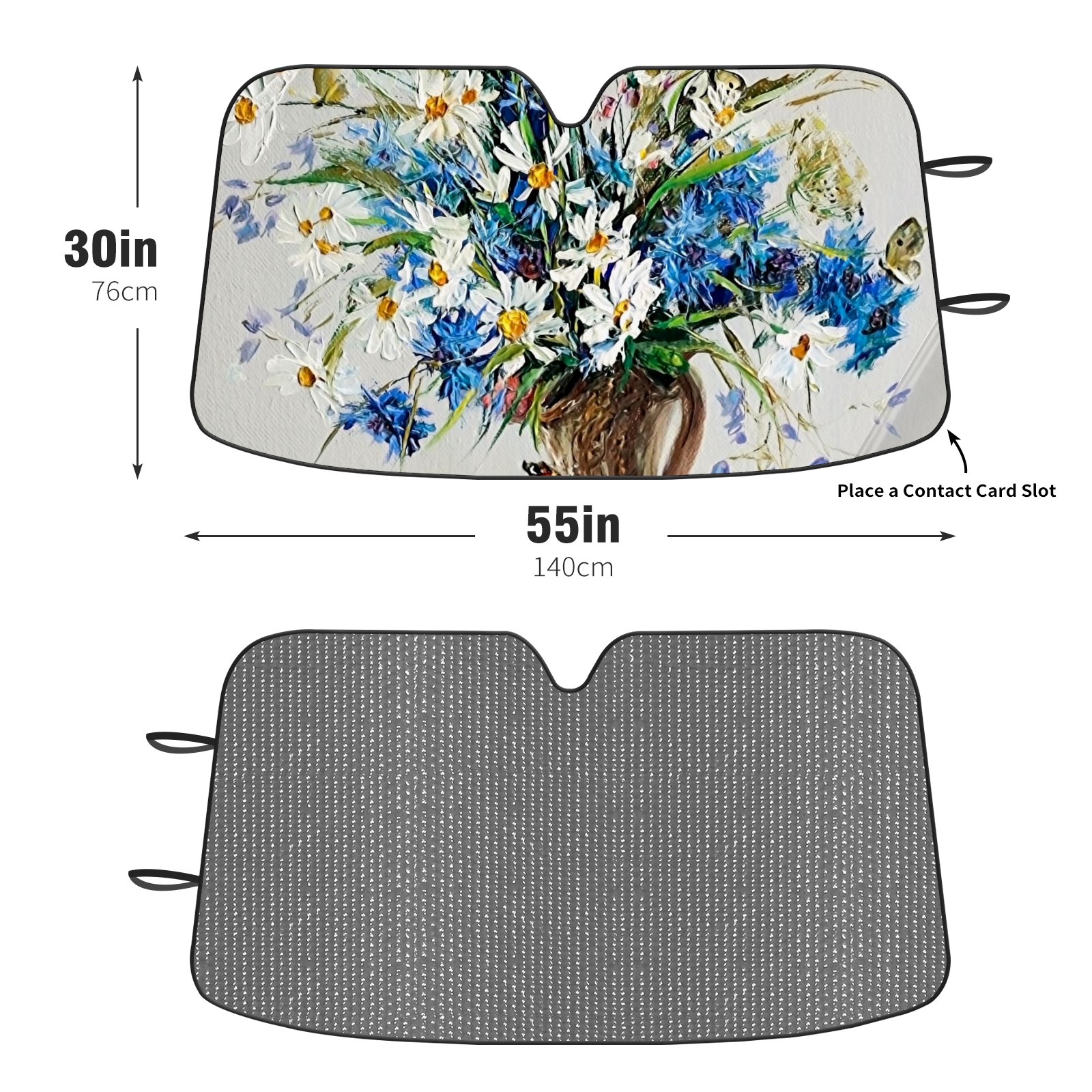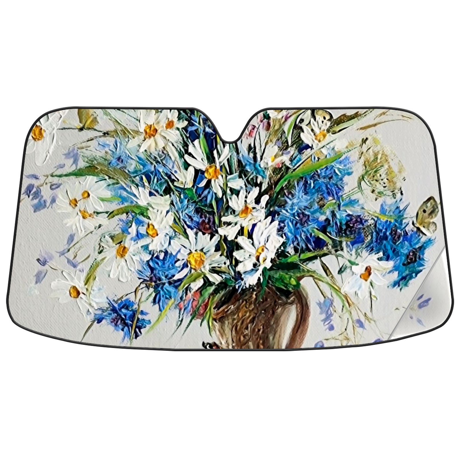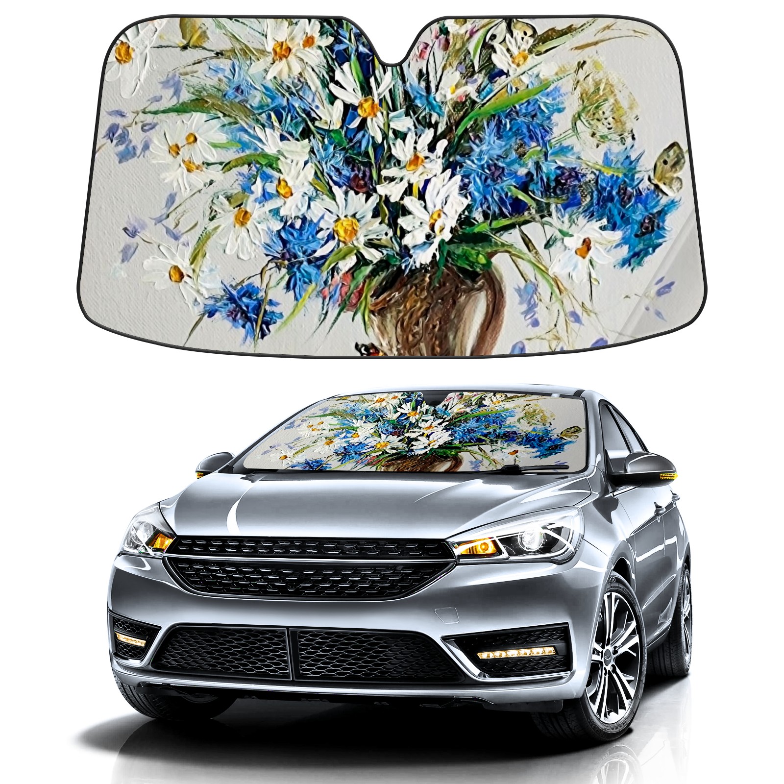 Car Windshield Sun Shade For Front Window Flowers Butterfly Oil Painting Foldable Vehicle Windshield Car Sun Visor Covers Automotive Window Protector Car Camping Privacy Sun Blocker