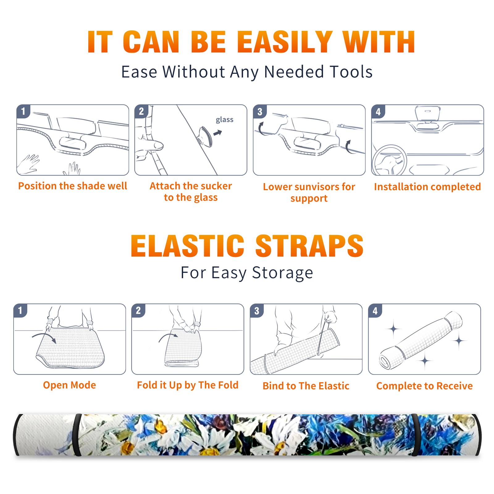 • Diameter /Size 63"L x 33.5"W Made from excellent materials which makes it sturdy and protects the car from the sun. Easy to use and pack. Makes the interior of the car cooler.You can easily stash the sunshade in the storage bag or store long term.It open and closes easy. Also the leather storage bag is durable and easy to put the umbrella back into.This windshield sunshade provides complete coverage and keeps your car interior cool under direct sun. It is easy to open and position under the windshield and around the rear-view mirror. Makes Your Car Easy To Identify, Perfect For Finding Your Car In Crowded Parking Lots And Garages.Great Choice: It Is A Great Gift For Dad, Boyfriend, Brother, Brother And Uncle, Friends, Classmates, Family And So On. Notice: Due To Difference Computer Monitors, The Color Maybe Slightly Different From Picture. As Different Measurement Methods, Measurement Data Will Float Within 2%.I Hope You Understand. If You Have Any Question About The Item Please Do Not Hesitate To Contact Us Immediately And We Will Give You A Satisfactory Reply Within 24 Hours.
