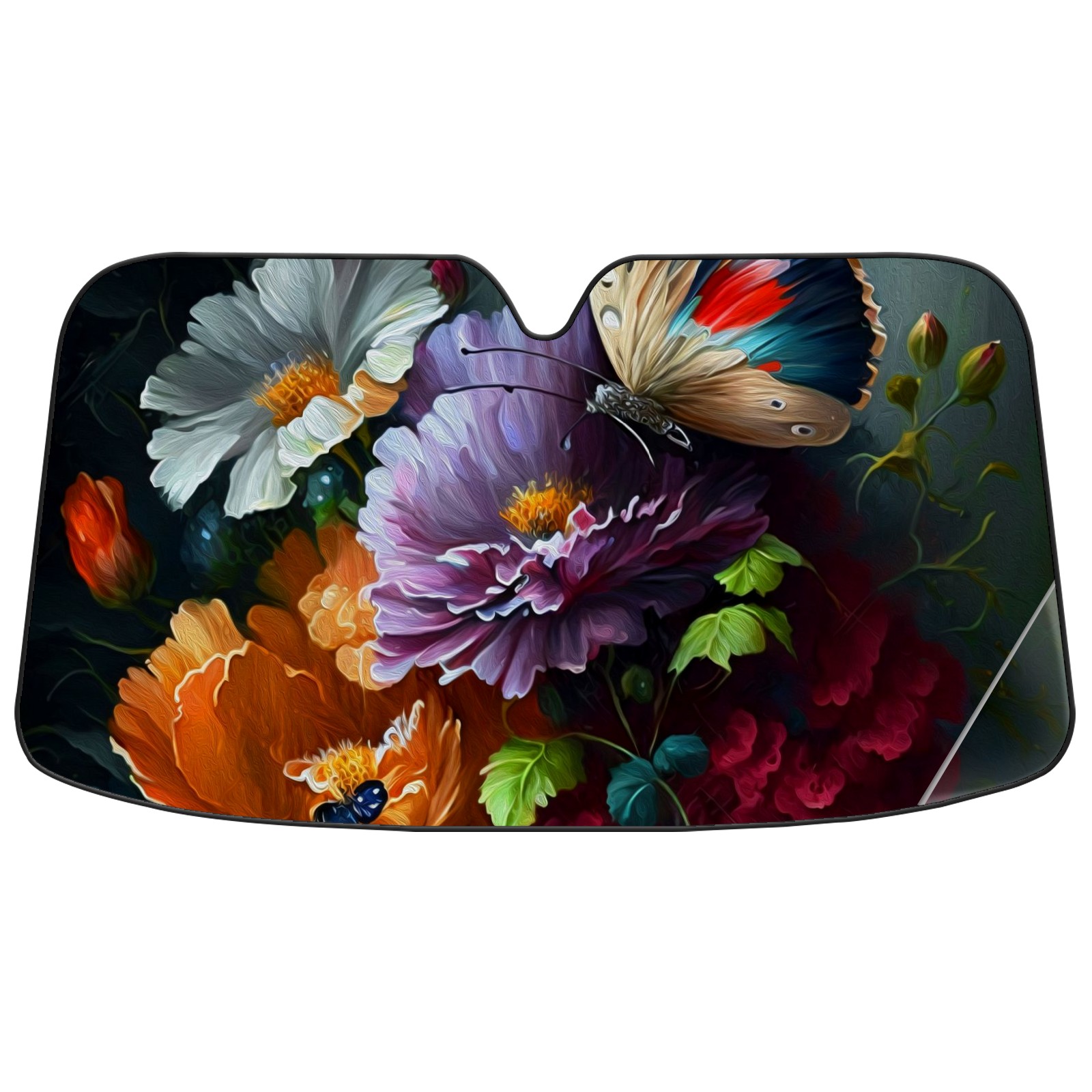 Car Windshield Sun Shade For Front Window Colorful Flowers With Butterfly Foldable Vehicle Windshield Car Sun Visor Covers Automotive Window Protector Car Camping Privacy Sun Blocker