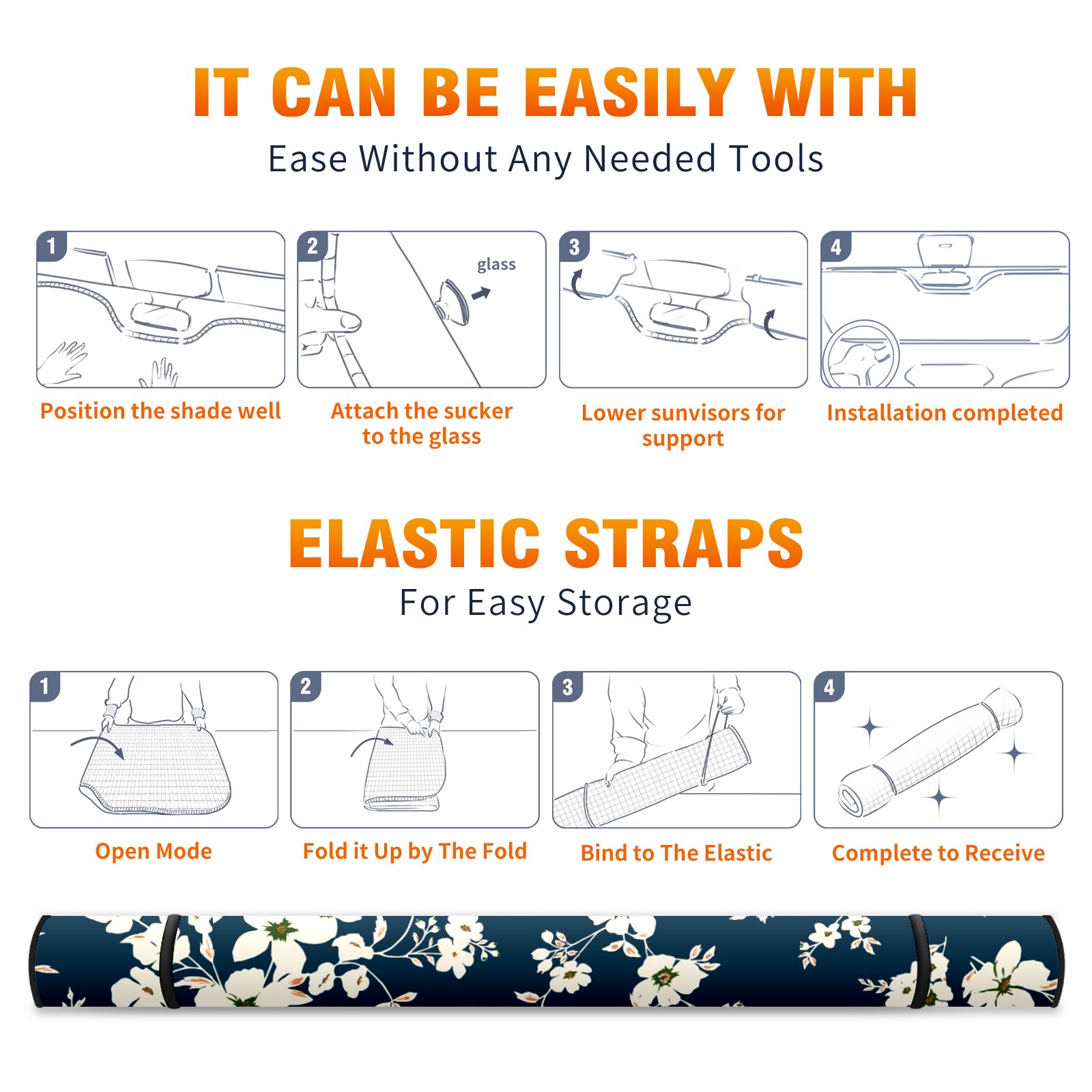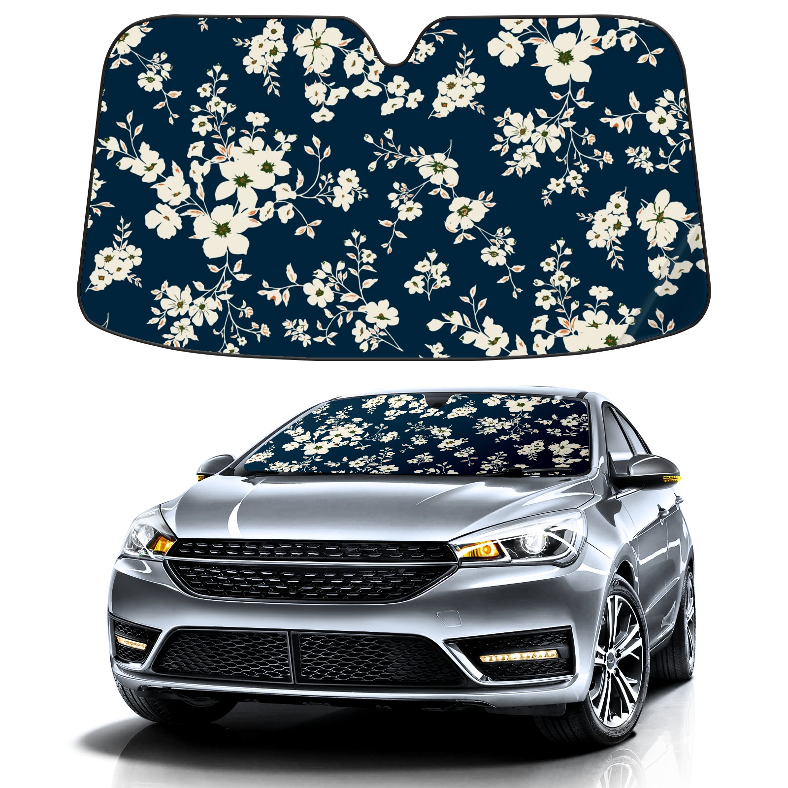 Car Windshield Sun Shade For Front Window Cute Flowers On Blue Background Foldable Vehicle Windshield Car Sun Visor Covers Automotive Window Protector Car Camping Privacy Sun Blocker