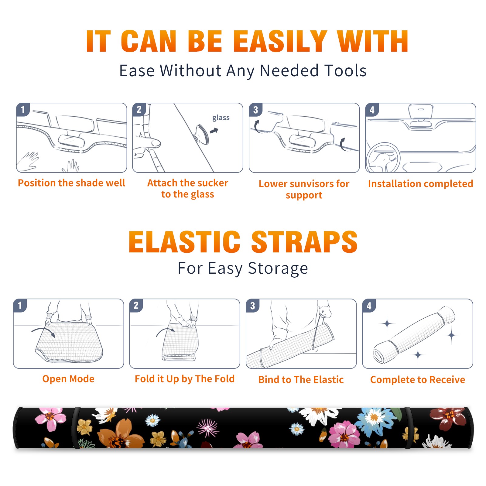 Car Windshield Sun Shade For Front Window Colorful And Stylish Flowers Foldable Vehicle Windshield Car Sun Visor Covers Automotive Window Protector Car Camping Privacy Sun Blocker