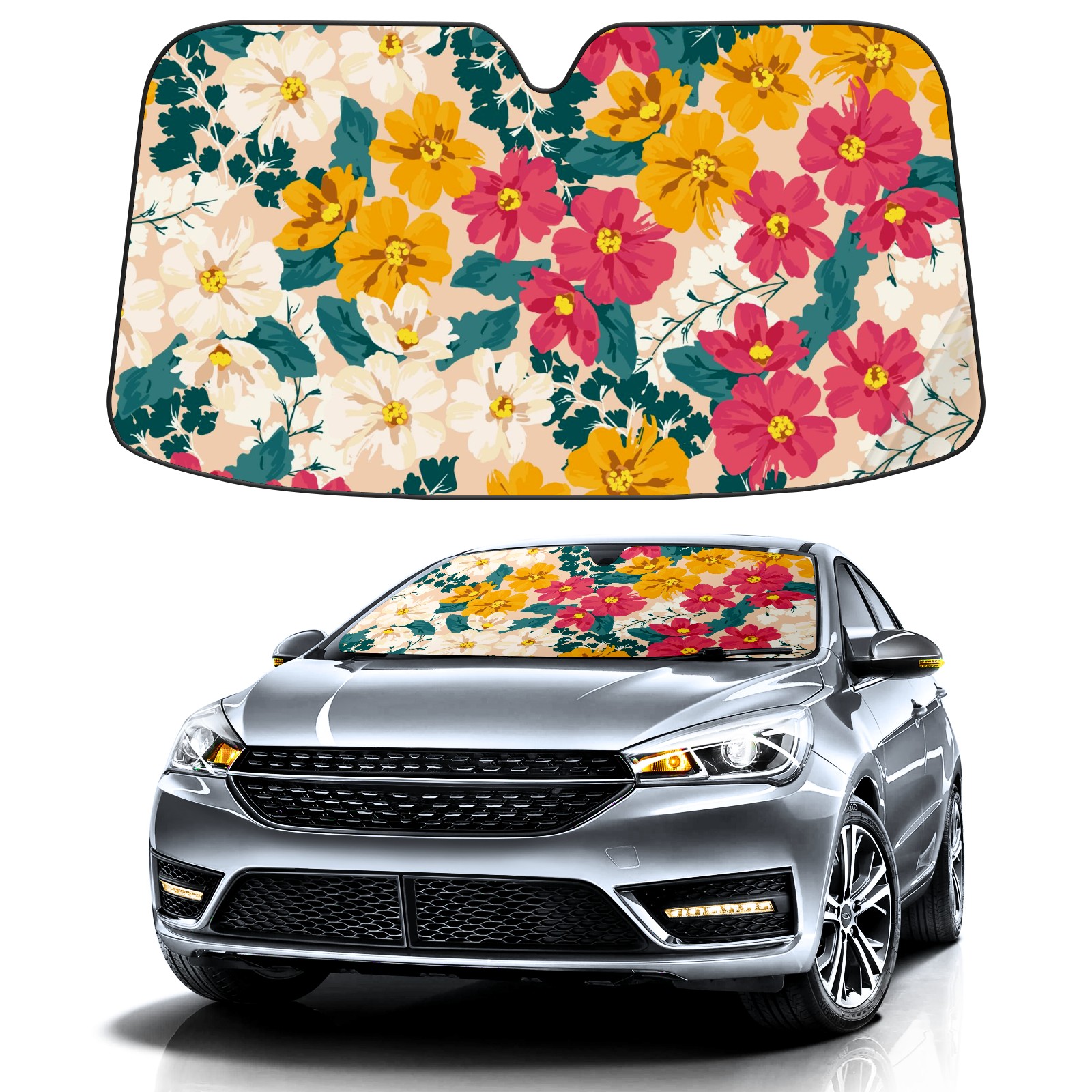 Car Windshield Sun Shade For Front Window Blooming Spring Liberty Style Floral Foldable Vehicle Windshield Car Sun Visor Covers Automotive Window Protector Car Camping Privacy Sun Blocker