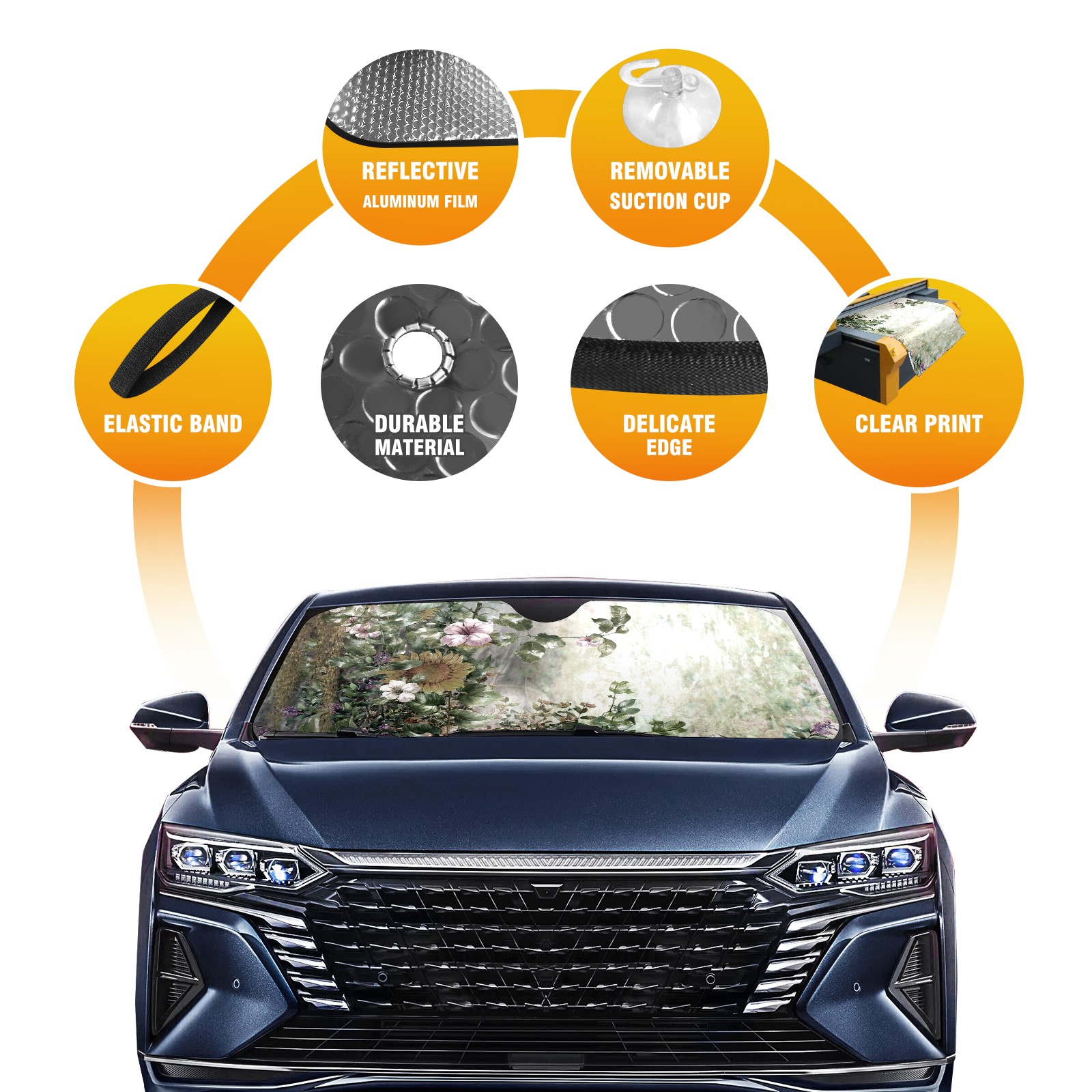 Diameter /Size 63"L x 33.5"W Made from excellent materials which makes it sturdy and protects the car from the sun. Easy to use and pack. Makes the interior of the car cooler.You can easily stash the sunshade in the storage bag or store long term.It open and closes easy. Also the leather storage bag is durable and easy to put the umbrella back into.This windshield sunshade provides complete coverage and keeps your car interior cool under direct sun. It is easy to open and position under the windshield and around the rear-view mirror. Makes Your Car Easy To Identify, Perfect For Finding Your Car In Crowded Parking Lots And Garages.Great Choice: It Is A Great Gift For Dad, Boyfriend, Brother, Brother And Uncle, Friends, Classmates, Family And So On. Notice: Due To Difference Computer Monitors, The Color Maybe Slightly Different From Picture. As Different Measurement Methods, Measurement Data Will Float Within 2%.I Hope You Understand. If You Have Any Question About The Item Please Do Not Hesitate To Contact Us Immediately And We Will Give You A Satisfactory Reply Within 24 Hours.