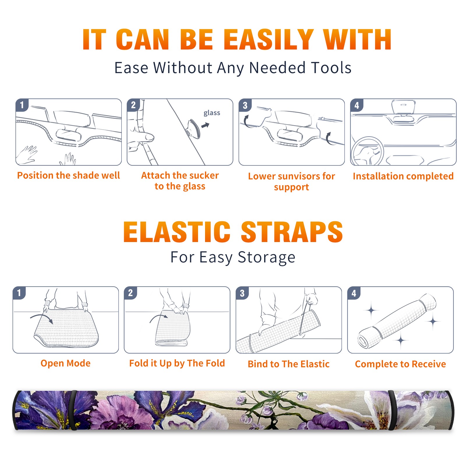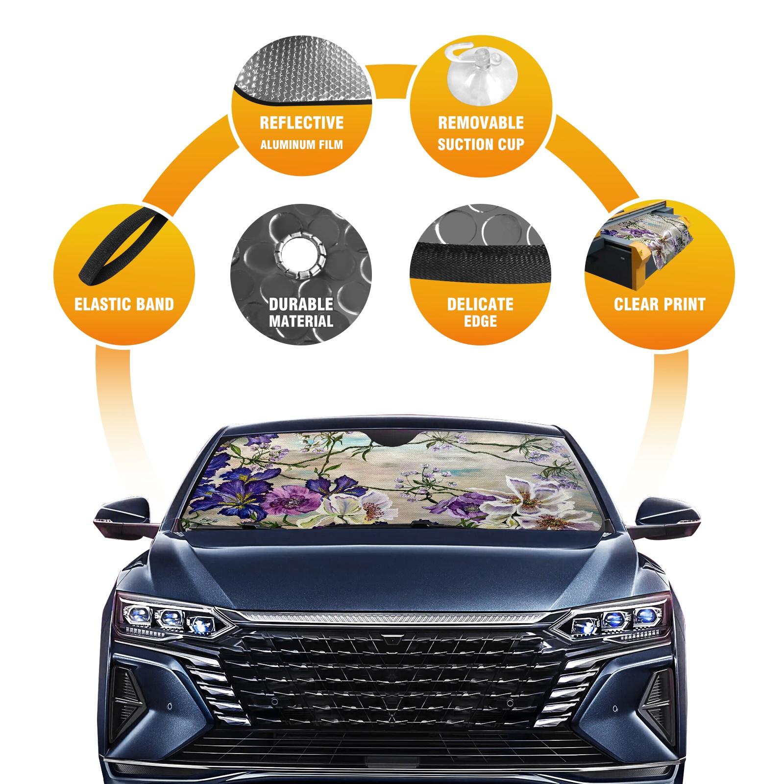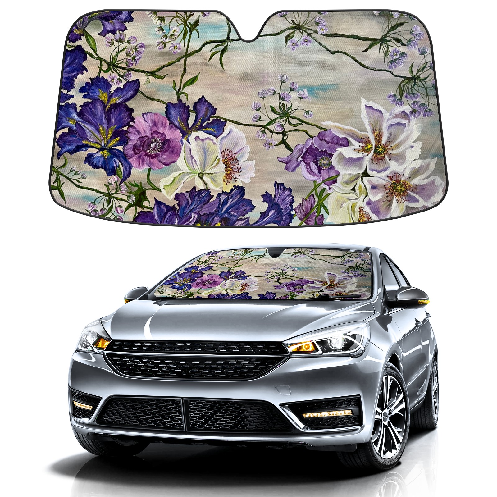 Car Windshield Sun Shade For Front Window Abstract Purple Flower Foldable Vehicle Windshield Car Sun Visor Covers Automotive Window Protector Car Camping Privacy Sun Blocker
