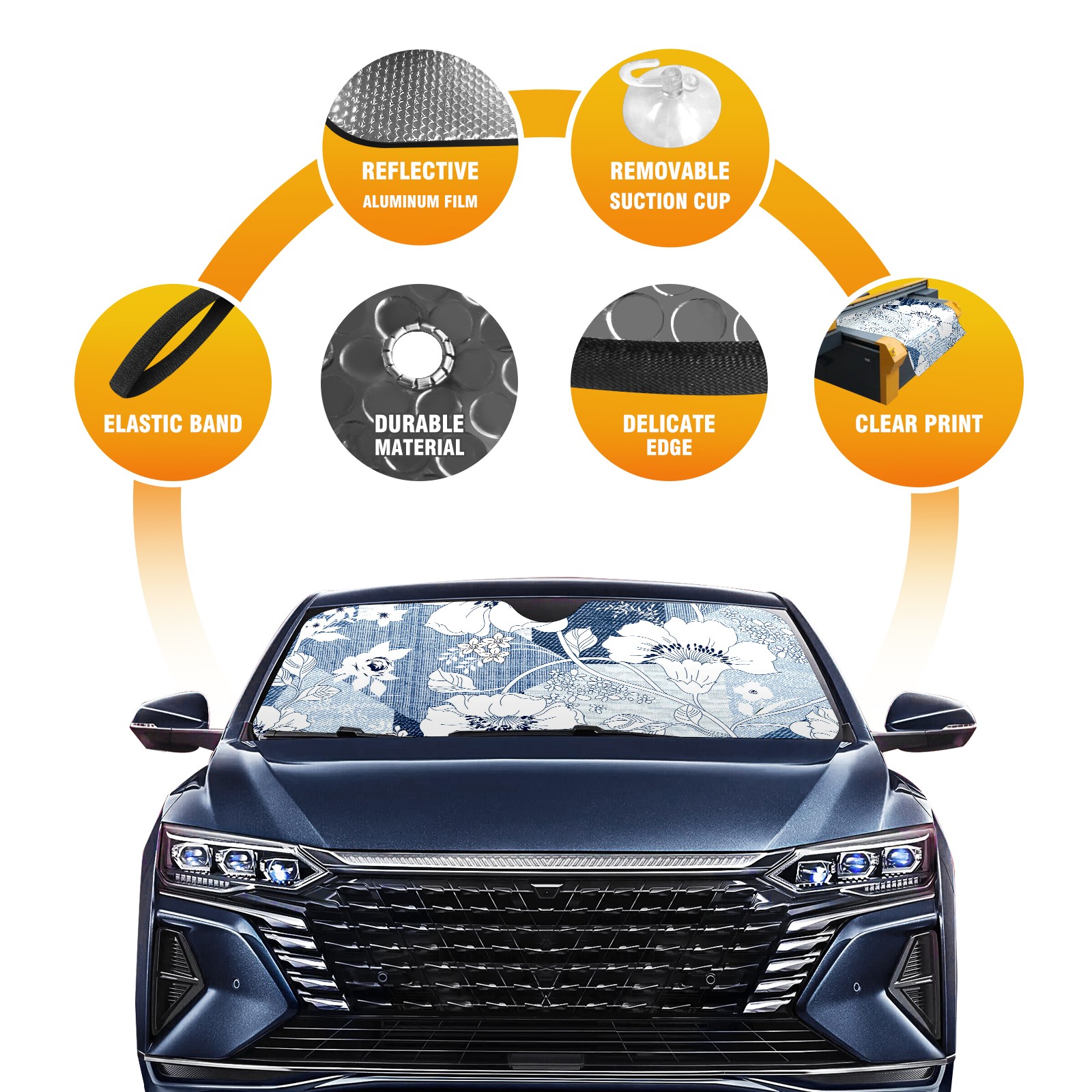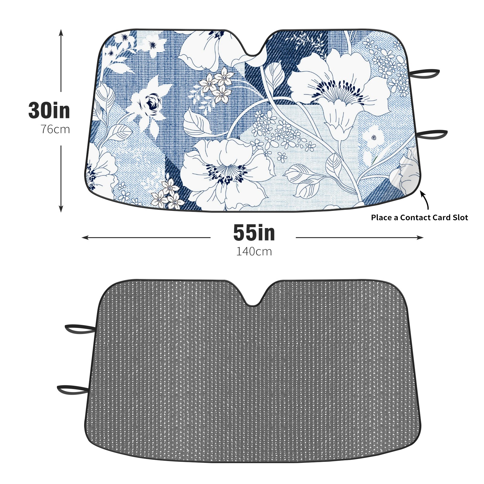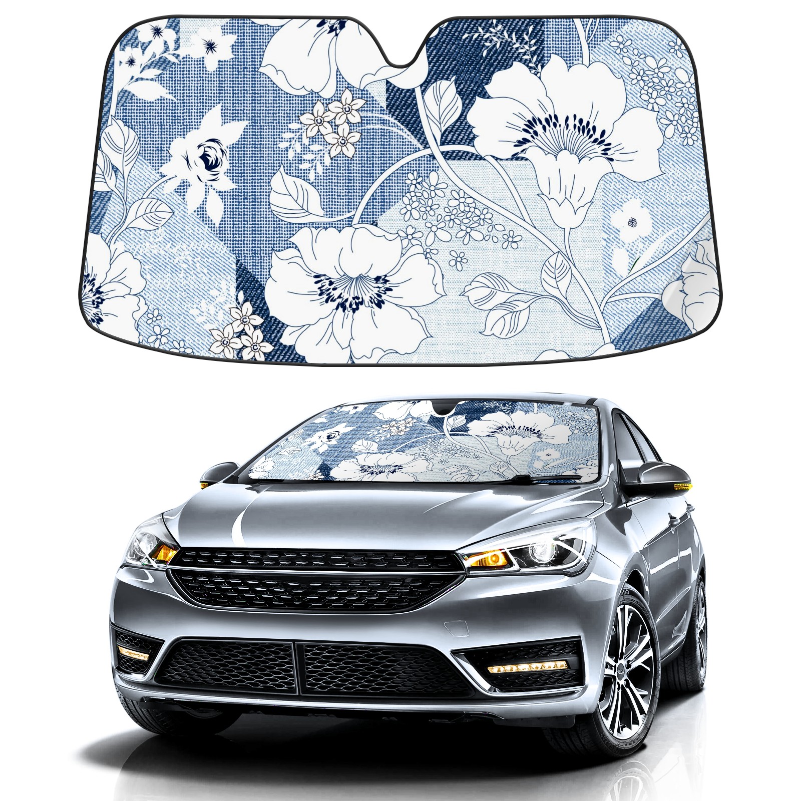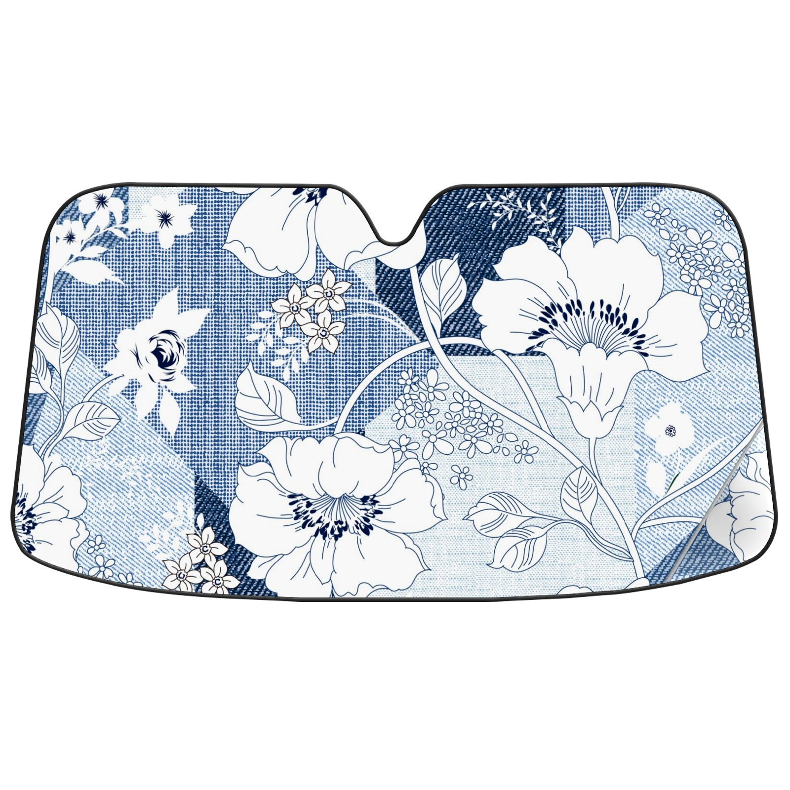 Car Windshield Sun Shade For Front Window Abstract Floral On Blue Cloth Texture Foldable Vehicle Windshield Car Sun Visor Covers Automotive Window Protector Car Camping Privacy Sun Blocker