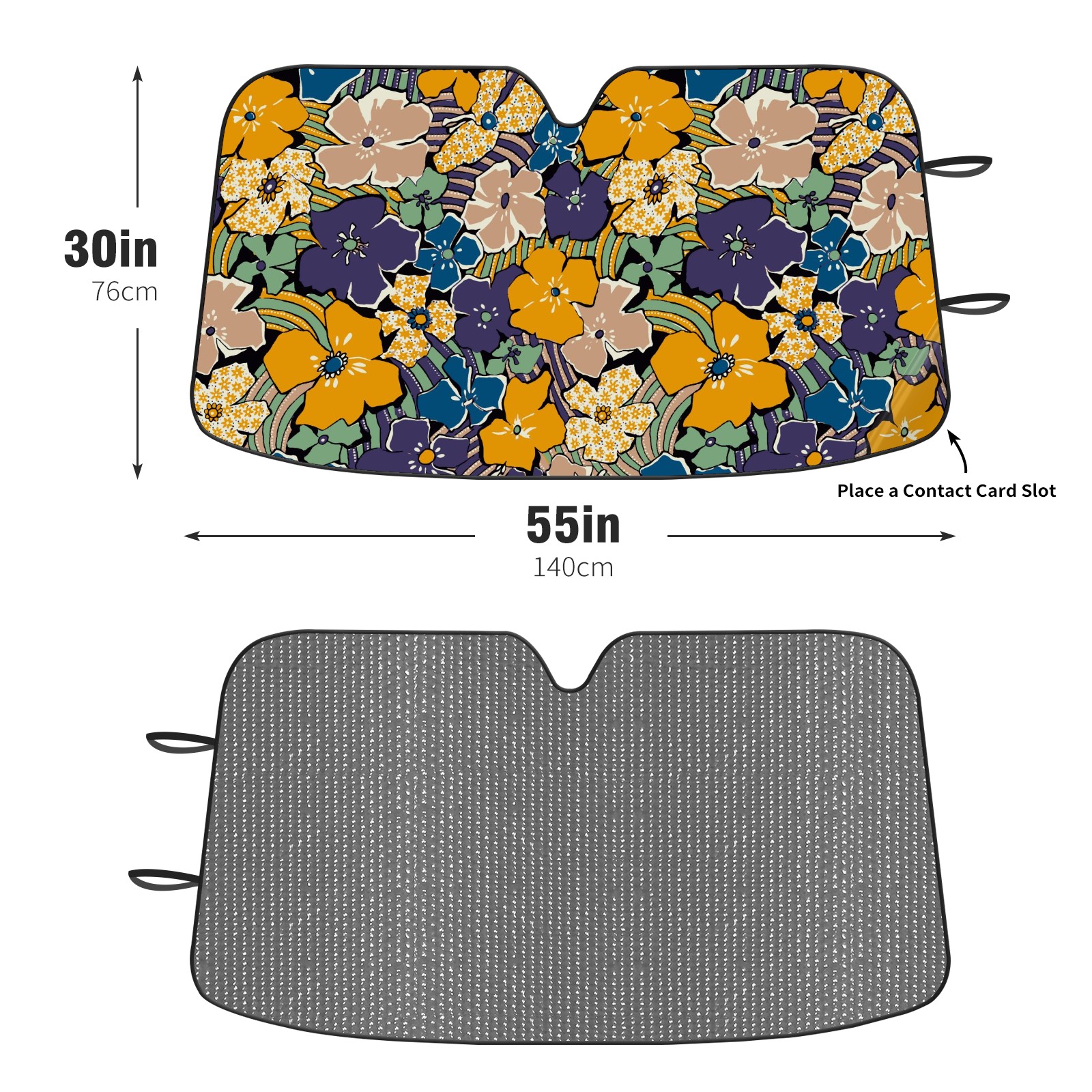 Diameter /Size 63"L x 33.5"W Made from excellent materials which makes it sturdy and protects the car from the sun. Easy to use and pack. Makes the interior of the car cooler.You can easily stash the sunshade in the storage bag or store long term.It open and closes easy. Also the leather storage bag is durable and easy to put the umbrella back into.This windshield sunshade provides complete coverage and keeps your car interior cool under direct sun. It is easy to open and position under the windshield and around the rear-view mirror. Makes Your Car Easy To Identify, Perfect For Finding Your Car In Crowded Parking Lots And Garages.Great Choice: It Is A Great Gift For Dad, Boyfriend, Brother, Brother And Uncle, Friends, Classmates, Family And So On. Notice: Due To Difference Computer Monitors, The Color Maybe Slightly Different From Picture. As Different Measurement Methods, Measurement Data Will Float Within 2%.I Hope You Understand. If You Have Any Question About The Item Please Do Not Hesitate To Contact Us Immediately And We Will Give You A Satisfactory Reply Within 24 Hours.