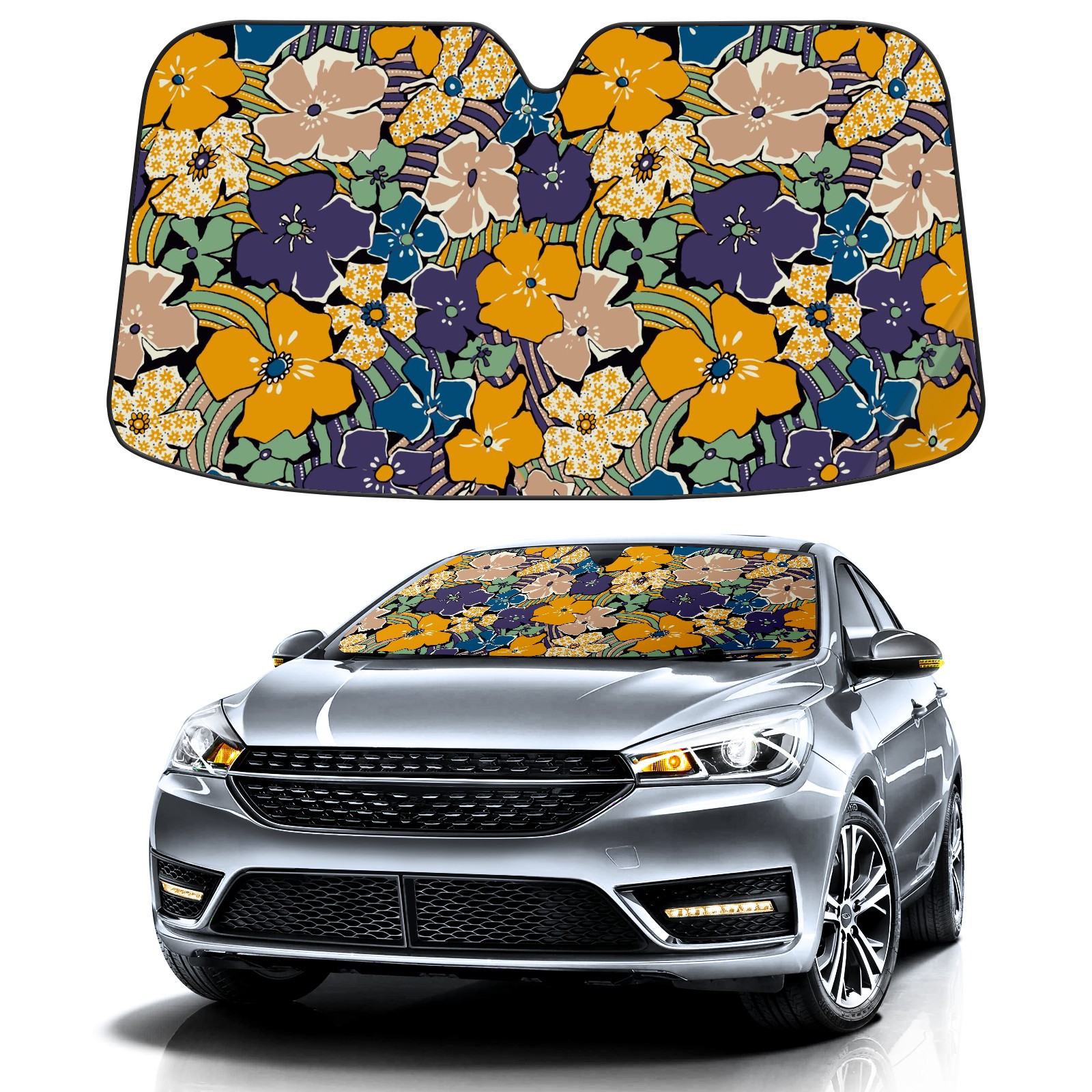 Car Windshield Sun Shade For Front Window Abstract Colorful Flowers Design Foldable Vehicle Windshield Car Sun Visor Covers Automotive Window Protector Car Camping Privacy Sun Blocker