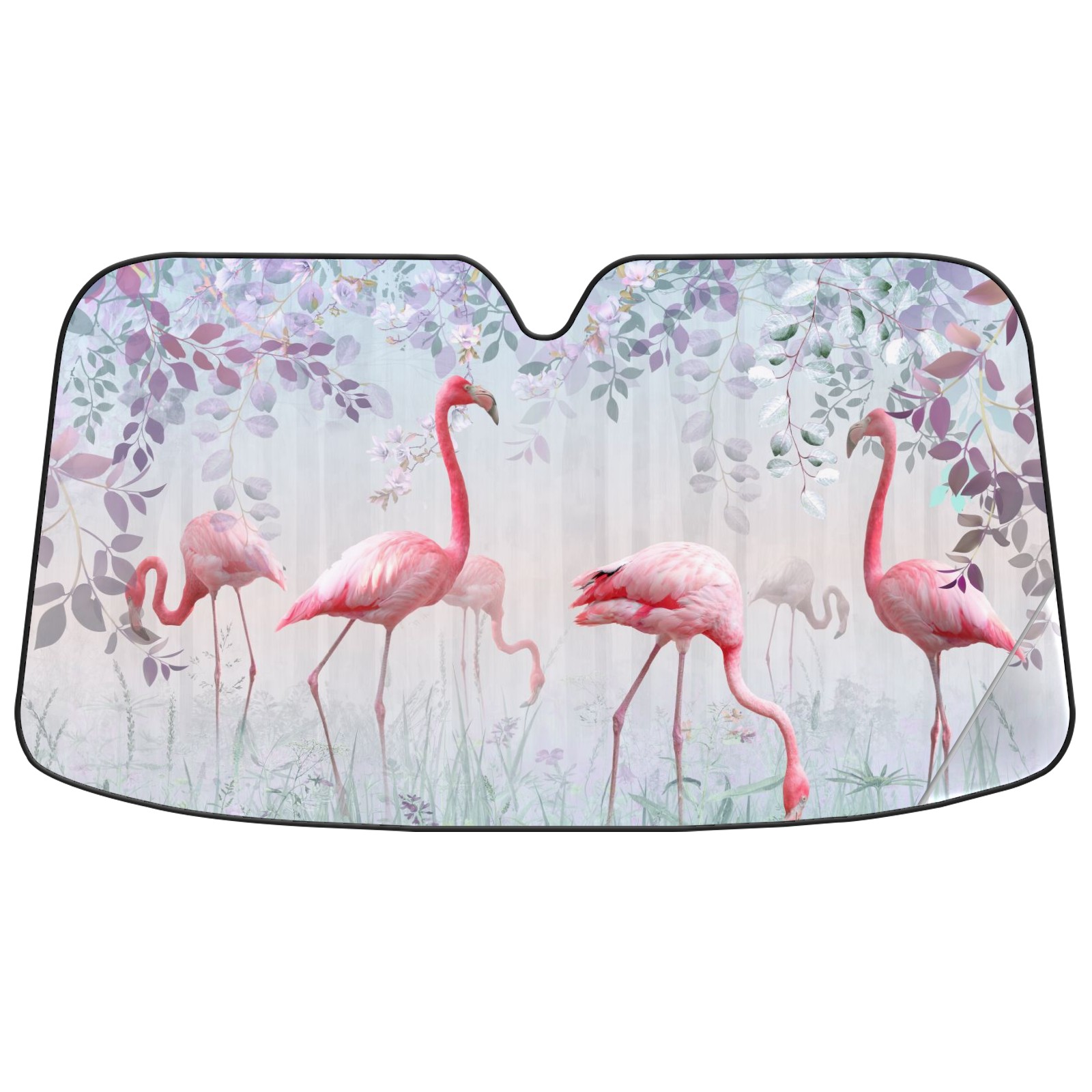 Car Windshield Sun Shade For Front Window Pink Flamingo In Turquoise Fog Foldable Vehicle Windshield Car Sun Visor Covers Automotive Window Protector Car Camping Privacy Sun Blocker