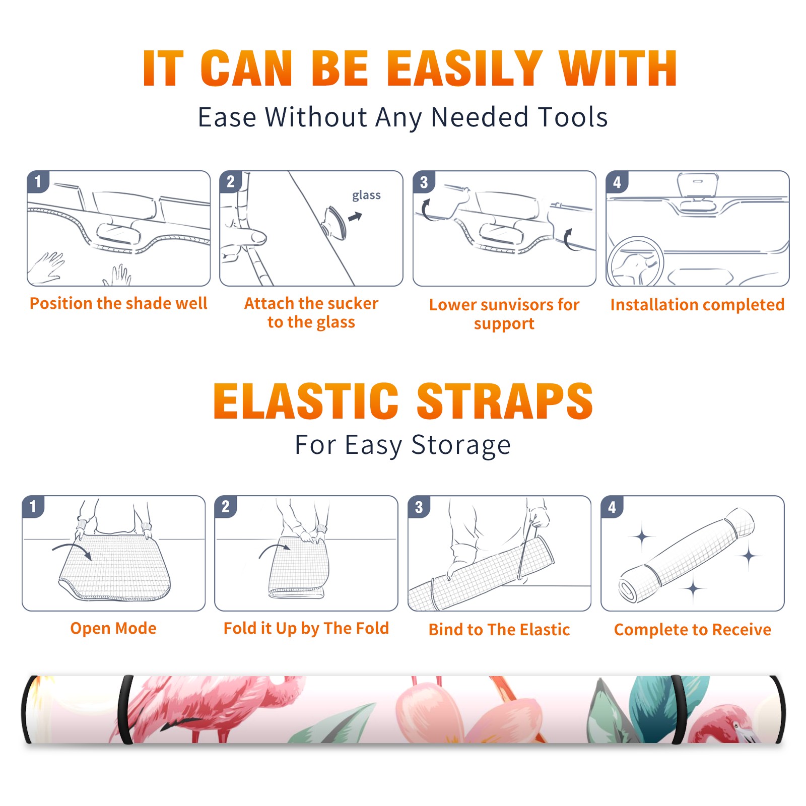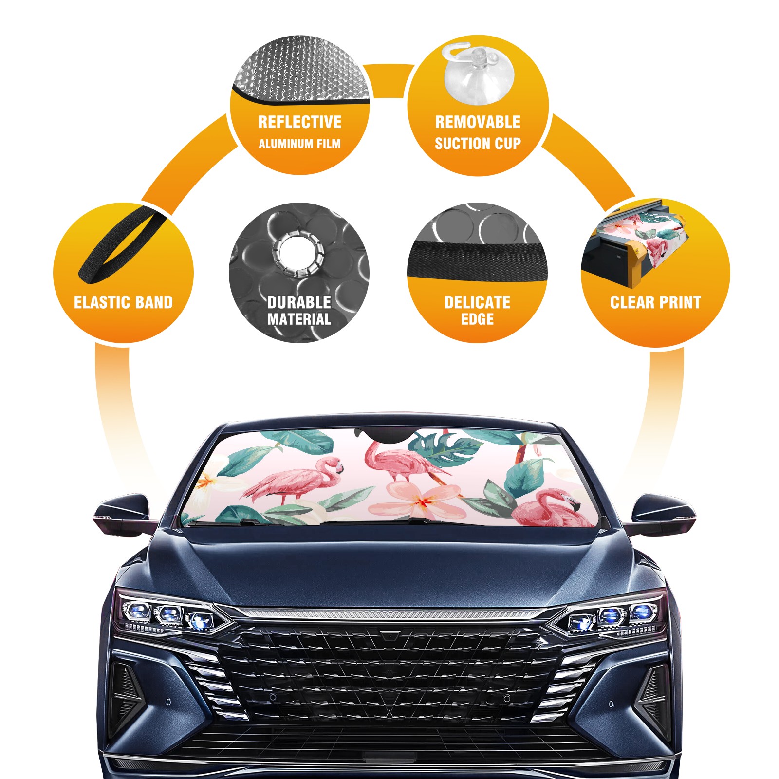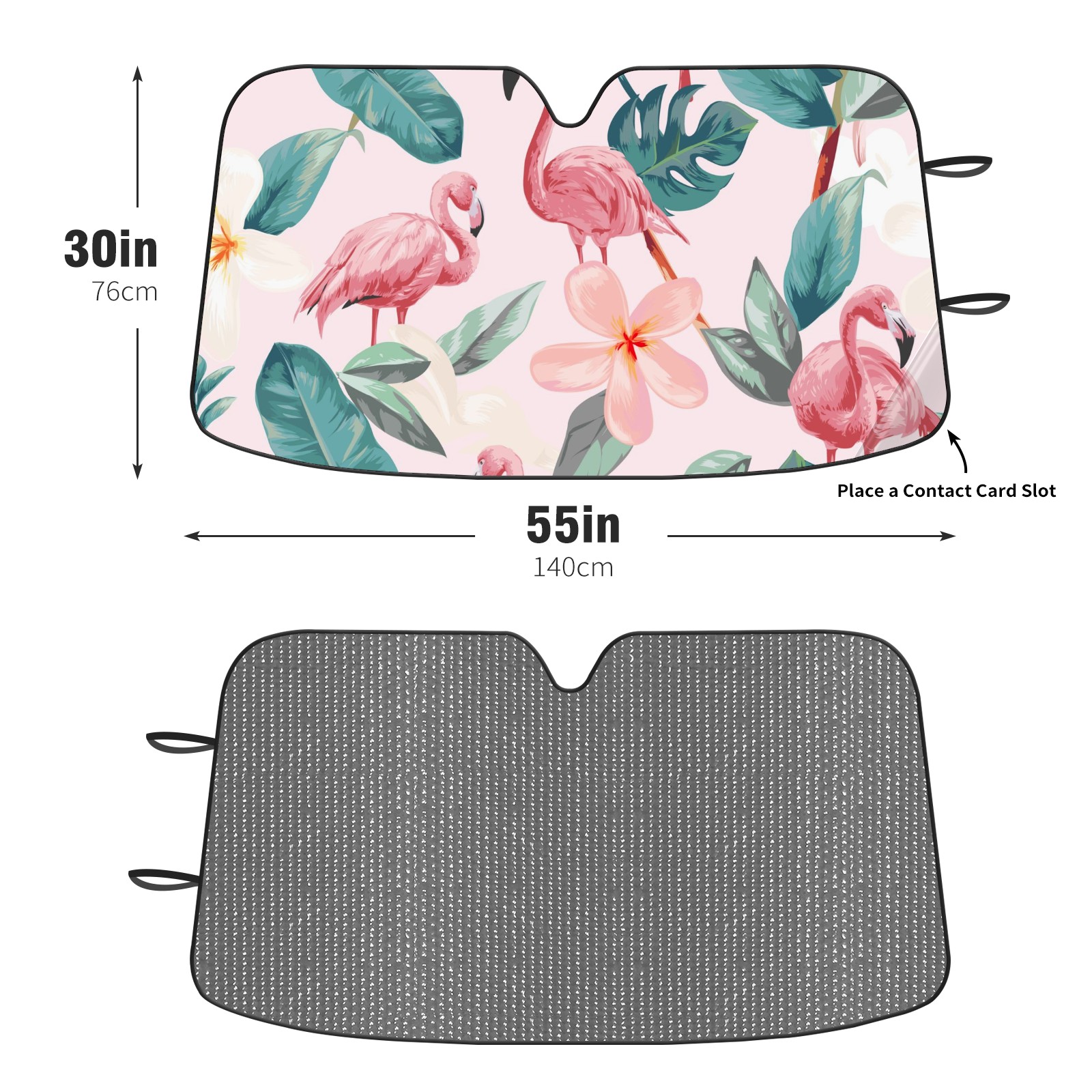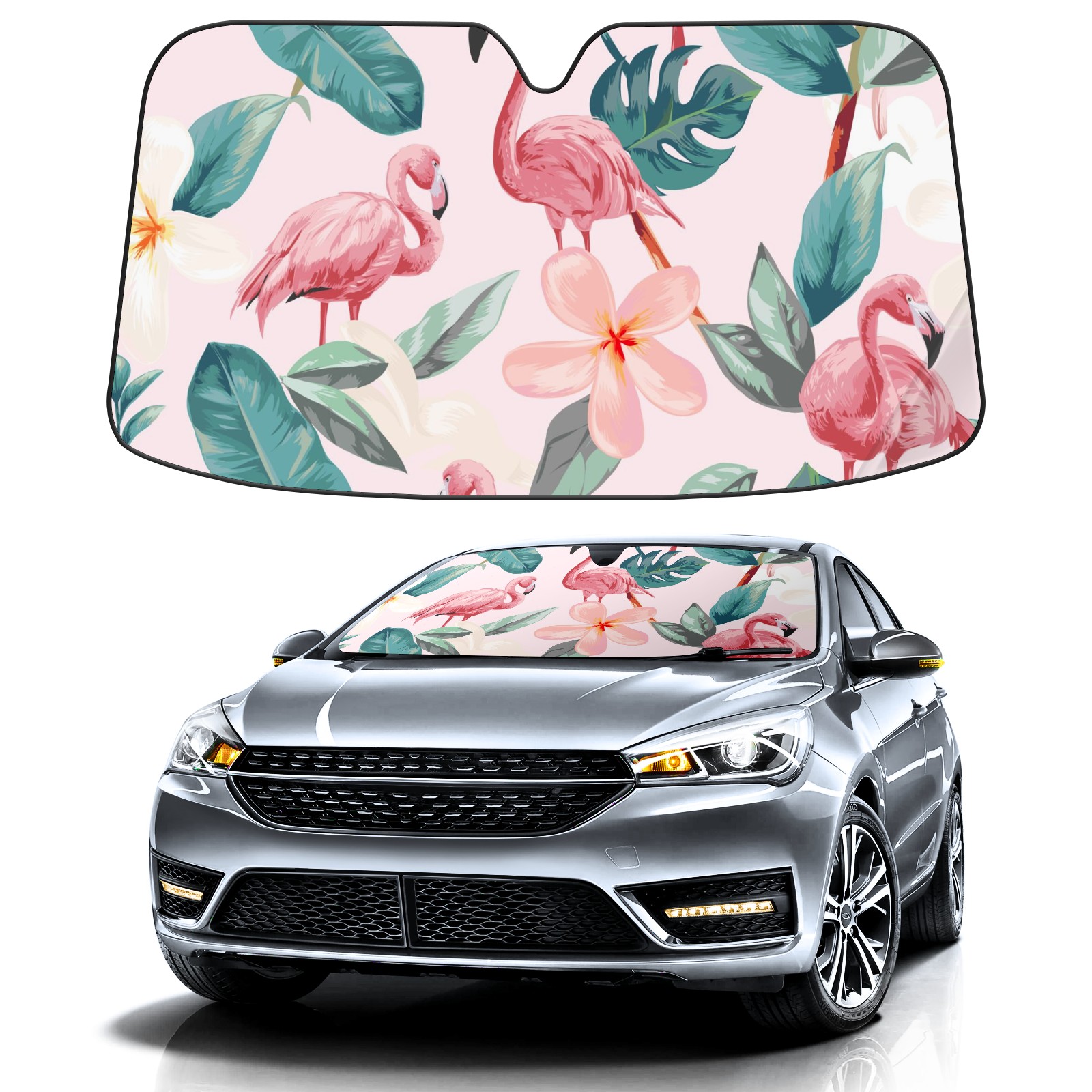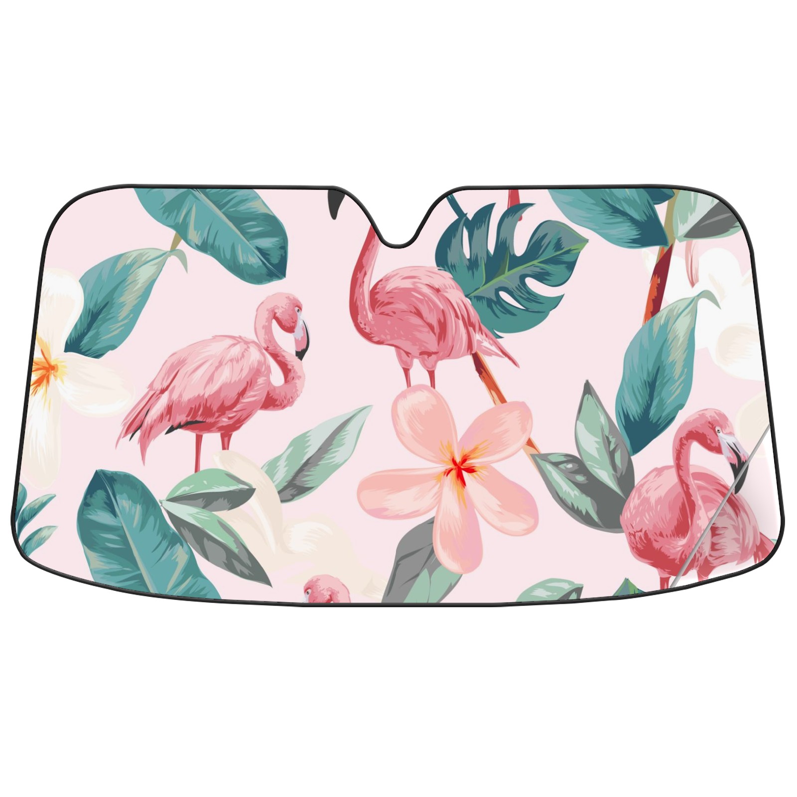 Car Windshield Sun Shade For Front Window Flamingos And Tropical Flowers Foldable Vehicle Windshield Car Sun Visor Covers Automotive Window Protector Car Camping Privacy Sun Blocker
