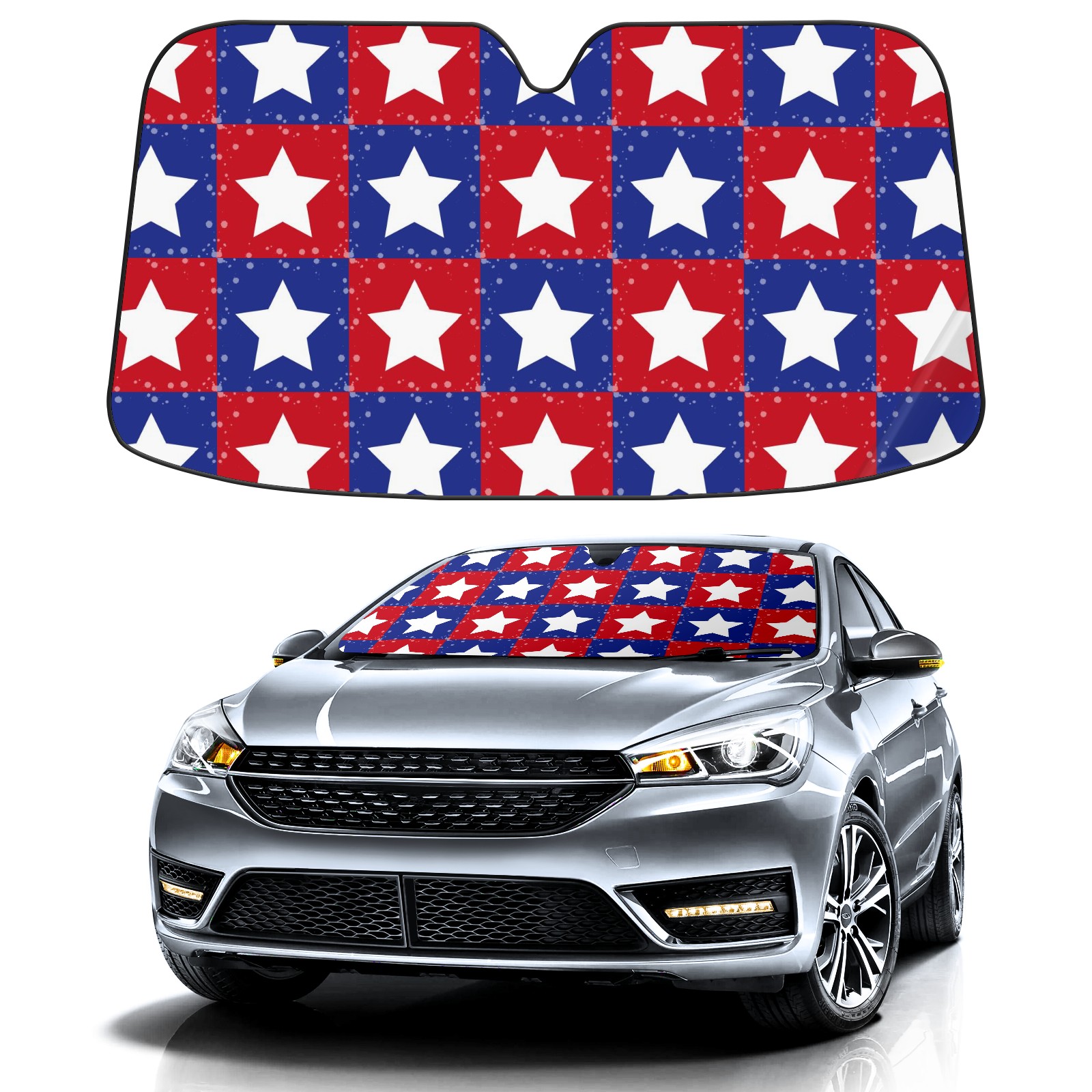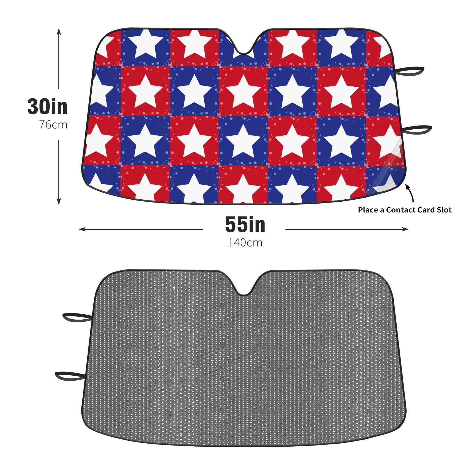Car Windshield Sun Shade For Front Window Patriotic Stars Grid Foldable Vehicle Windshield Car Sun Visor Covers Automotive Window Protector Car Camping Privacy Sun Blocker