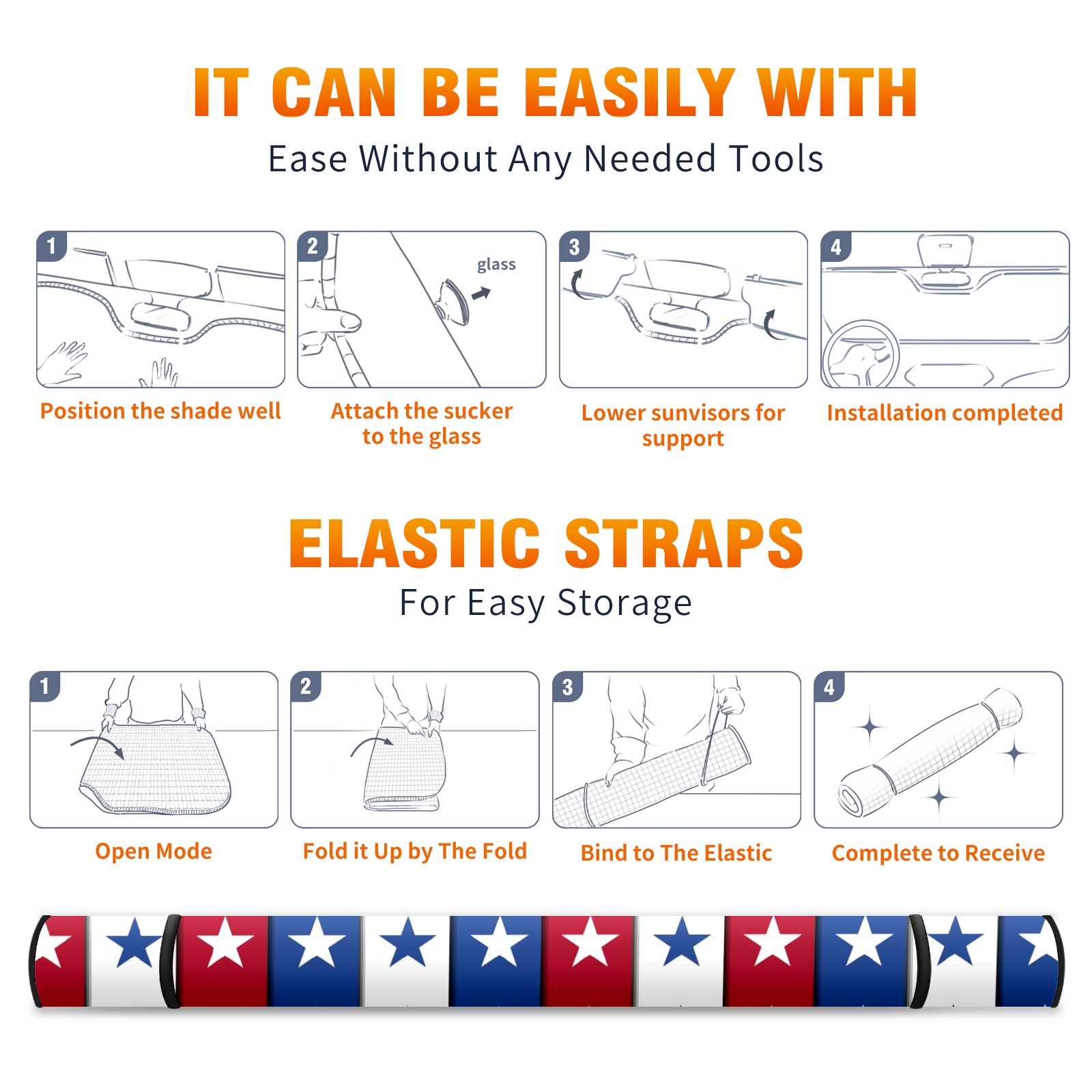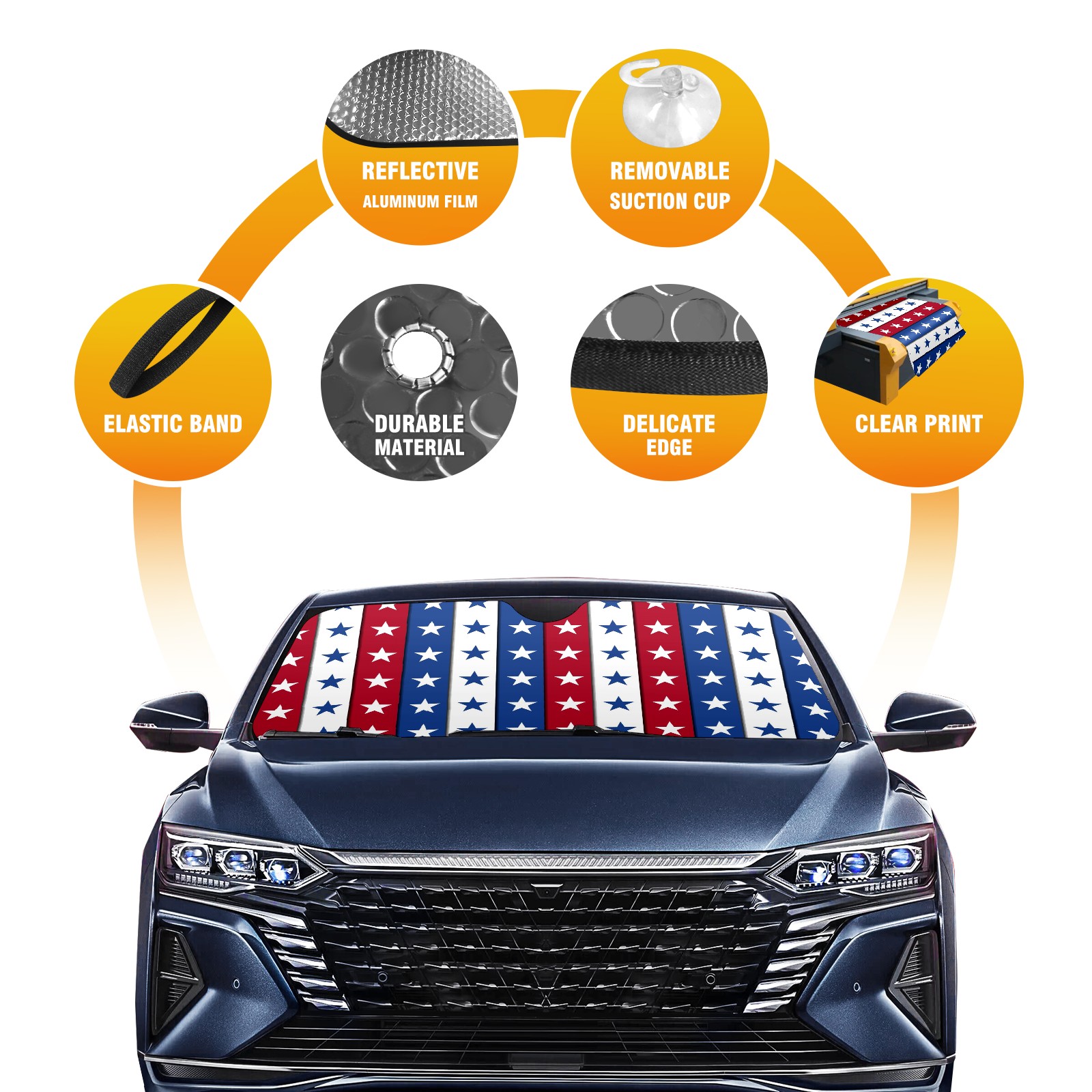Car Windshield Sun Shade For Front Window Independence Day Stars Foldable Vehicle Windshield Car Sun Visor Covers Automotive Window Protector Car Camping Privacy Sun Blocker