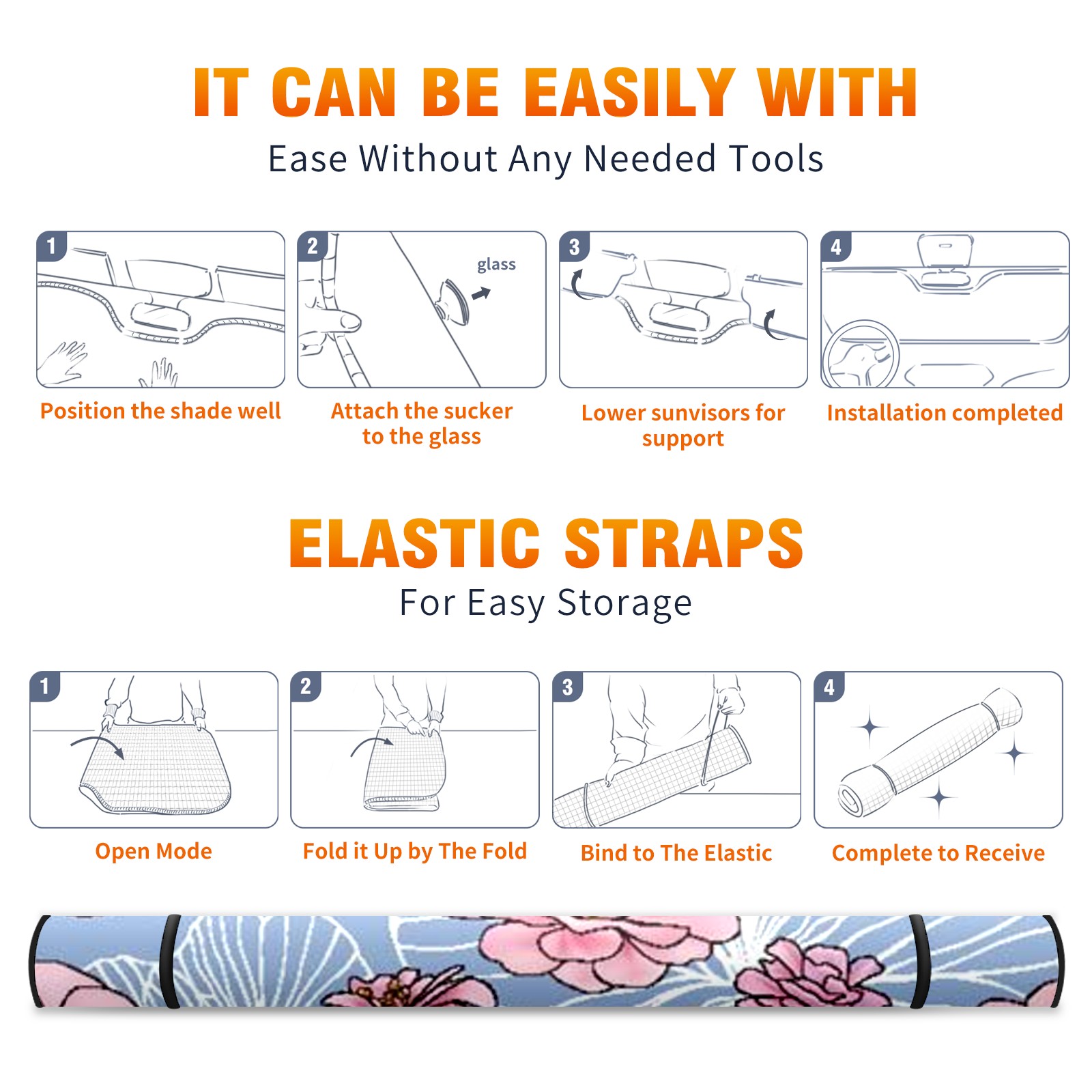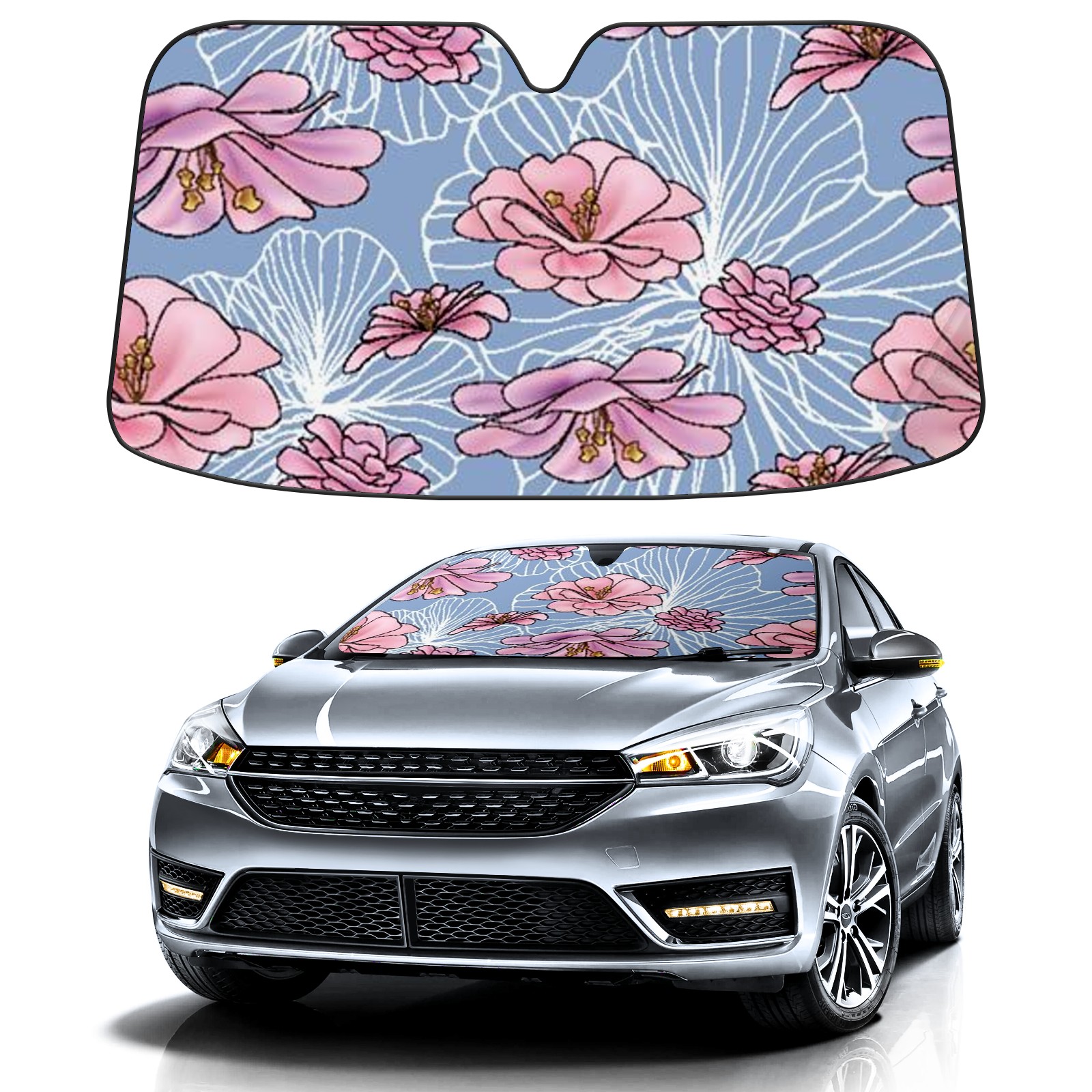Car Windshield Sun Shade For Front Window Flower Print Foldable Vehicle Windshield Car Sun Visor Covers Automotive Window Protector Car Camping Privacy Sun Blocker
