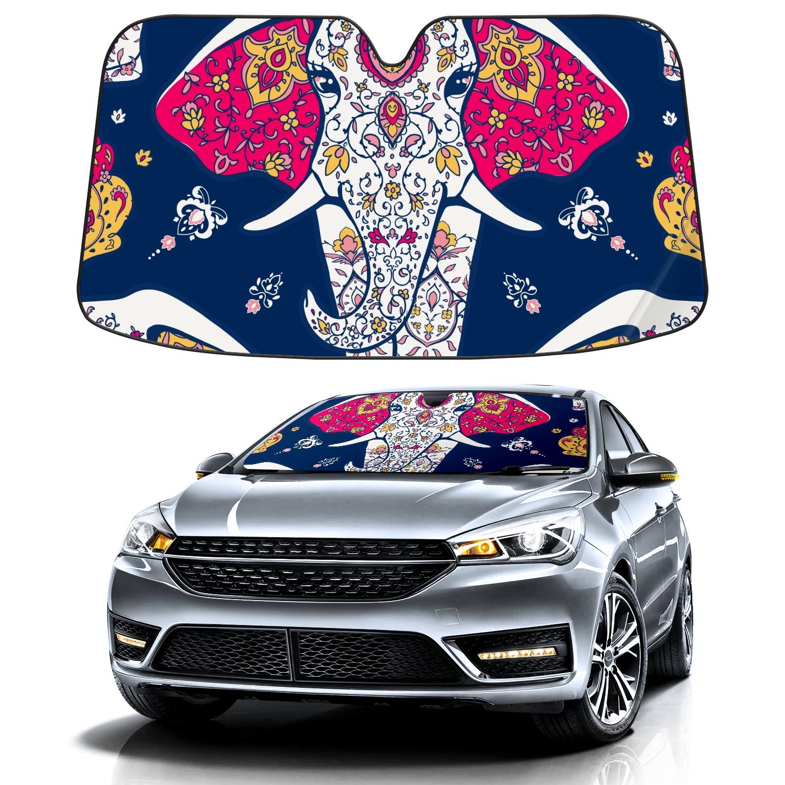 Car Windshield Sun Shade For Front Window Mandala And Elephant Foldable Vehicle Windshield Car Sun Visor Covers Automotive Window Protector Car Camping Privacy Sun Blocker