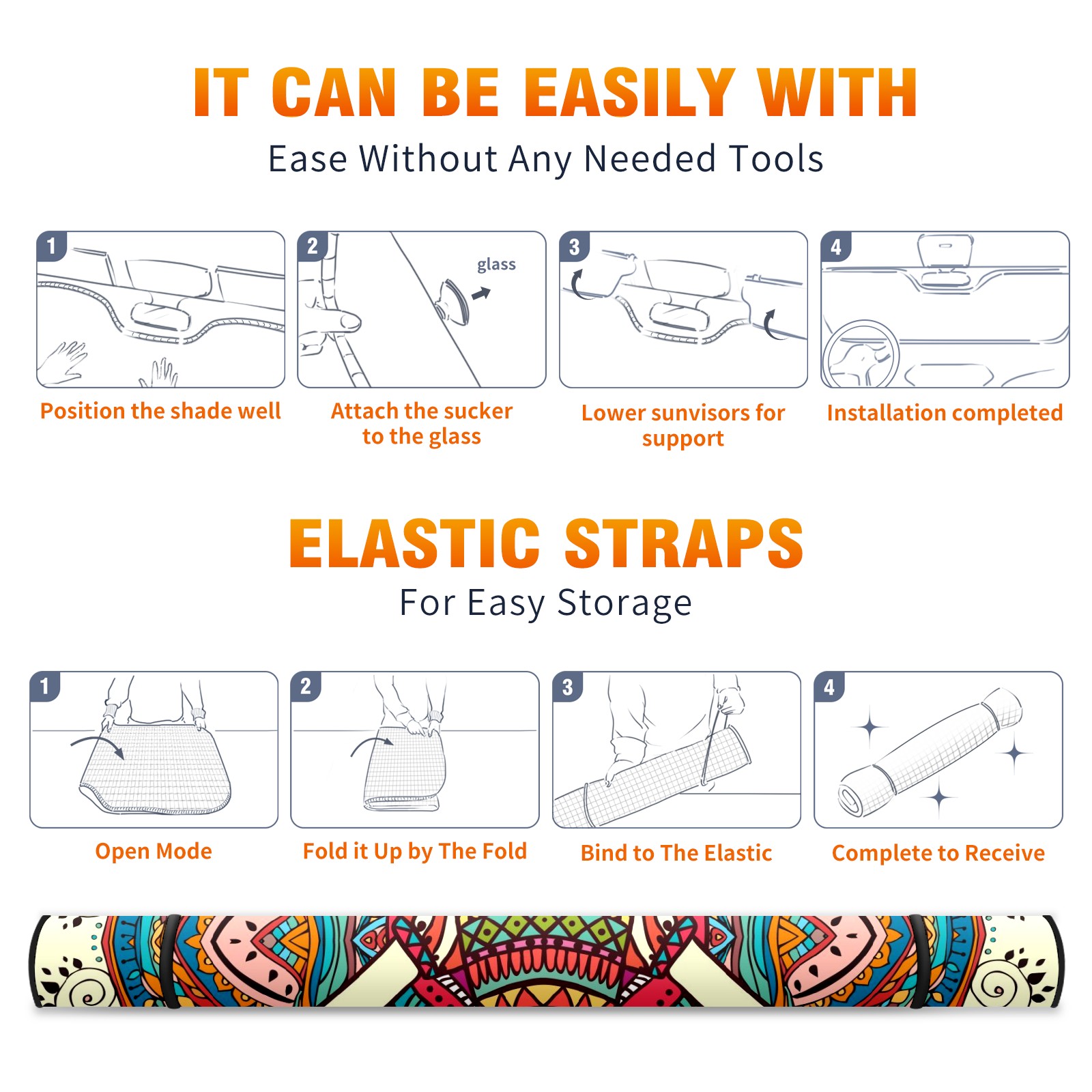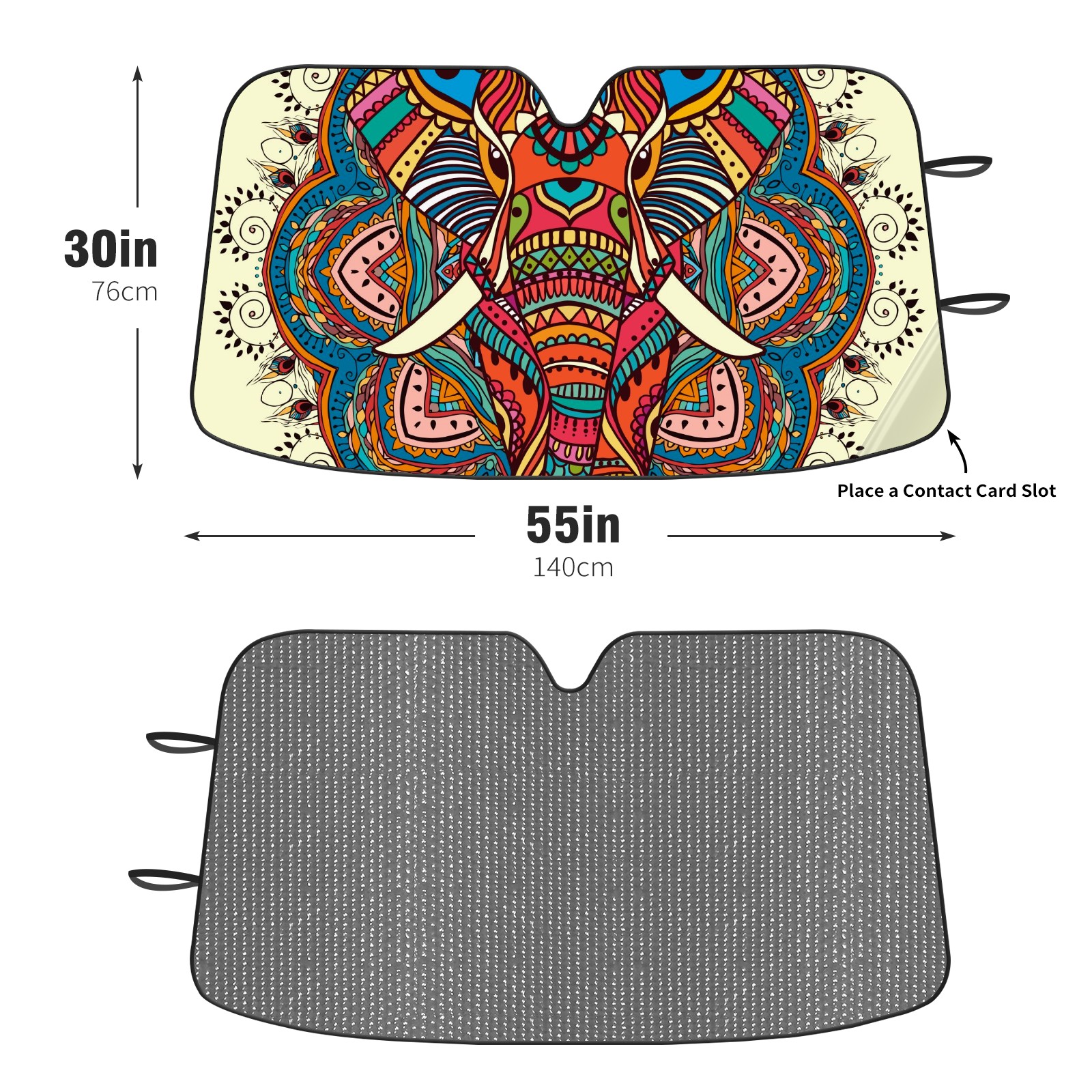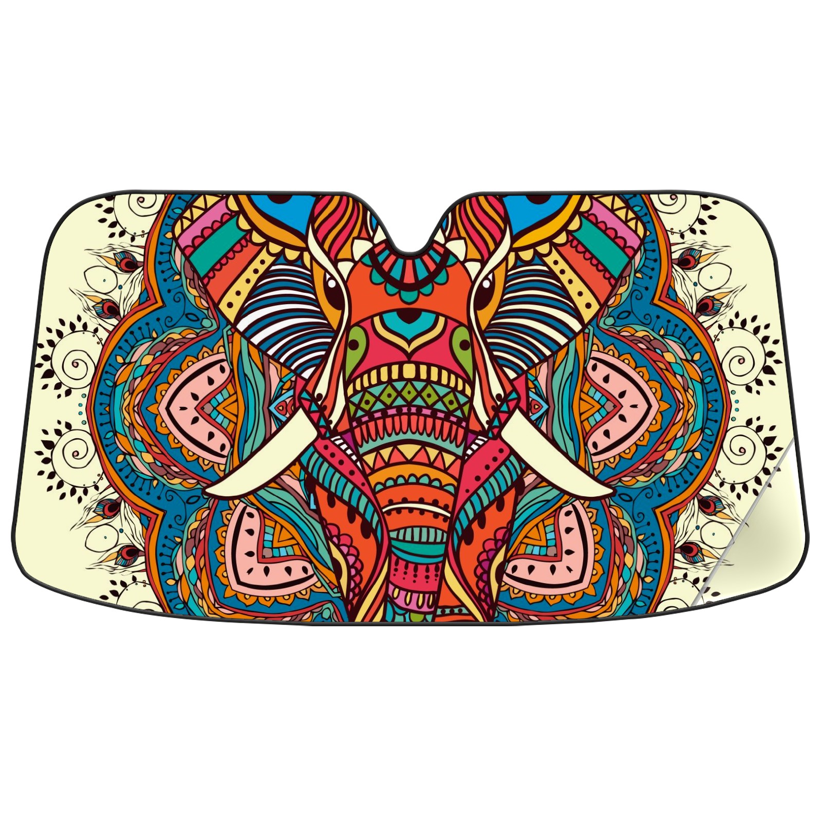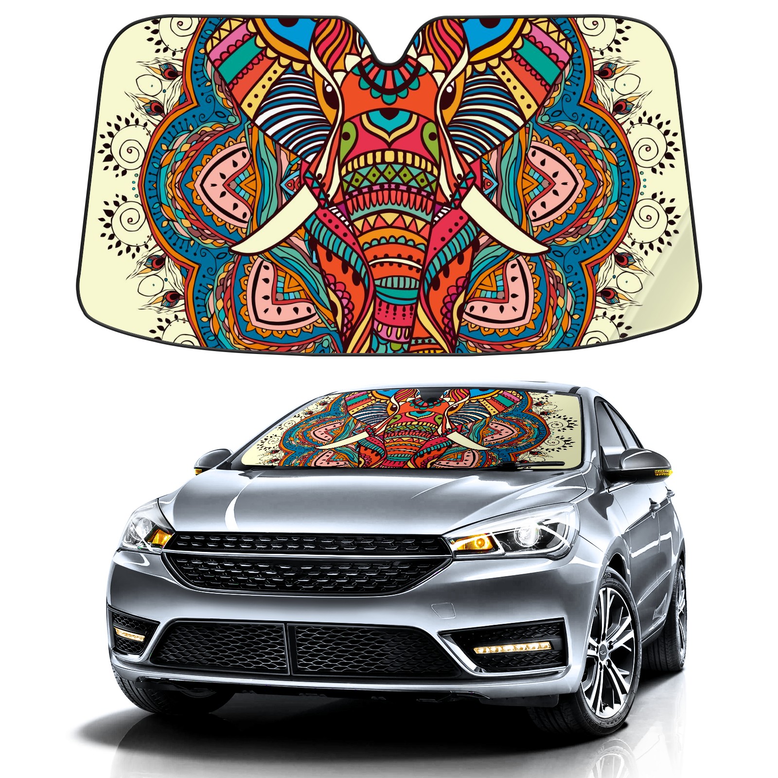 Car Windshield Sun Shade For Front Window Elephant Ethnic Pattern Decoration Foldable Vehicle Windshield Car Sun Visor Covers Automotive Window Protector Car Camping Privacy Sun Blocker