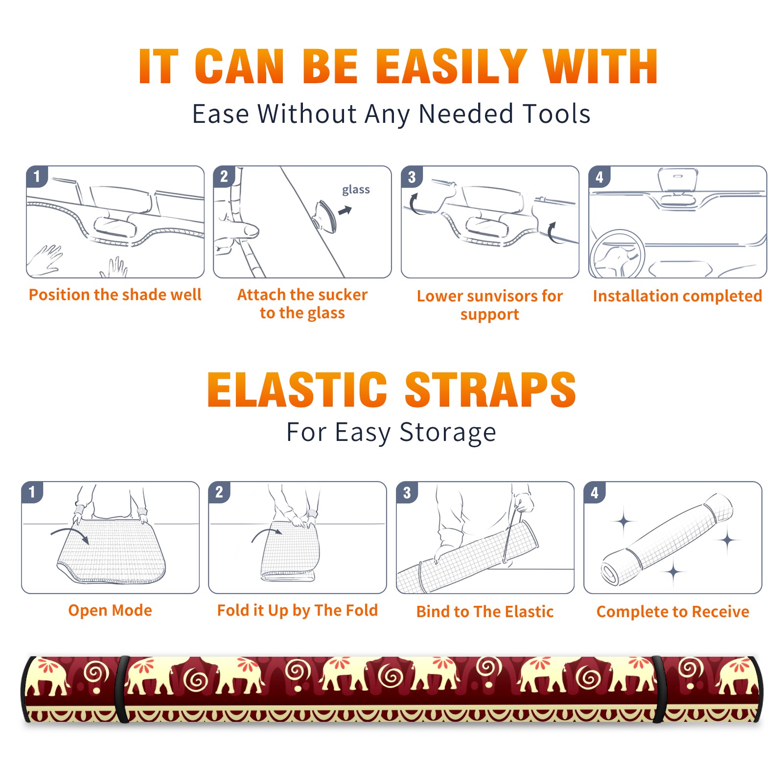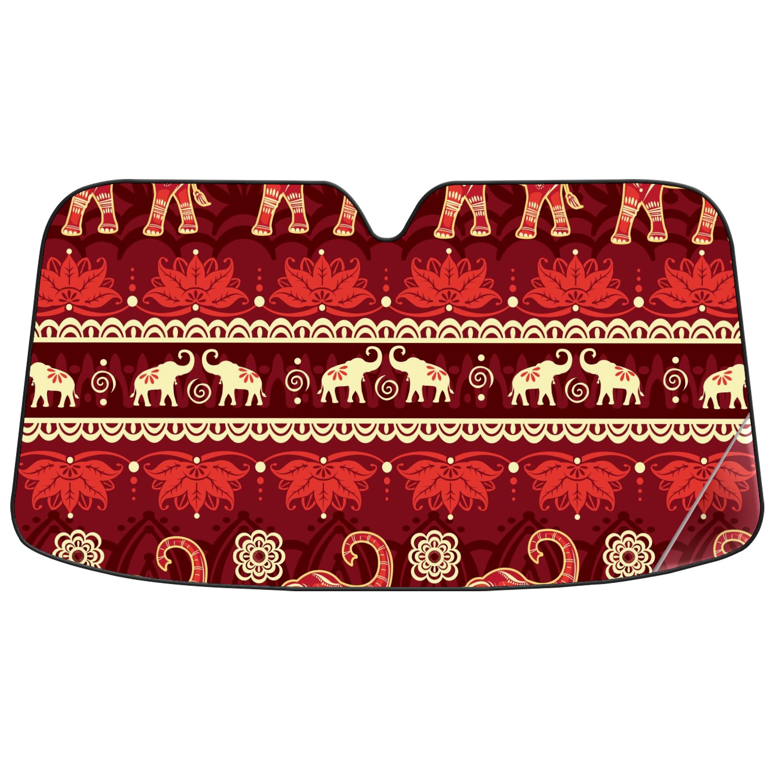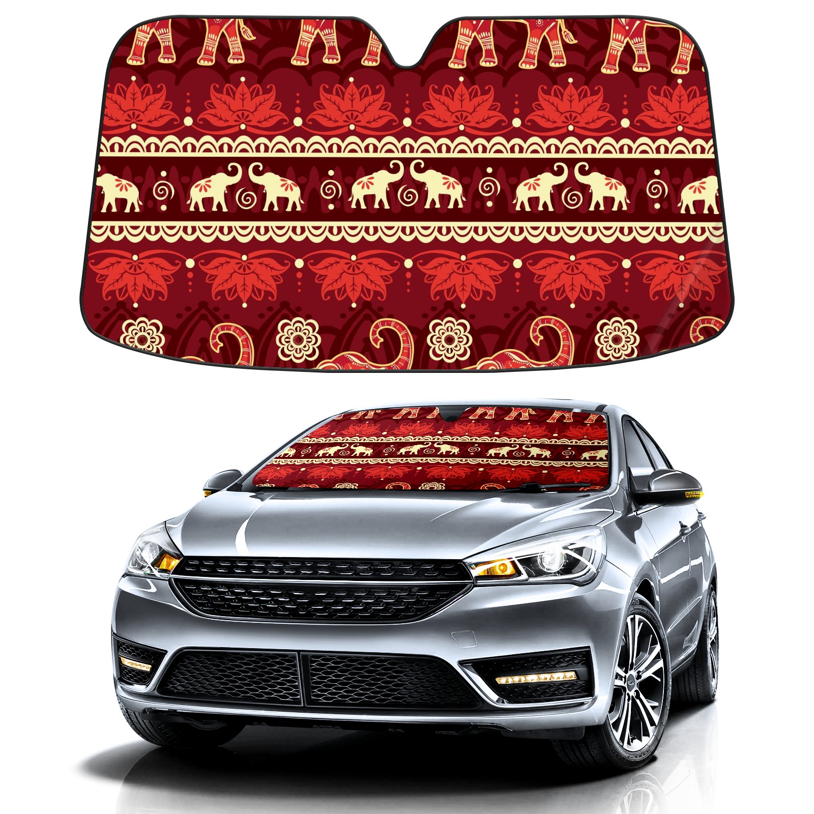 Car Windshield Sun Shade For Front Window Elephant Ethnic Flower Foldable Vehicle Windshield Car Sun Visor Covers Automotive Window Protector Car Camping Privacy Sun Blocker